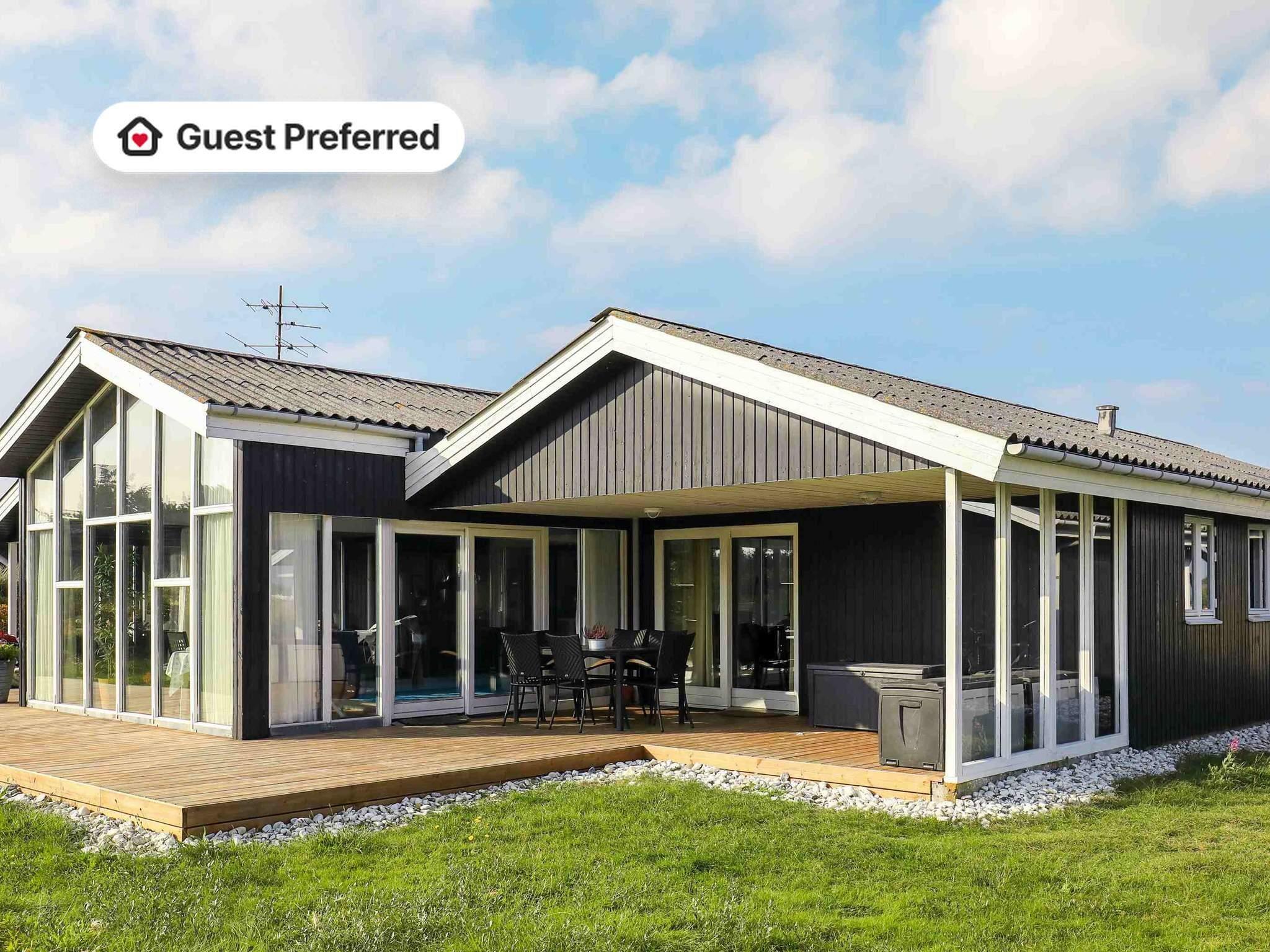 Rummeligt hus, der er velegnet til 2 familier på grund af dets funktionelle indretning og fordeling af værelser. Fra stuen er der direkte adgang til den store træterrasse. Stuen er lys med møbler fra 2004 og kombineret med et funktionelt køkken. 2 badeværelser, det ene med indstillelig håndvask. Fra det ene badeværelse er der adgang til saunaen. Har I ikke lyst til en svømmetur, kan I træne musklerne i husets motionsrum eller hygge jer med en god bog foran brændeovnens knitrende ild. Der er gratis, trådløs internetforbindelse, egen pc skal medbringes. I carporten er der mulighed for at få din el-bil opladet via CEE stik (3 faser) som kan levere 16A, og så har det et indbygget 230V stik. (mormor stikket) husk selv at medbringe kabel.