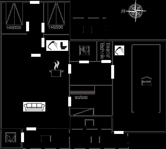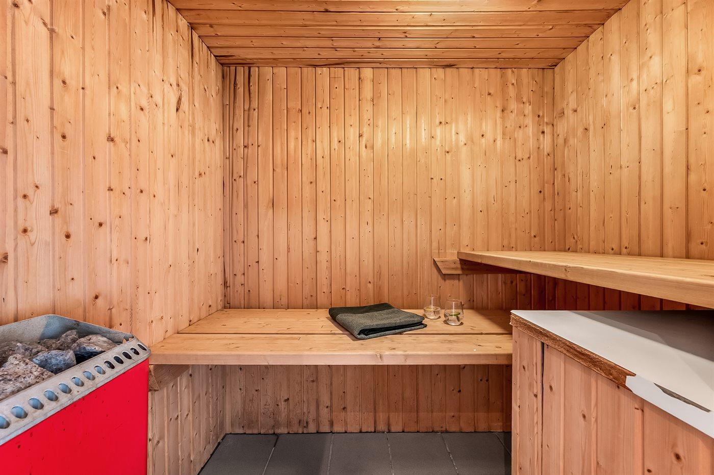 Der er 1 badeværelse med bruser og 1 toilet.. Der er gulvvarme på 1 badeværelse. I saunaen er der mulighed for afslapning.