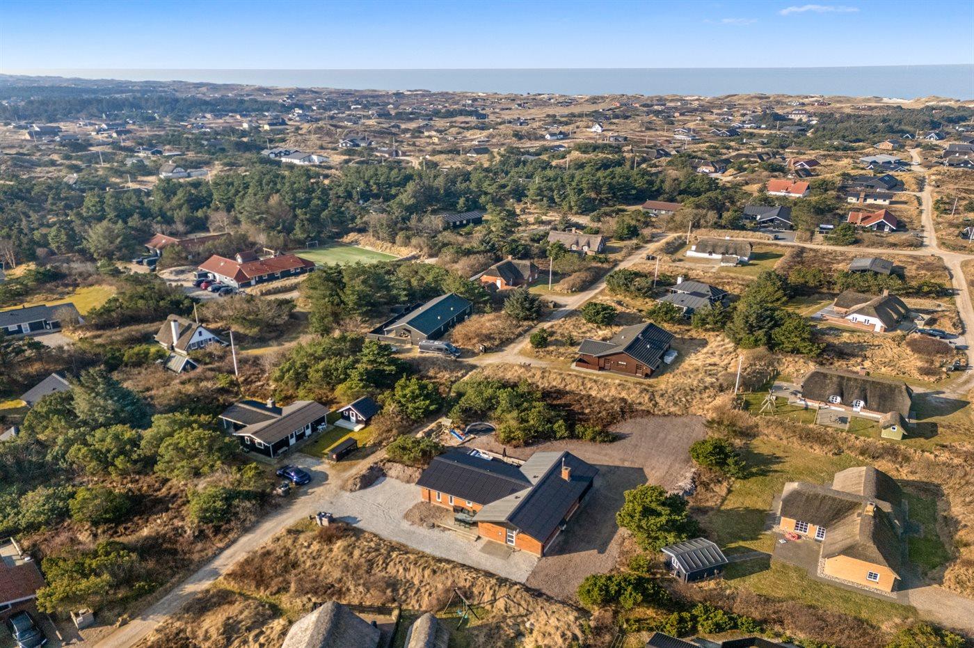 Ferieboligen er beliggende på en 1290 m² stor naturgrund. Der er 900 m til havet. Der er 1500 m til fjorden. Nærmeste forretning er beliggende i en afstand af 1100 m. Til ferieboligen hører 20 m² åbent og 20 m² overdækket terrasseareal - heraf i alt 25 m² lukket terrasse. Gynge. Trampolin. Parkering ved ferieboligen.