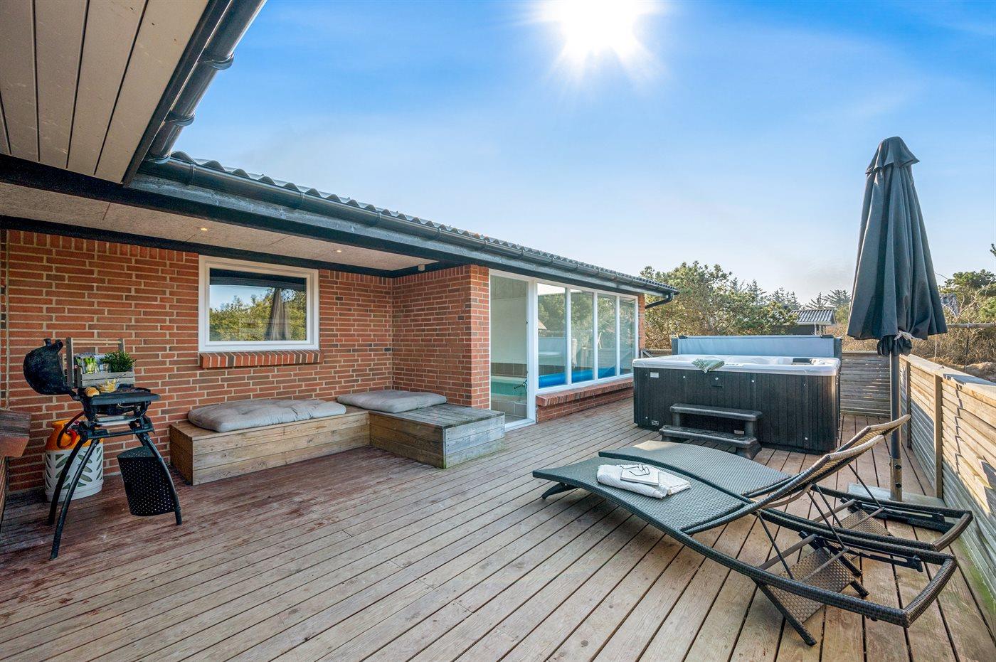 Skønt sommerhus med indendørs pool, sauna og udendørs spa nær Vesterhavet i Søndervig.