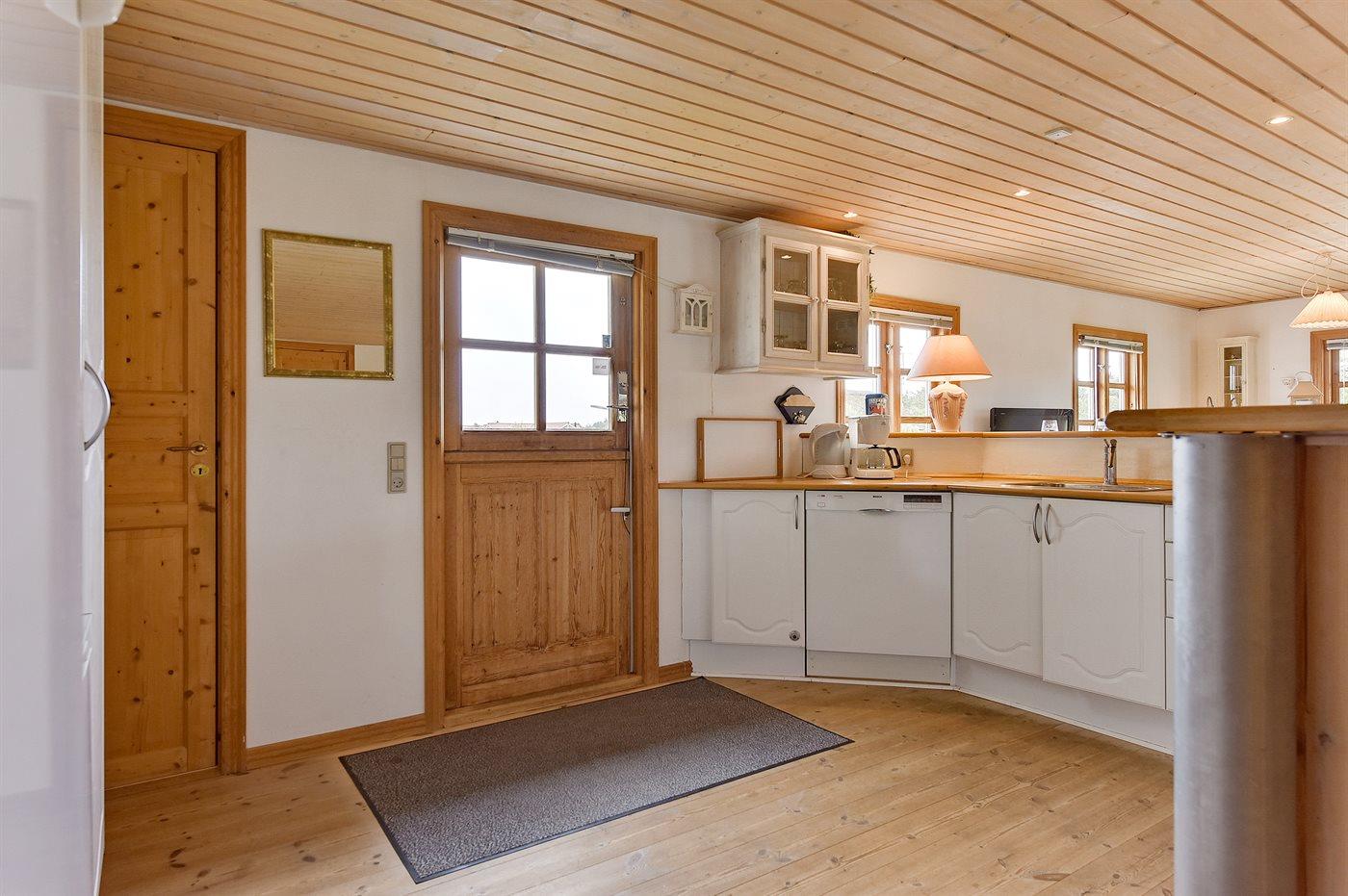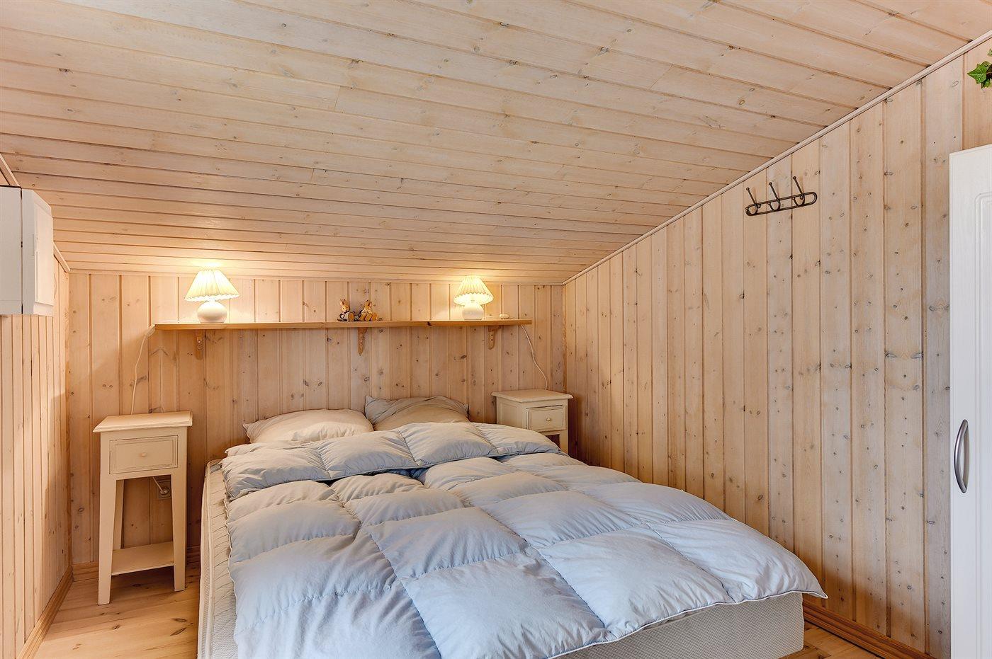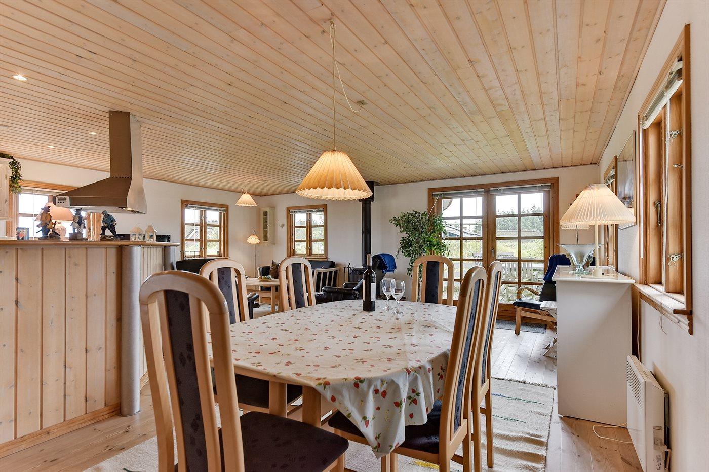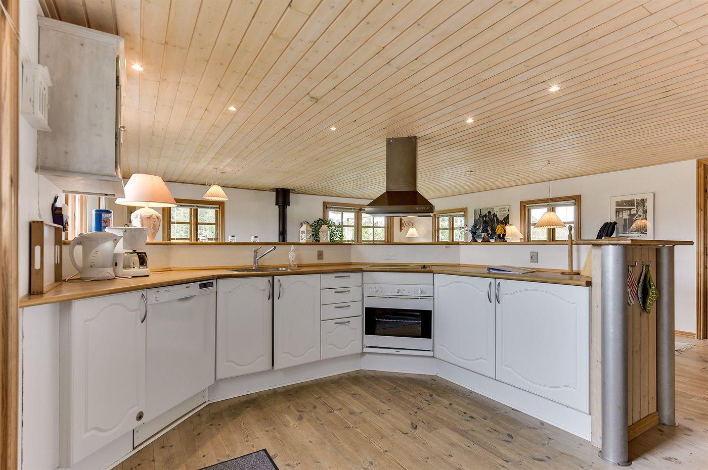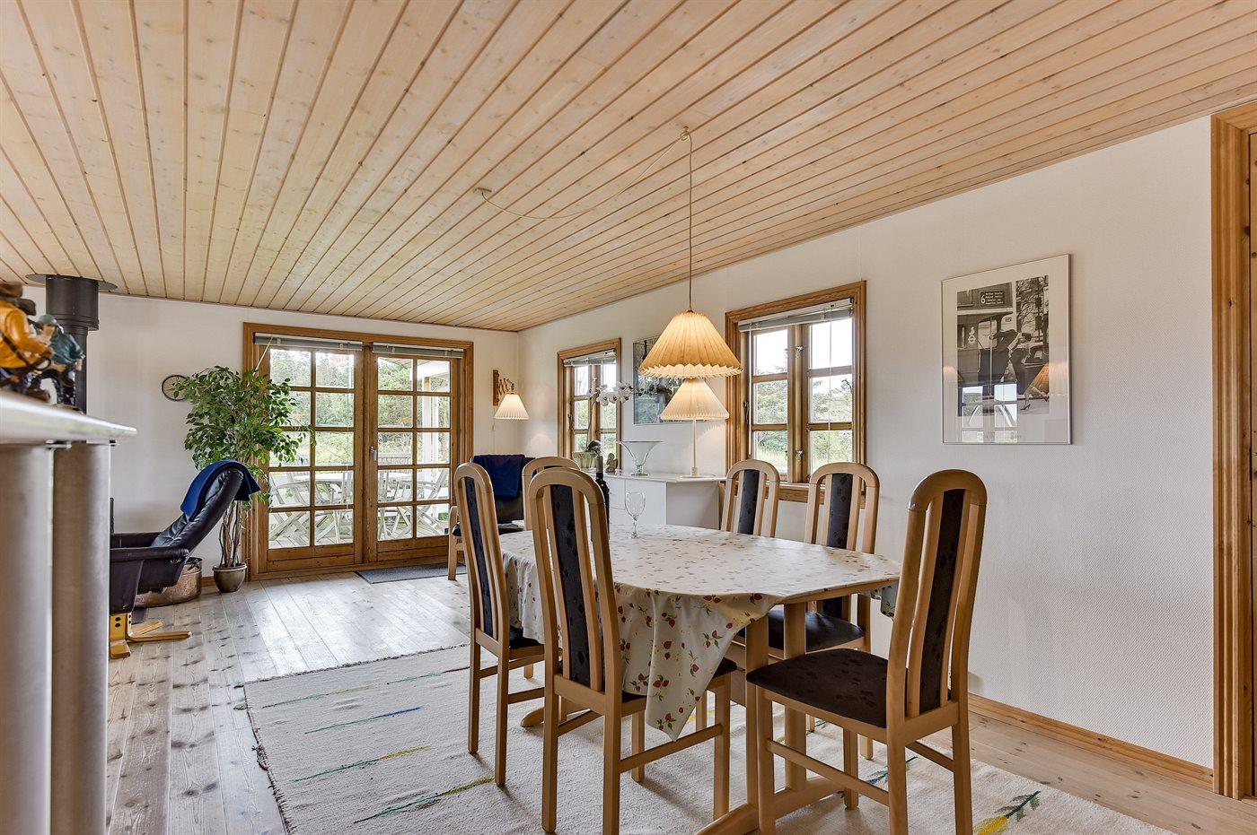 Dejligt sommerhus i træ, bygget 2000, beliggende på en dejlig naturgrund, kun 600 m fra stranden. Såvel åben som overdækket terrasse med havemøbler. Ludbehandlede gulve og lofter samt malede vægge. Dejligt badeværelse med opvarmet klinkegulv og bruseniche. Fra badeværelset er der direkte adgang til husets sauna. Det store, moderne køkken er veludstyret med bl.a. keramiske kogeplader, mikrobølgeovn, varmluftovn, fryser og opvaskemaskine. Den hyggelige opholdsstue indeholder brændeovn, TV med parabol (digital) og radio. Barneseng, høj barnestol, sandkasse og gynge til børnene. Vaskemaskine og tørretumbler til rådighed. Endvidere gratis trådløs internetforbindelse. Et dejligt sommerhus i et område med gode aktivitetsmuligheder!