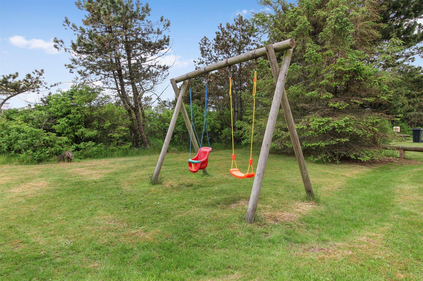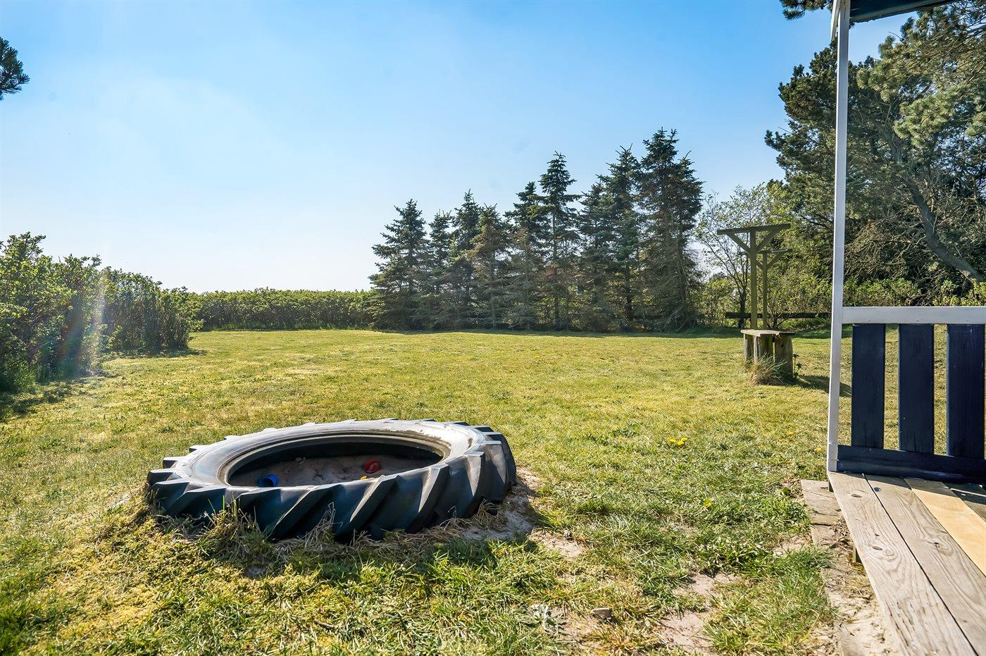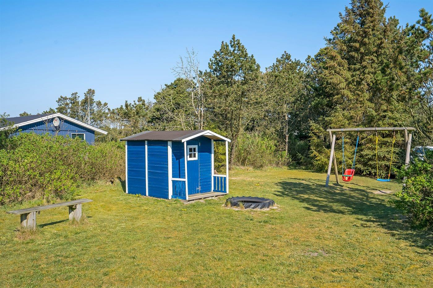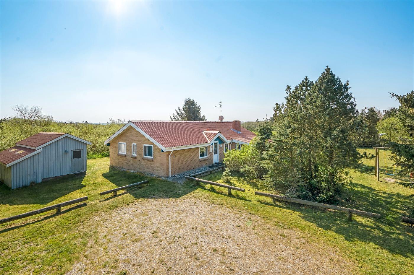 Ferieboligen er beliggende på en 2500 m² stor naturgrund. Der er 1200 m til havet. Nærmeste forretning er beliggende i en afstand af 2400 m. Til ferieboligen hører 50 m² terrasseareal. Desuden er der 10 m² overdækket terrasse. Der er redskabsrum. Gynge. Sandkasse. Der er installeret stik til opladning af elbil. Med 11 kW ladeeffekt. Parkering ved ferieboligen.