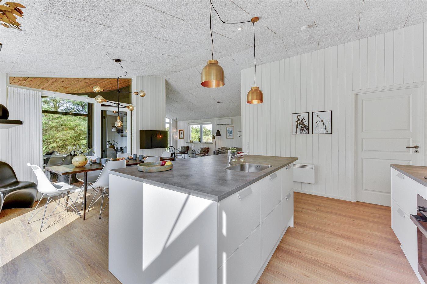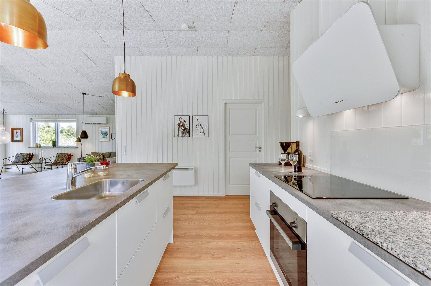 Køkkenet er udstyret med 1 køleskab. Der er 4 keramiske kogeplader, varmluftovn, mikrobølgeovn samt opvaskemaskine.