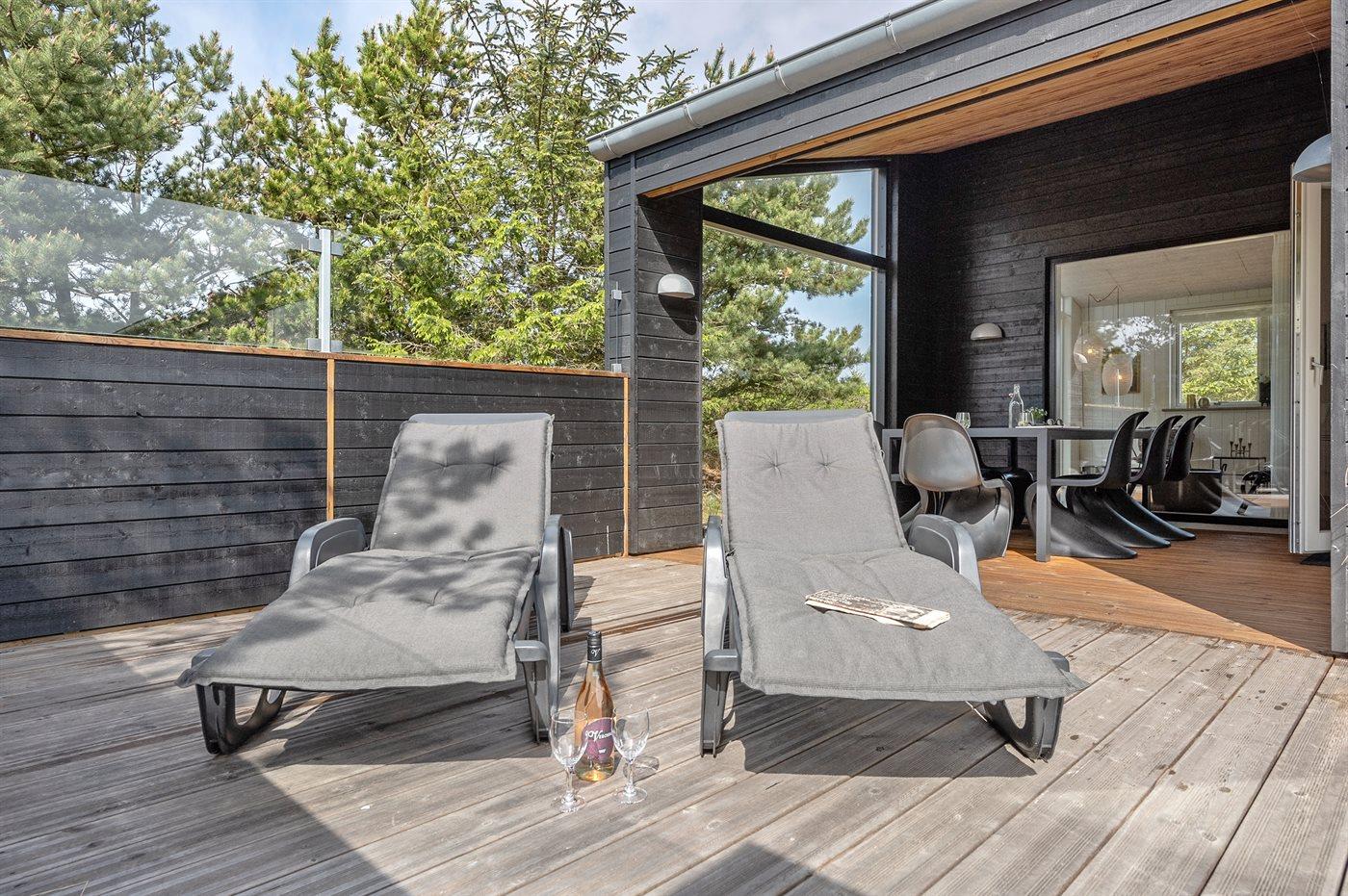 Dejligt sommerhus i Søndervig med stor lukket terrasse, sauna og shelter tæt på hav og natur.