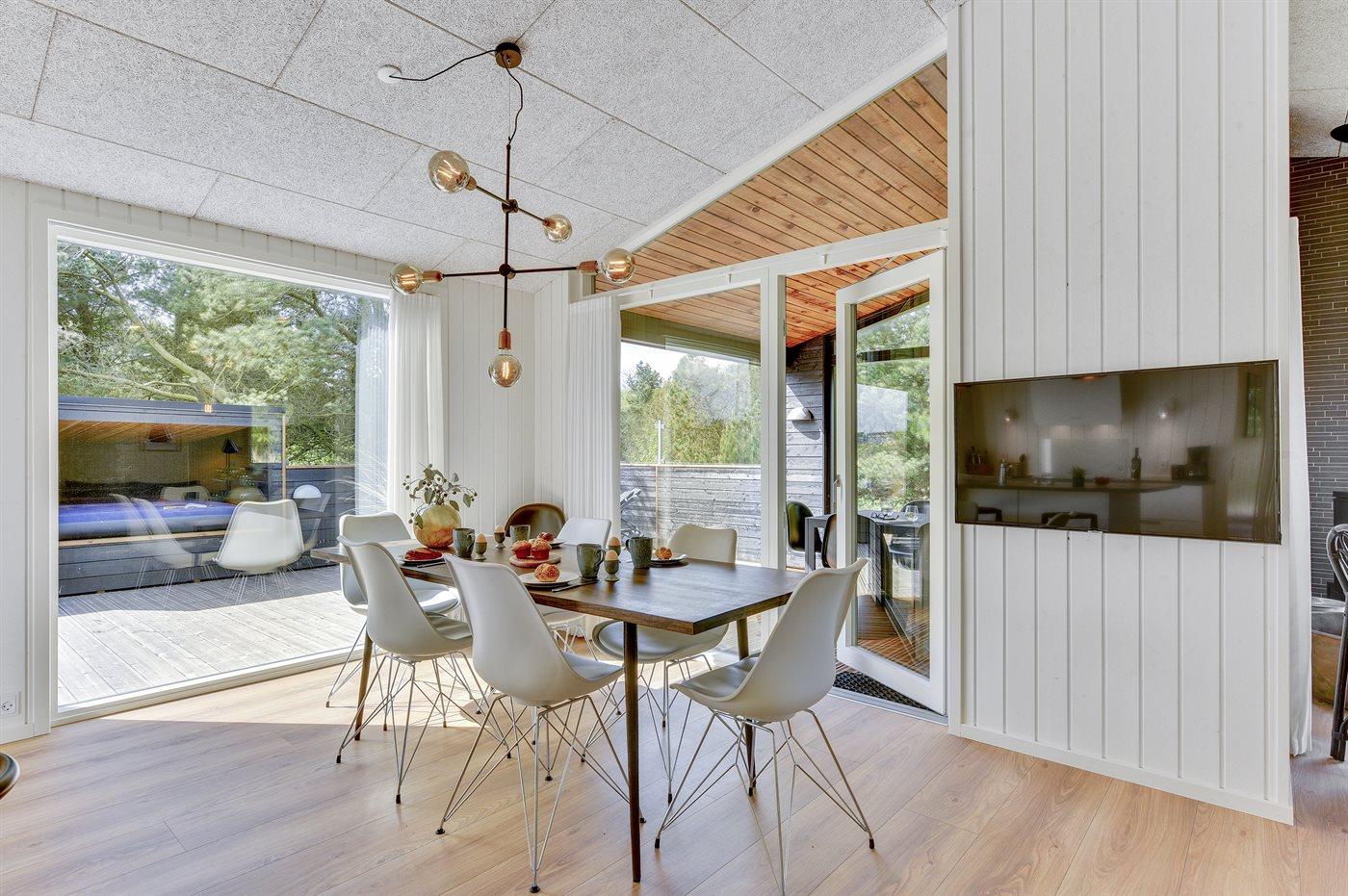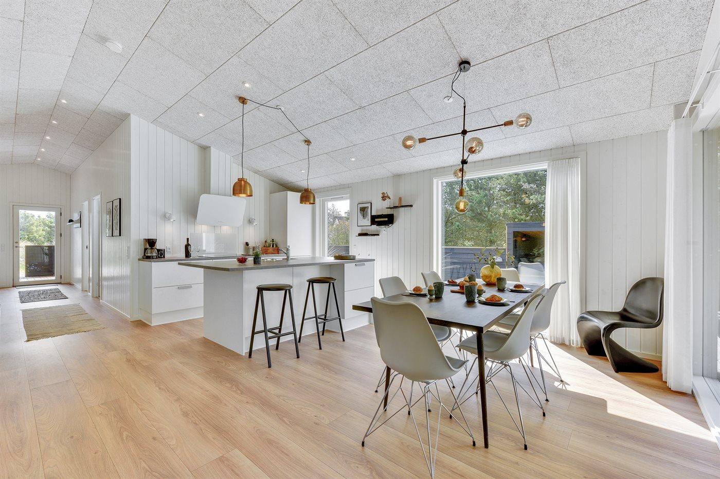 Sommerhuset egner sig til 6 personer samt 1 barn op til 3 år. Ferieboligen er på 112 m² og er bygget i 2019. Det er tilladt at medbringe 1 husdyr. Ferieboligen er udstyret med energibesparende varmepumpe. Ferieboligen har vaskemaskine. Tørretumbler. Frysekapacitet på 60 liter. Der er desuden brændeovn. Til de små er der 1 stk. barnestol.