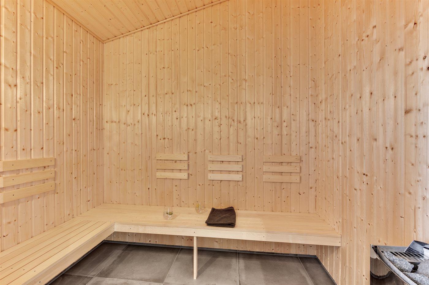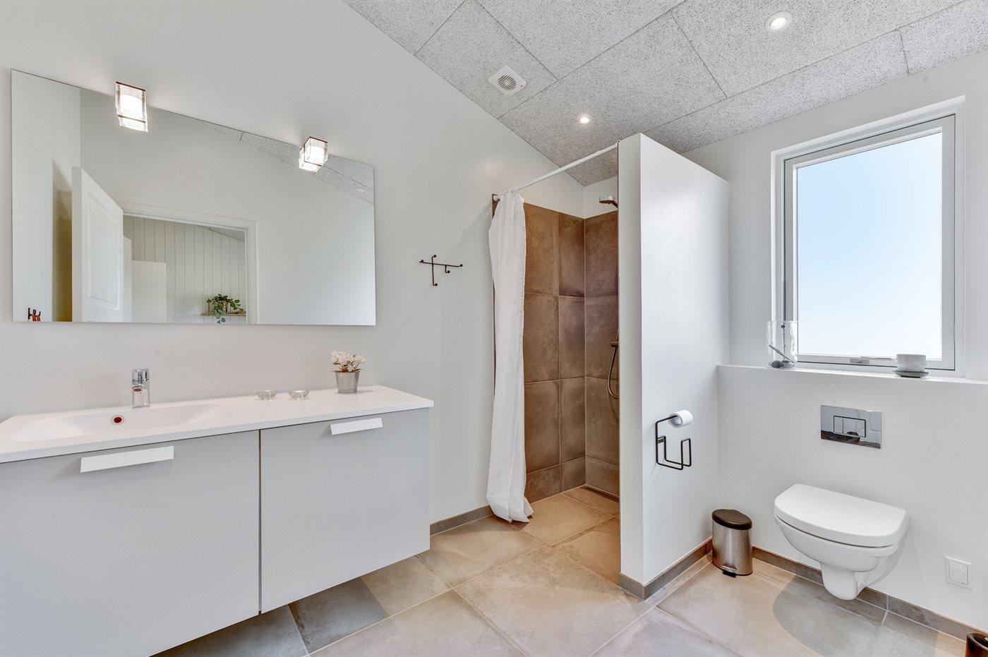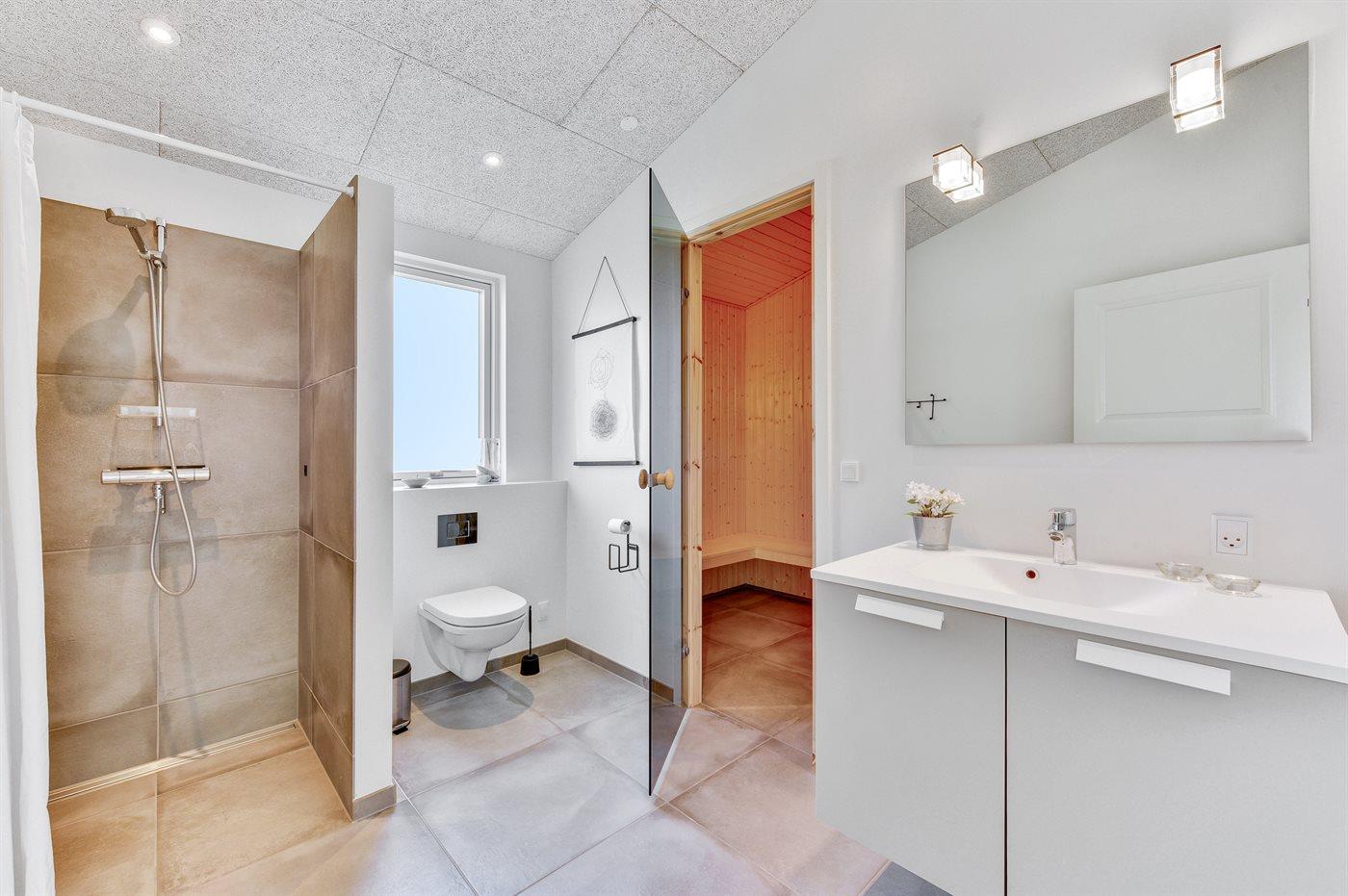 Der er 2 badeværelser med bruseniche og 2 toiletter. Der er gulvvarme på 2 badeværelser. I saunaen er der mulighed for afslapning.