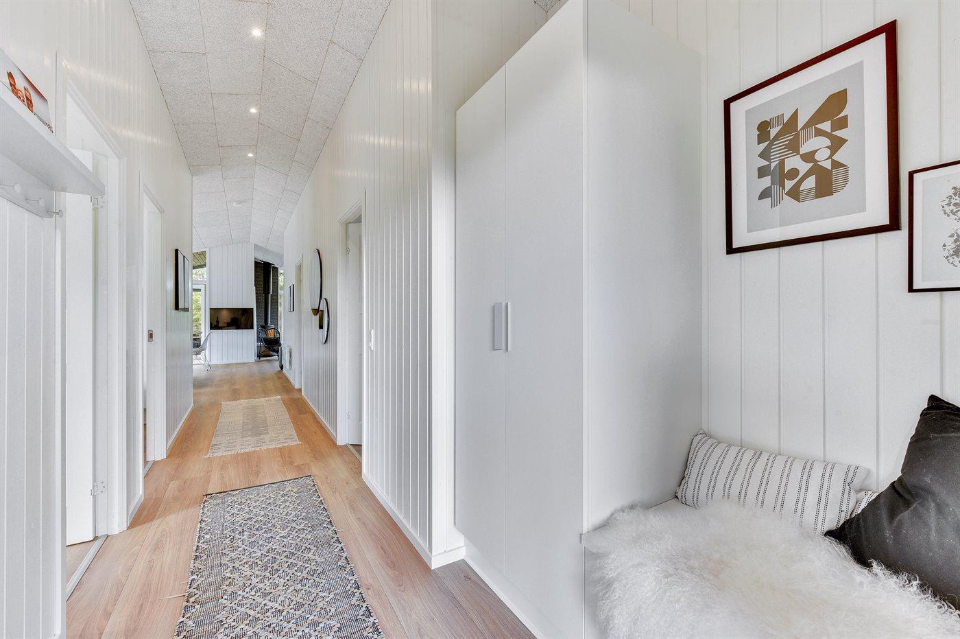 Dejligt sommerhus beliggende for enden af blind sidevej i et naturskønt område mellem hav og fjord. Til huset hører en stort og lukket terrasse med adgang til shelter.