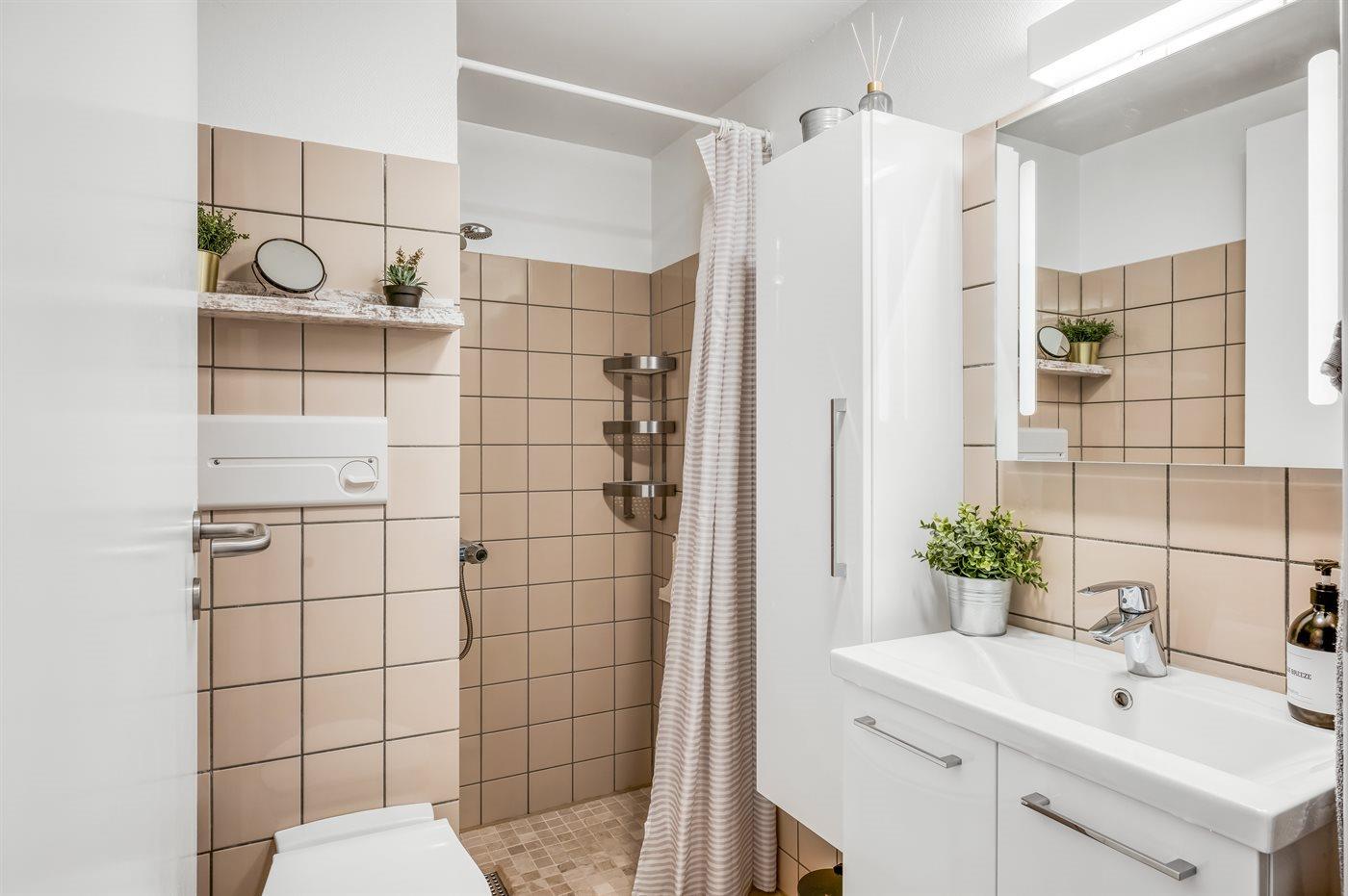 Der er 1 badeværelse med bruseniche og 1 toilet.. Der er gulvvarme på 1 badeværelse.