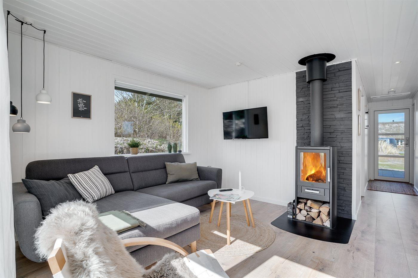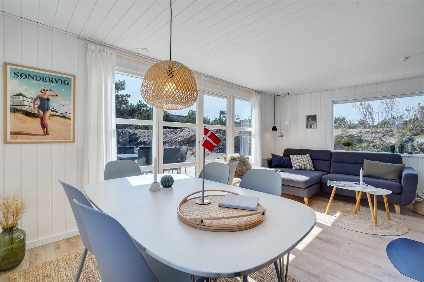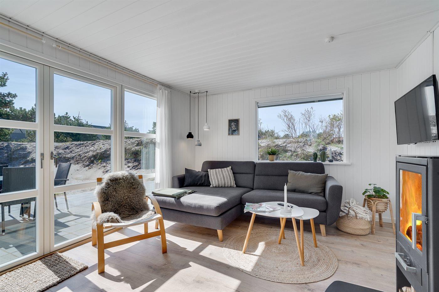 I gåafstand til Vesterhavet og det pulveriserende liv i Søndervig ligger dette nyrenoverede sommerhus.