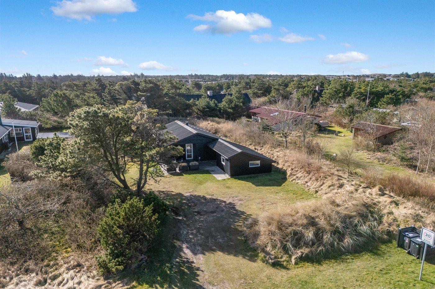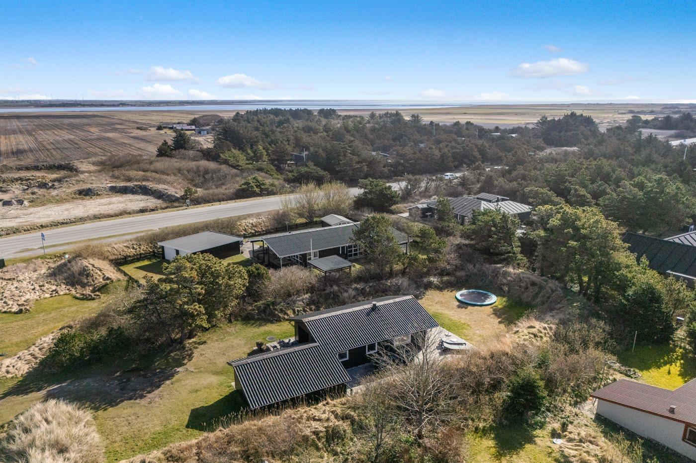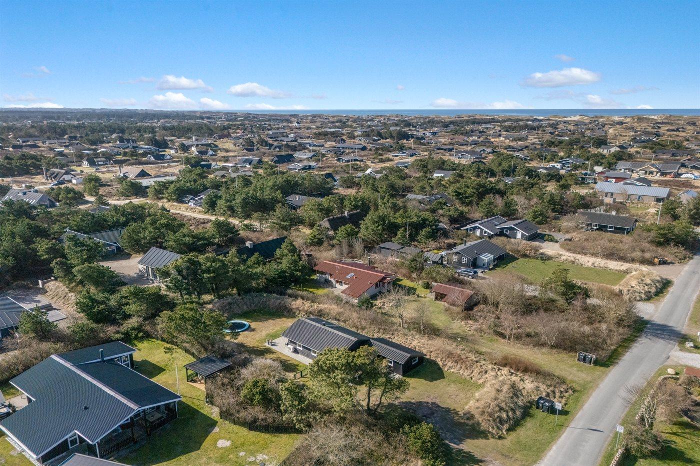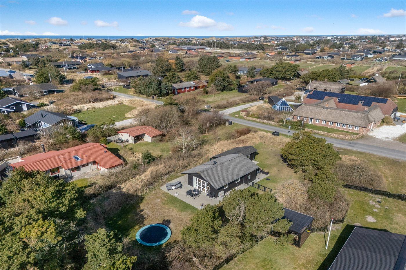 Ferieboligen er beliggende på en 1200 m² stor naturgrund. Der er 900 m til havet. Nærmeste forretning er beliggende i en afstand af 1000 m. Der er en golfbane i en afstand af 2000 m. Til ferieboligen hører åbent terrasseareal. Der er redskabsrum. Trampolin. Parkering ved ferieboligen.