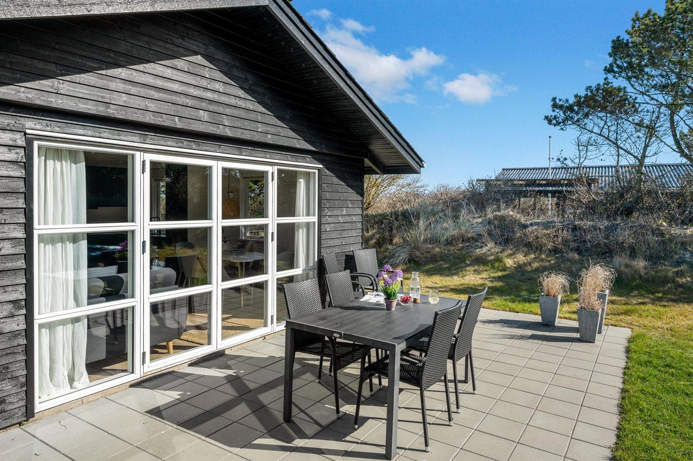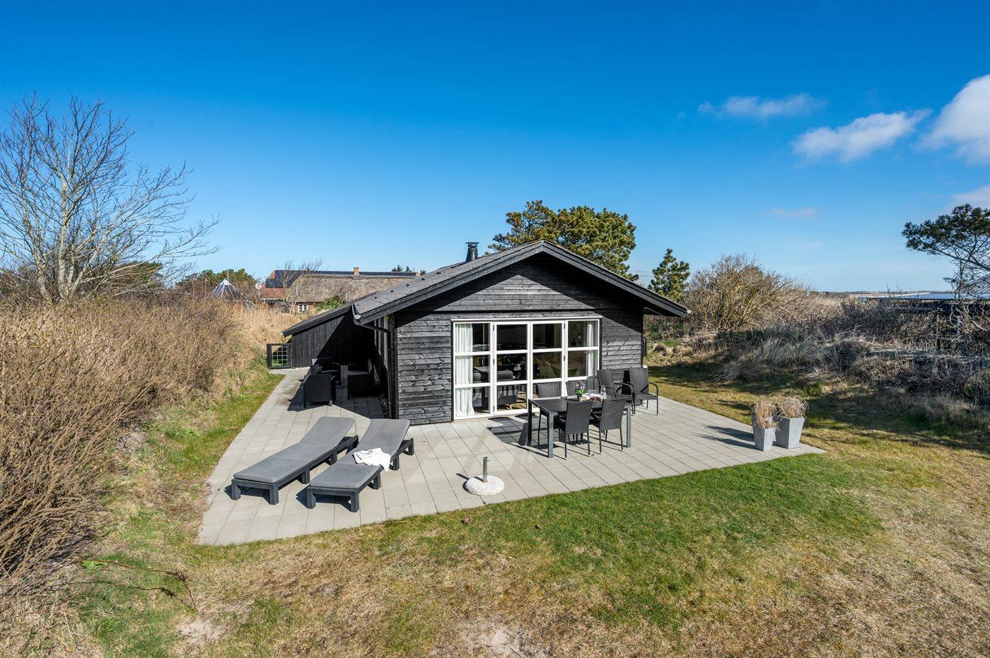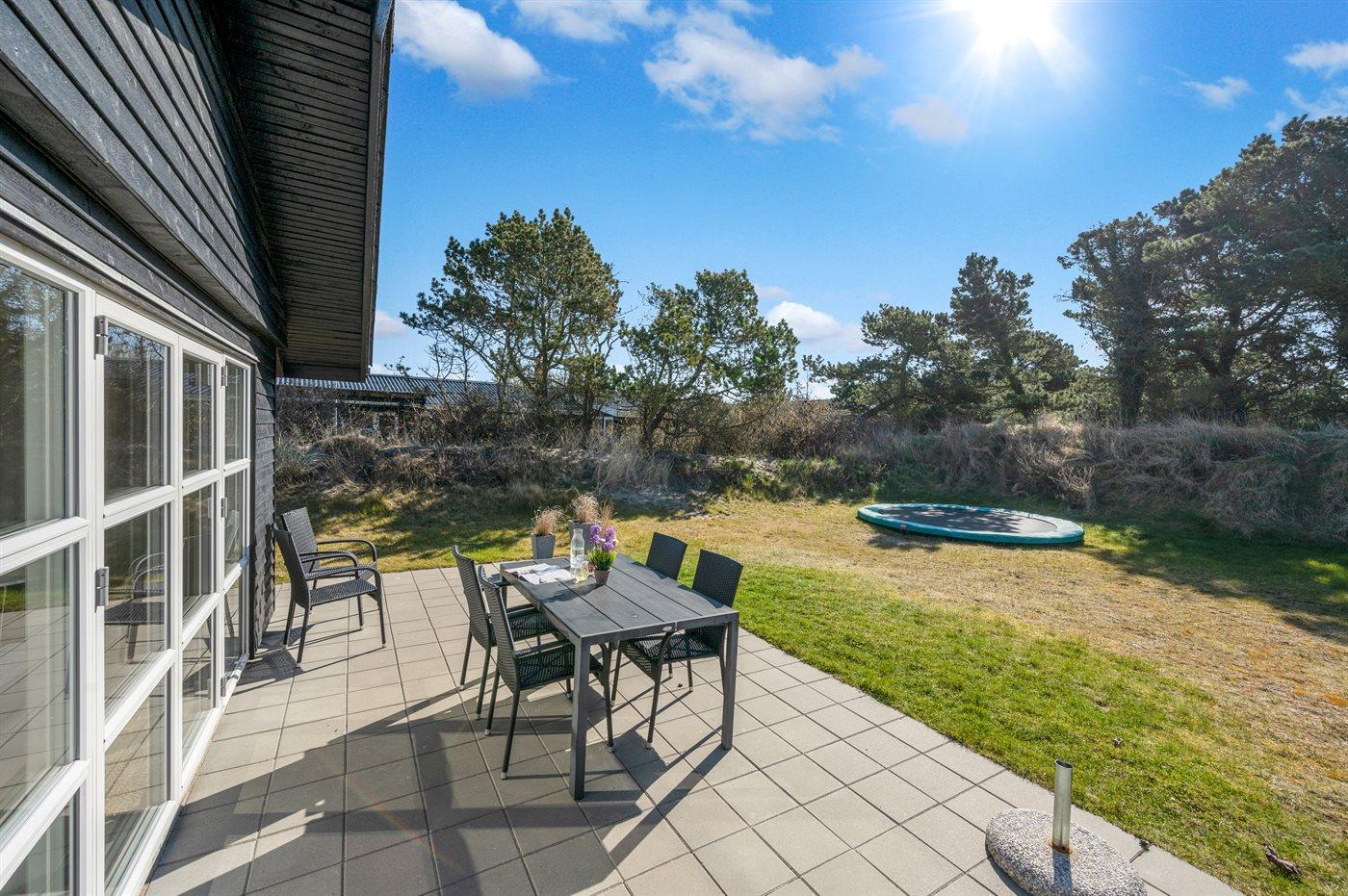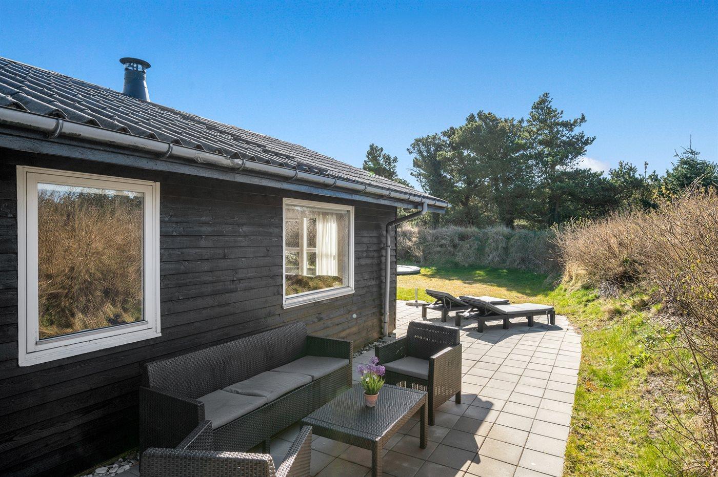Ferieboligen er beliggende på en 1200 m² stor naturgrund. Der er 900 m til havet. Nærmeste forretning er beliggende i en afstand af 1000 m. Der er en golfbane i en afstand af 2000 m. Til ferieboligen hører åbent terrasseareal. Der er redskabsrum. Trampolin. Parkering ved ferieboligen.