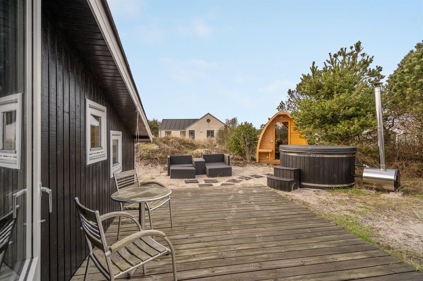 Nyrenoveret sommerhus med vildmarksbad og sauna tæt på havet i Søndervig.