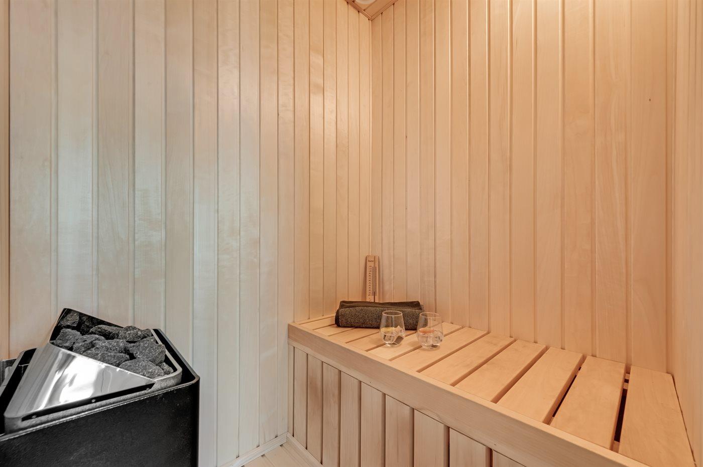 Der er 1 badeværelse med bruser og 2 toiletter, heraf 1 gæstetoilet. Der er gulvvarme på 2 badeværelser. I saunaen er der mulighed for afslapning.