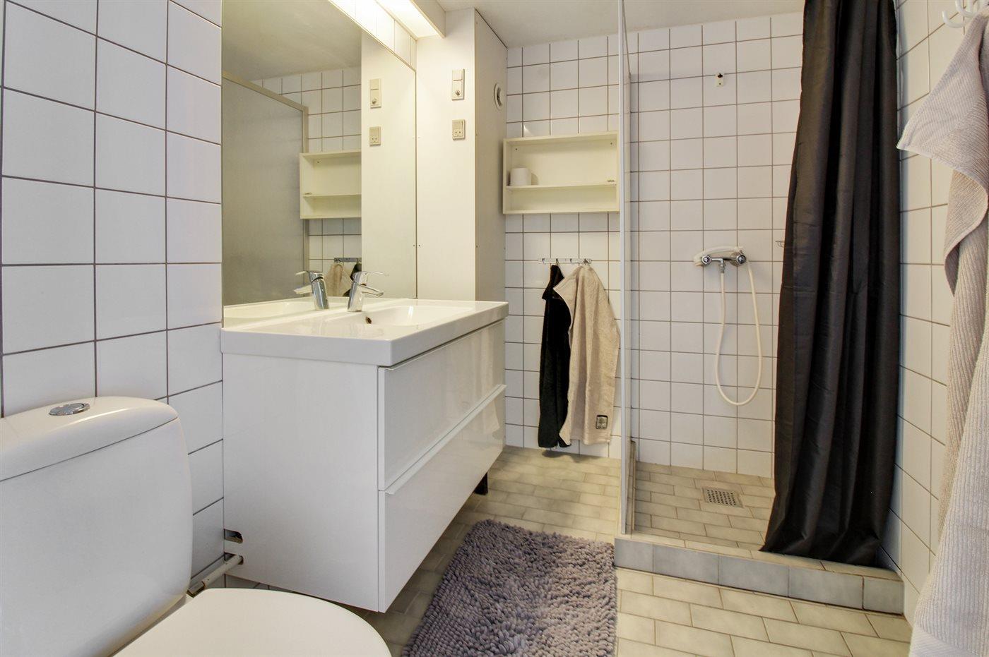 Der er 1 badeværelse med bruseniche og 1 toilet.