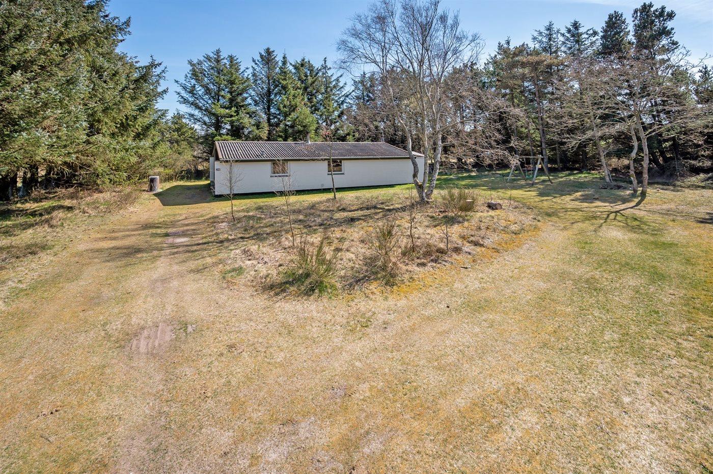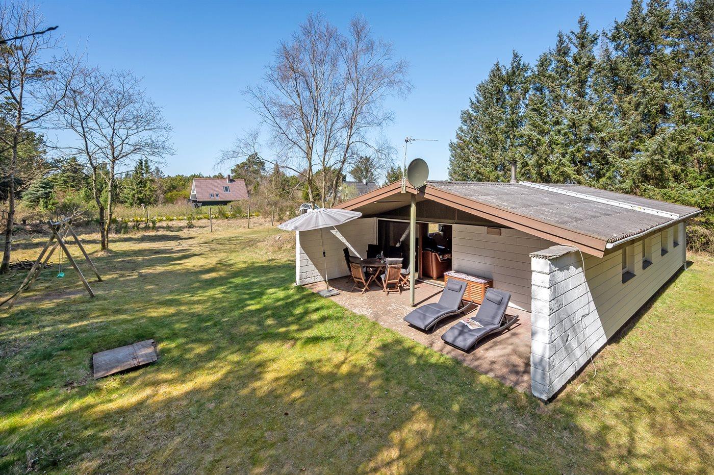 Velholdt sommerhus i Søndervig med stor naturgrund, tæt på golf og fjord, ideelt til familier og kæledyr.