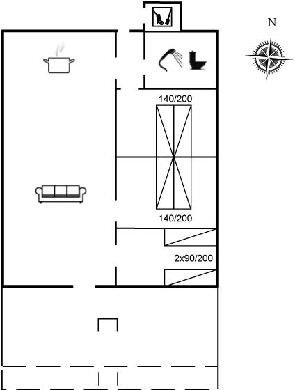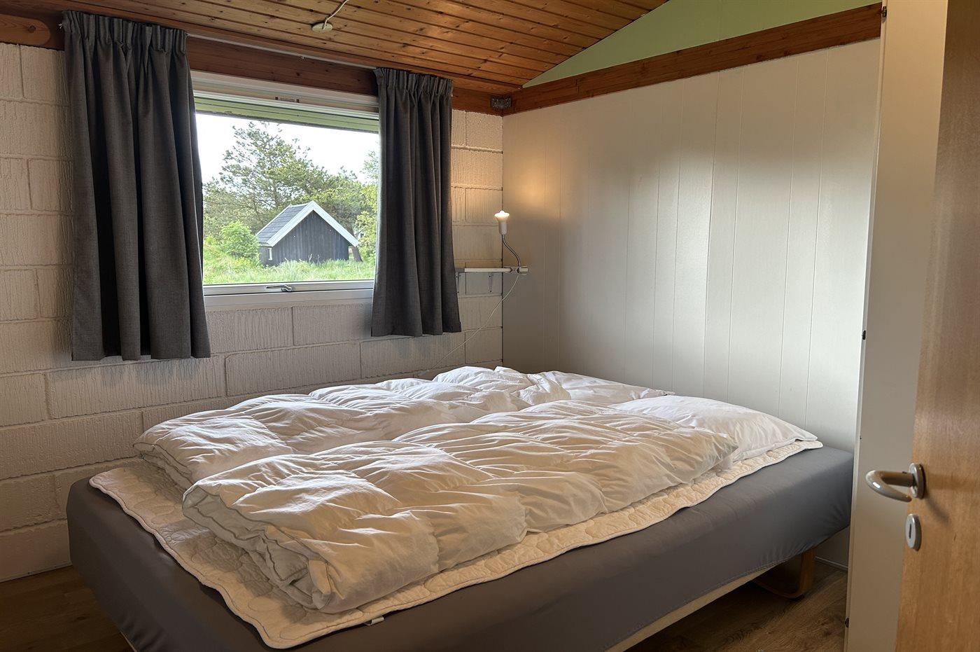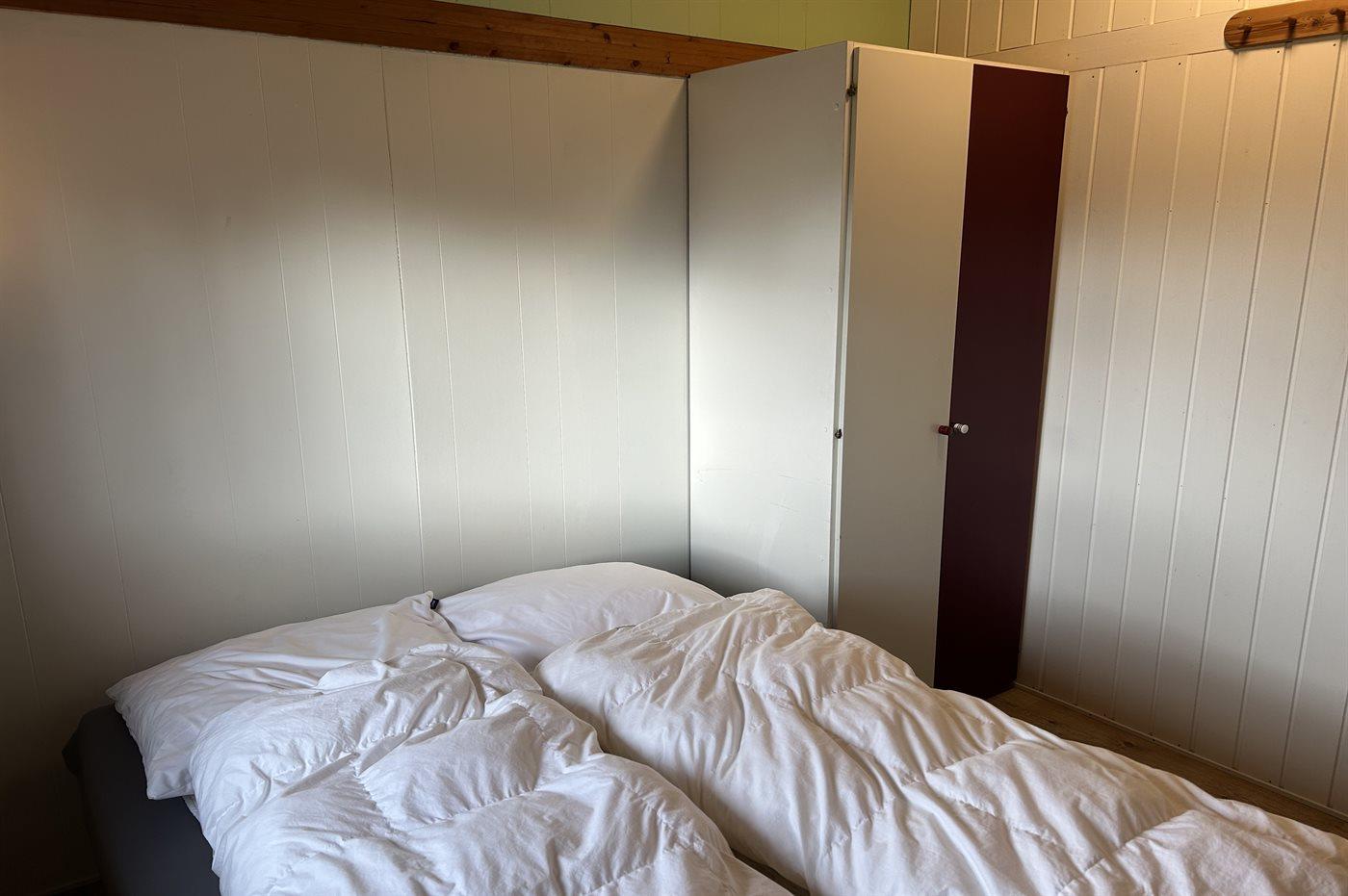 Der er i alt 3 soveværelser. Sovepladserne fordeler sig på: 4 sovepladser i dobbeltsenge. 2 sovepladser i enkeltsenge. Derudover er der 1 stk. barneseng.