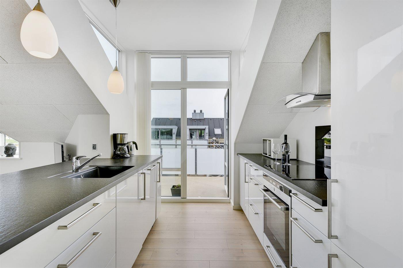 Køkkenet er udstyret med 1 køleskab. Der er 4 keramiske kogeplader, varmluftovn, mikrobølgeovn samt opvaskemaskine.