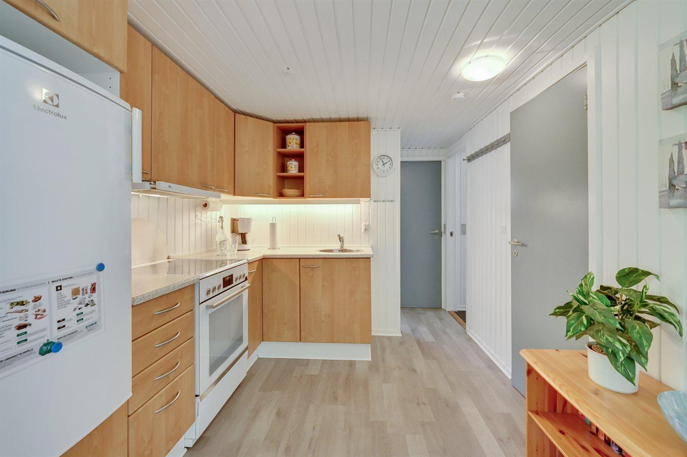 Køkkenet er udstyret med 1 køleskab. Der er 4 keramiske kogeplader, varmluftovn, mikrobølgeovn.