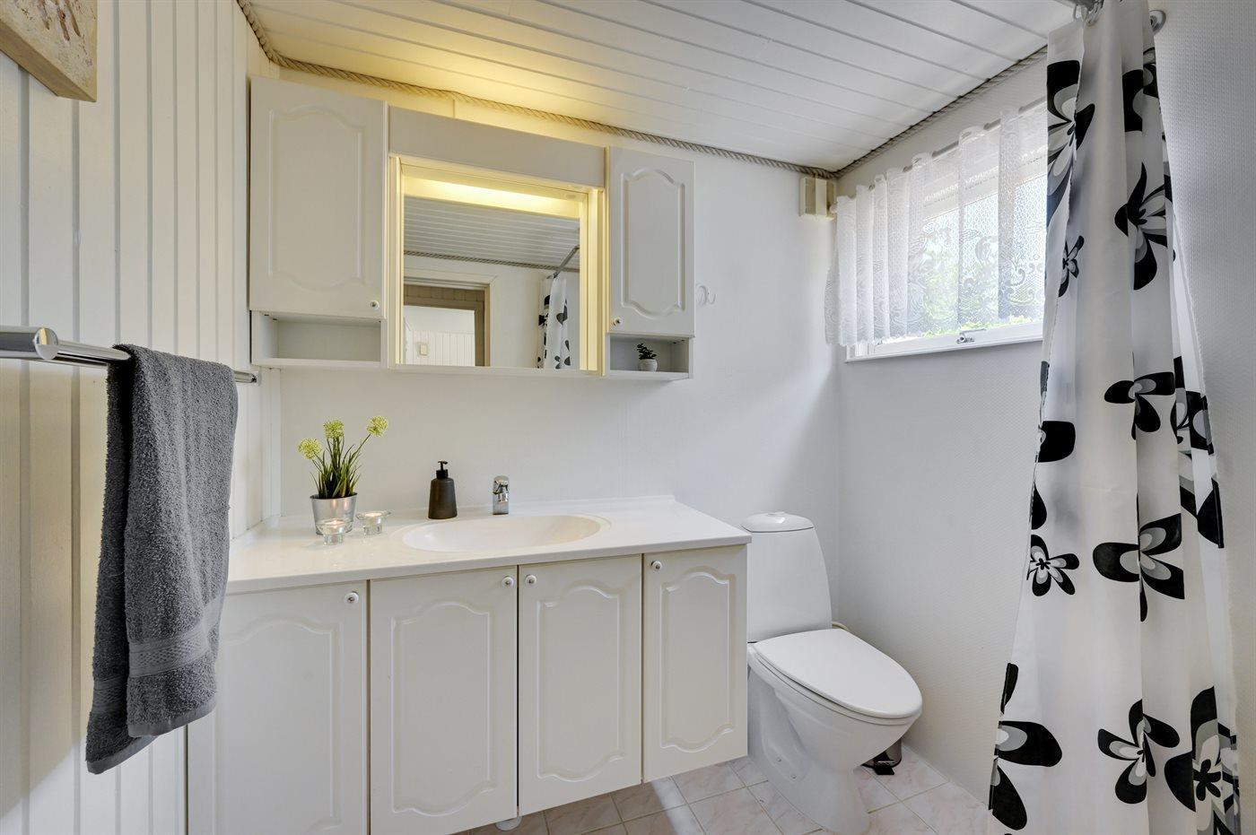 Dette hyggelige sommerhus er beliggende på en stor grund med masser af beplantning rundt om huset i et naturskønt område mellem hav og fjord. Til huset hører skønne terrassearealer.