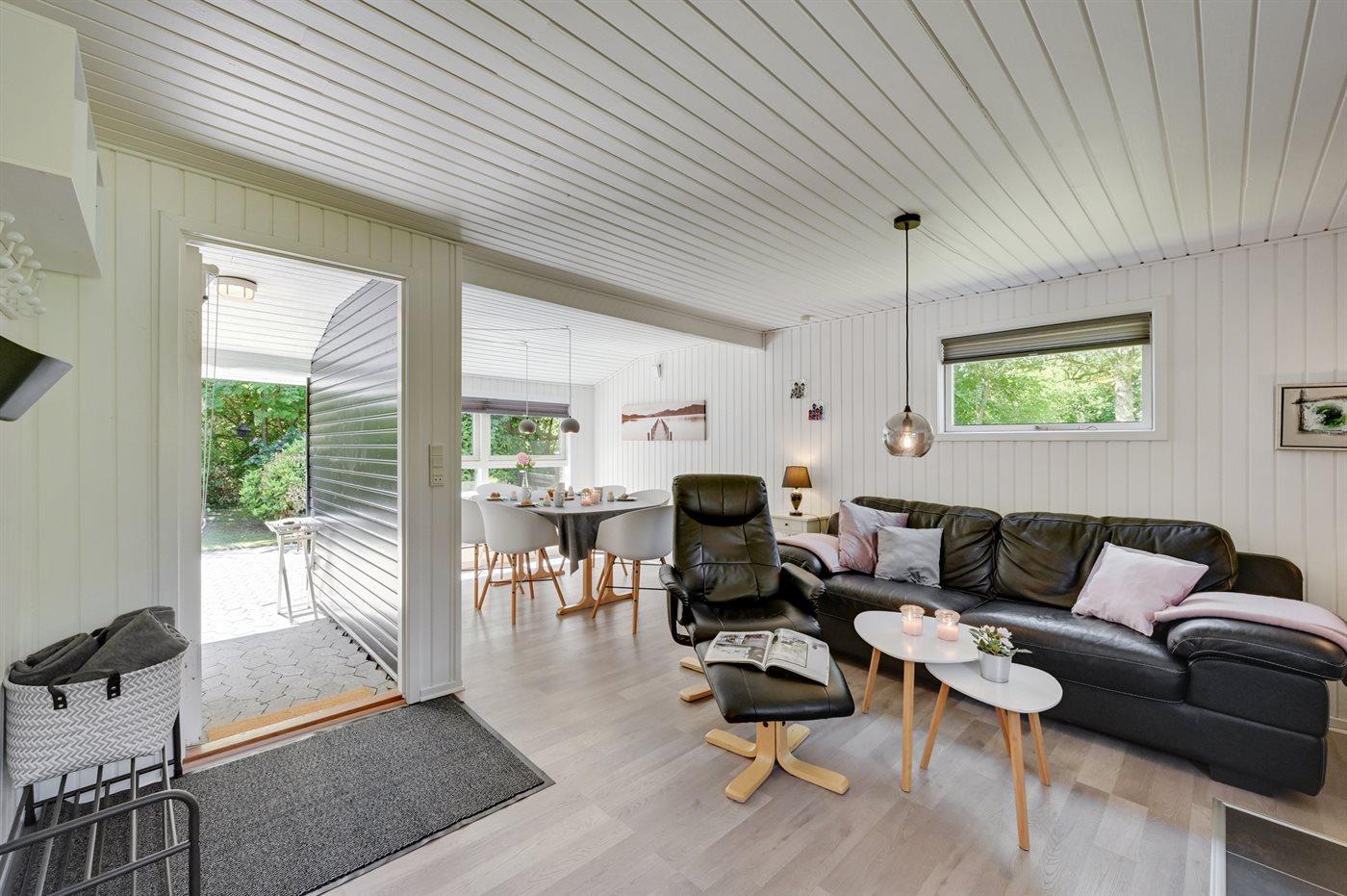 Hyggeligt sommerhus i naturskønt område nær hav og fjord med stor have og terrasse.