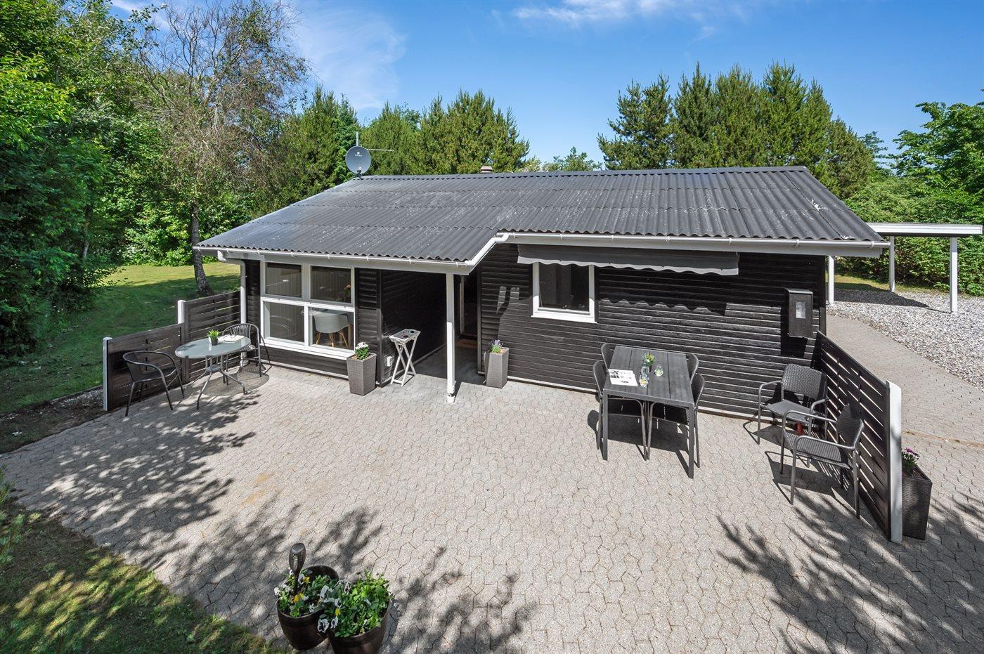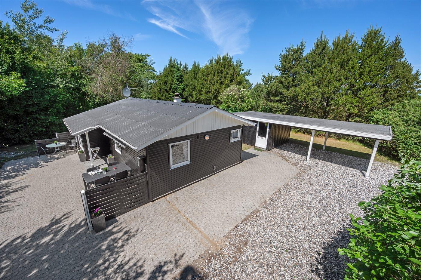 Ferieboligen er beliggende på en 2300 m² stor havegrund. Der er 1600 m til havet. Nærmeste forretning er beliggende i en afstand af 1400 m. Der er en golfbane i en afstand af 600 m. Til ferieboligen hører 40 m² terrasseareal. Fodboldmål. Der er carport til rådighed. Parkering ved ferieboligen.