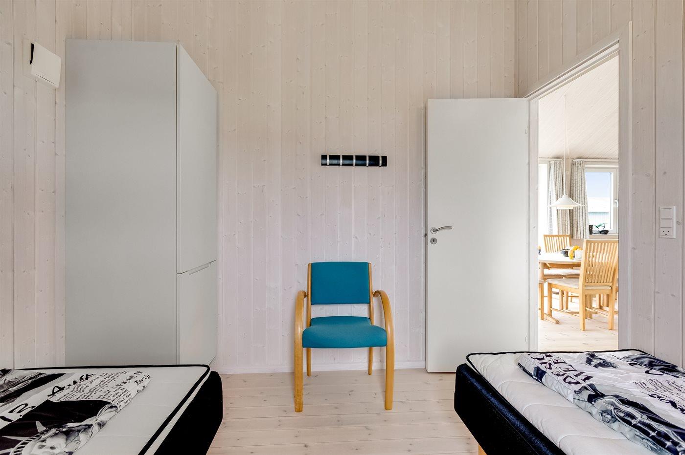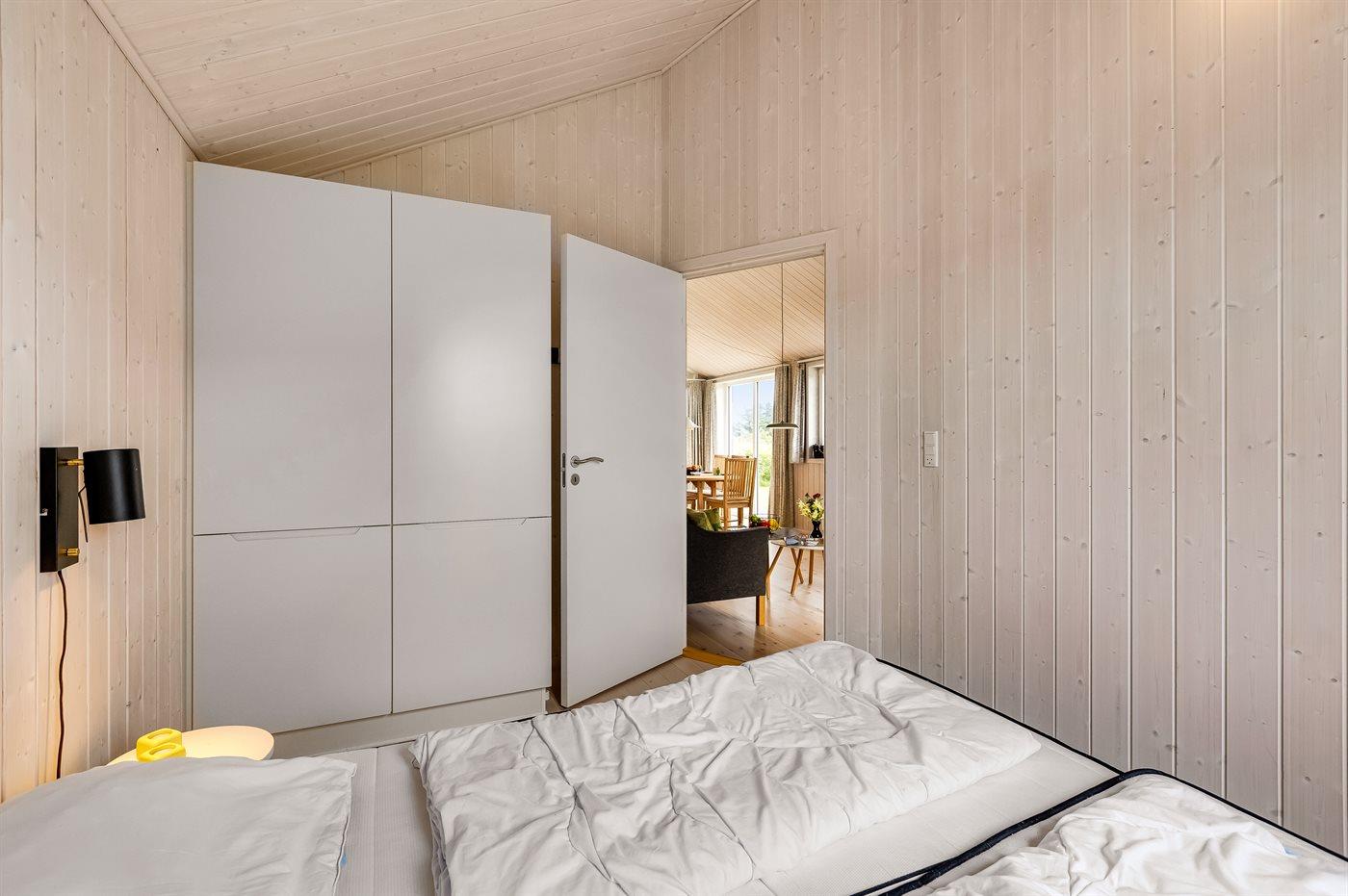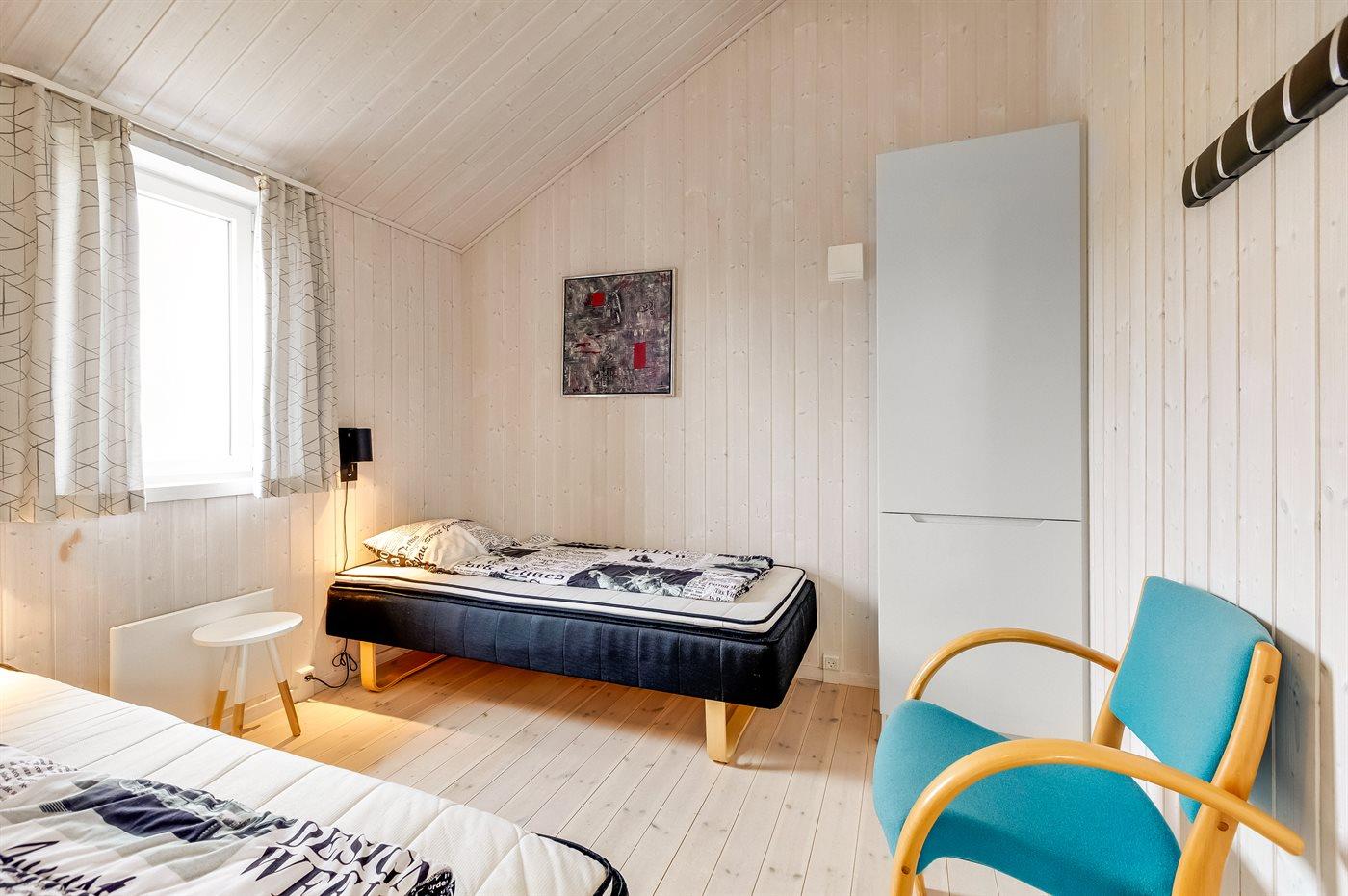 Der er i alt 2 soveværelser. Sovepladserne fordeler sig på: 2 sovepladser i dobbeltseng. 2 sovepladser i enkeltsenge. Derudover er der 1 stk. barneseng.