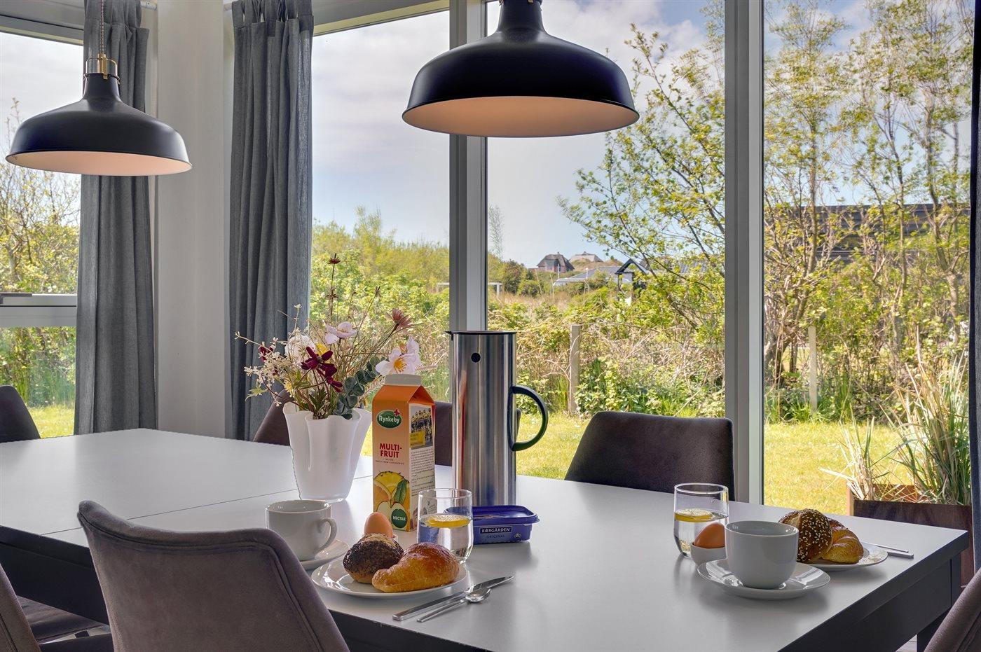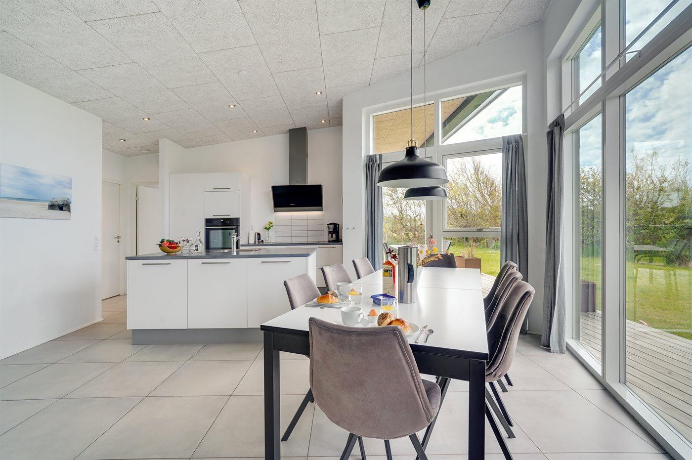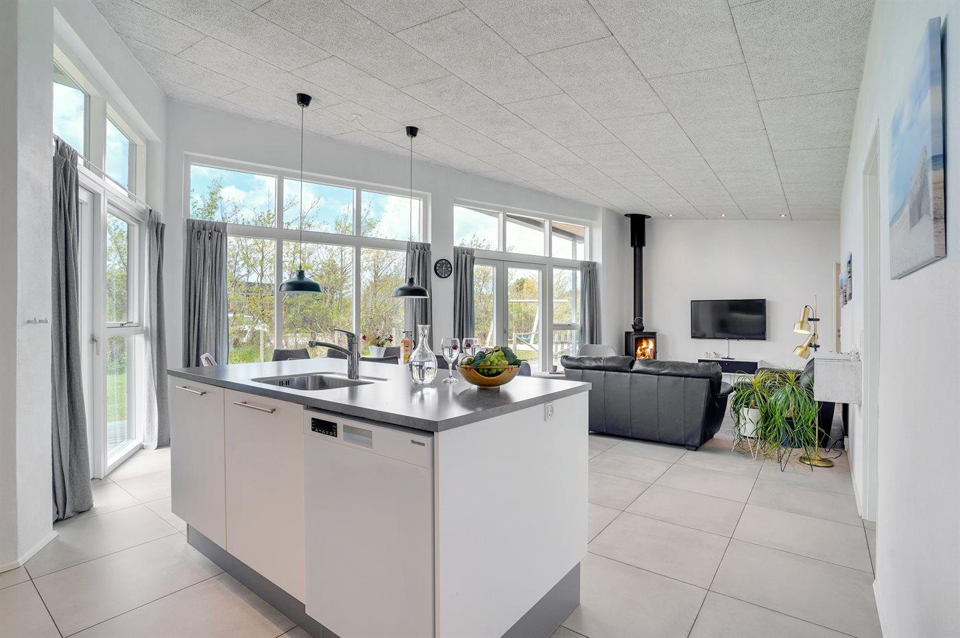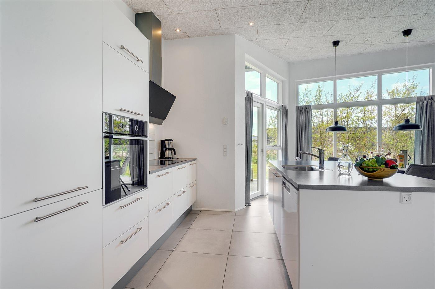 Køkkenet er udstyret med 1 køleskab. Der er 4 induktionskogeplader, varmluftovn, mikrobølgeovn samt opvaskemaskine.