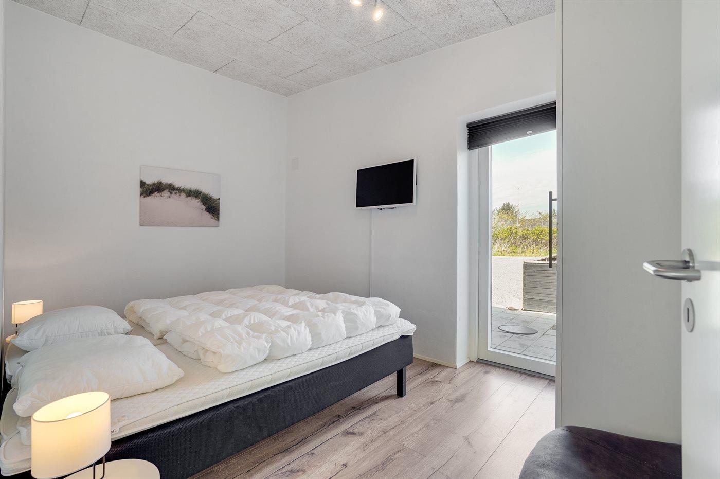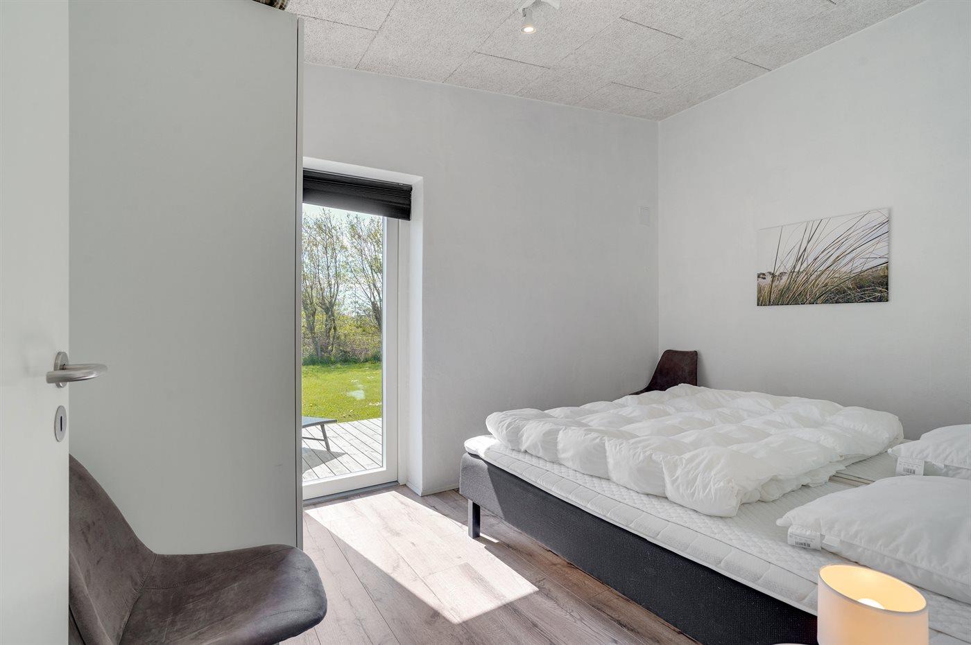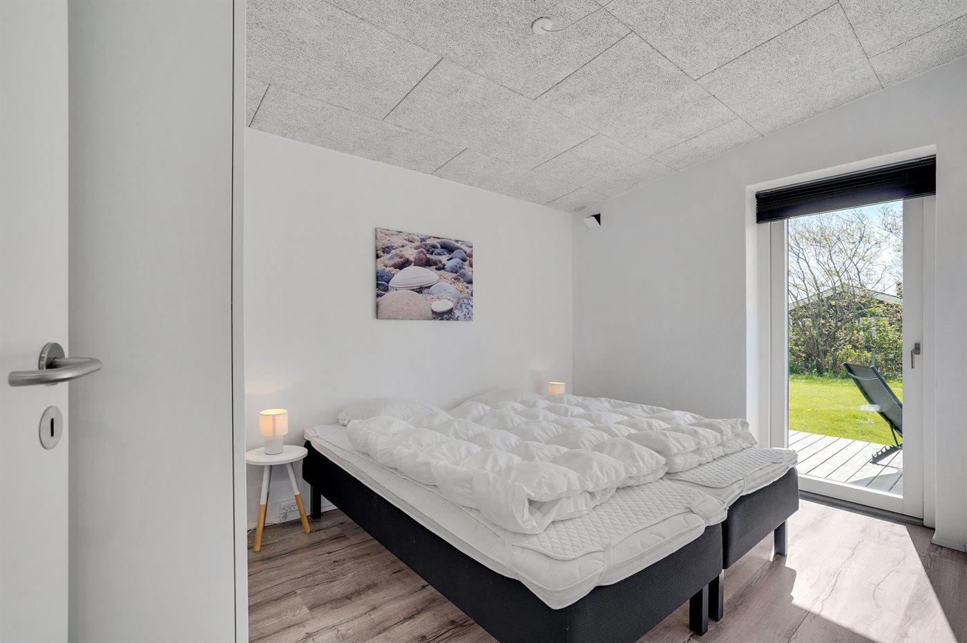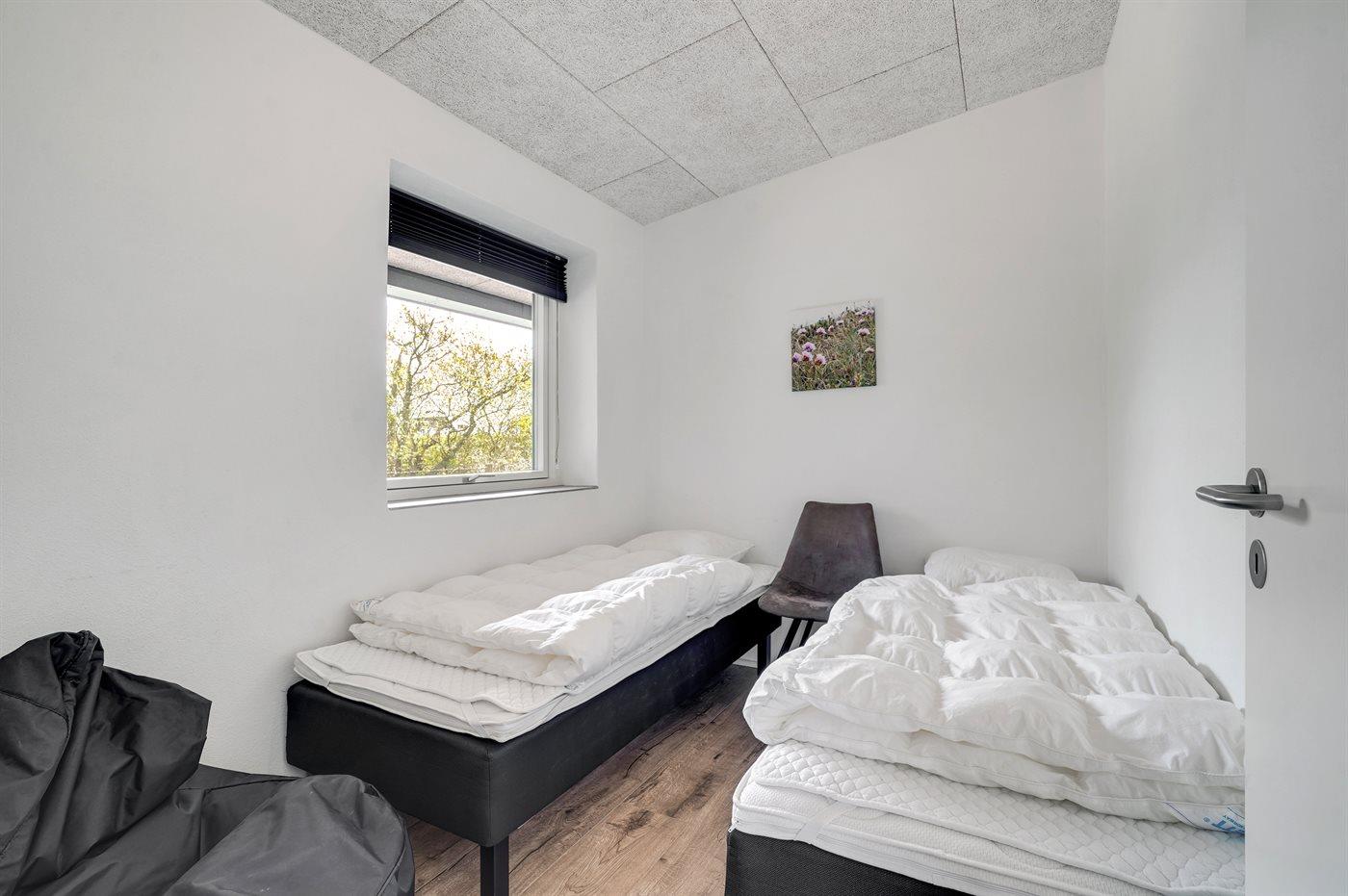 Der er i alt 3 soveværelser. Sovepladserne fordeler sig på: 6 sovepladser i dobbeltsenge. 2 sovepladser i enkeltsenge. Derudover er der 1 stk. barneseng.