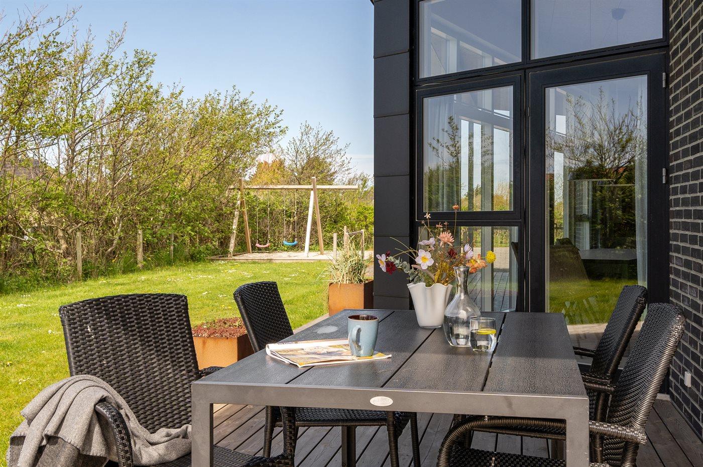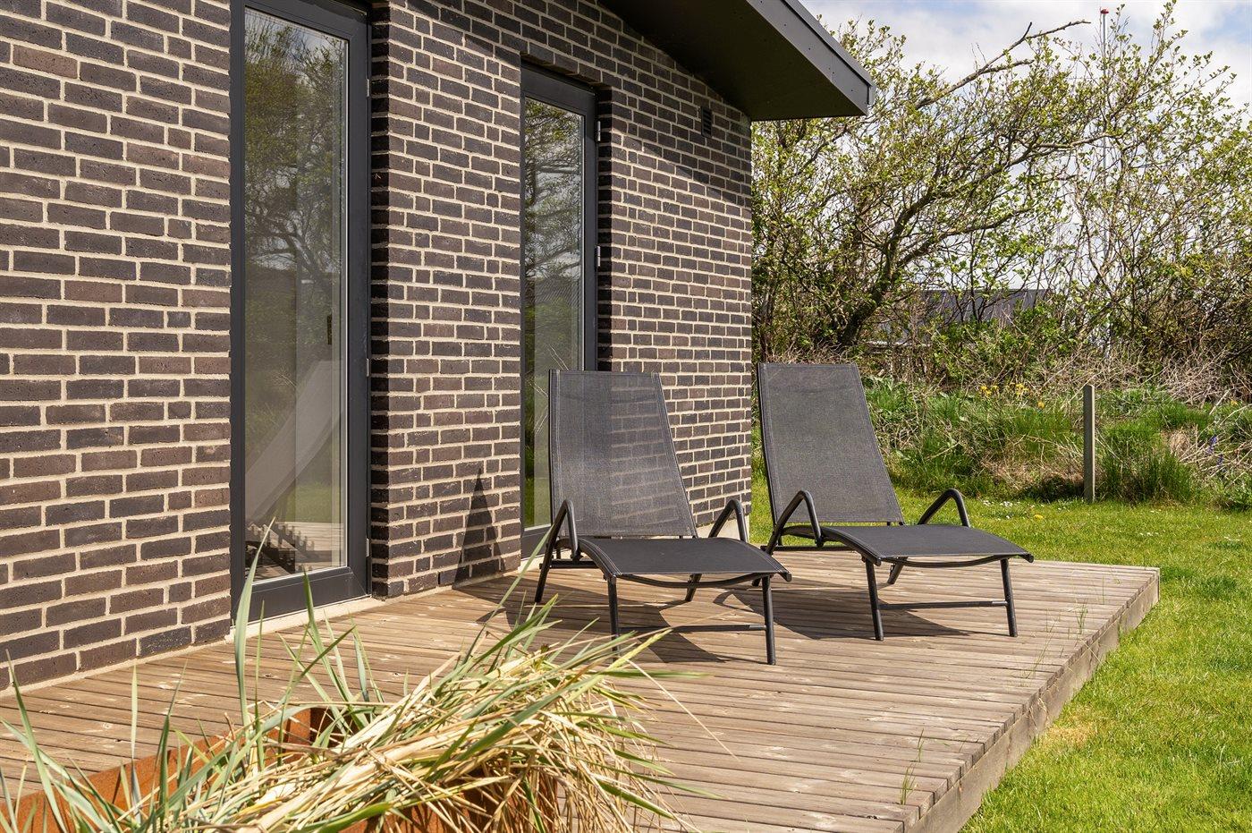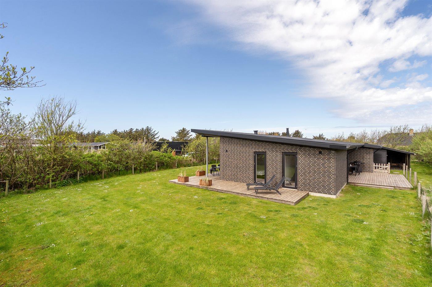 Ferieboligen er beliggende på en 1205 m² stor naturgrund. Grunden er indhegnet. Der er 650 m til havet. Nærmeste forretning er beliggende i en afstand af 800 m. Der er en golfbane i en afstand af 1500 m. Til ferieboligen hører åbent terrasseareal. Desuden er der overdækket terrasse. Gynge. Sandkasse. Parkering ved ferieboligen.