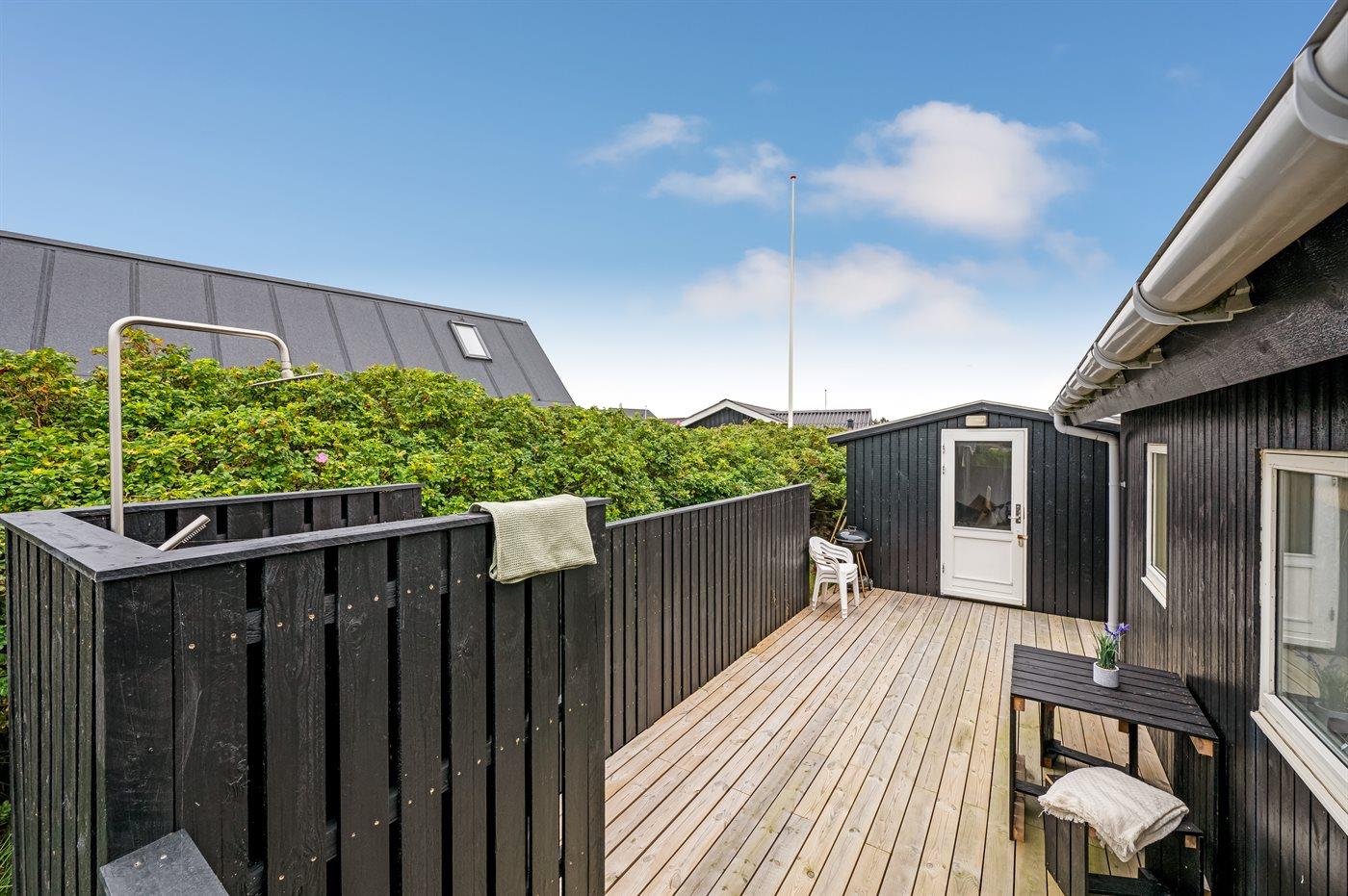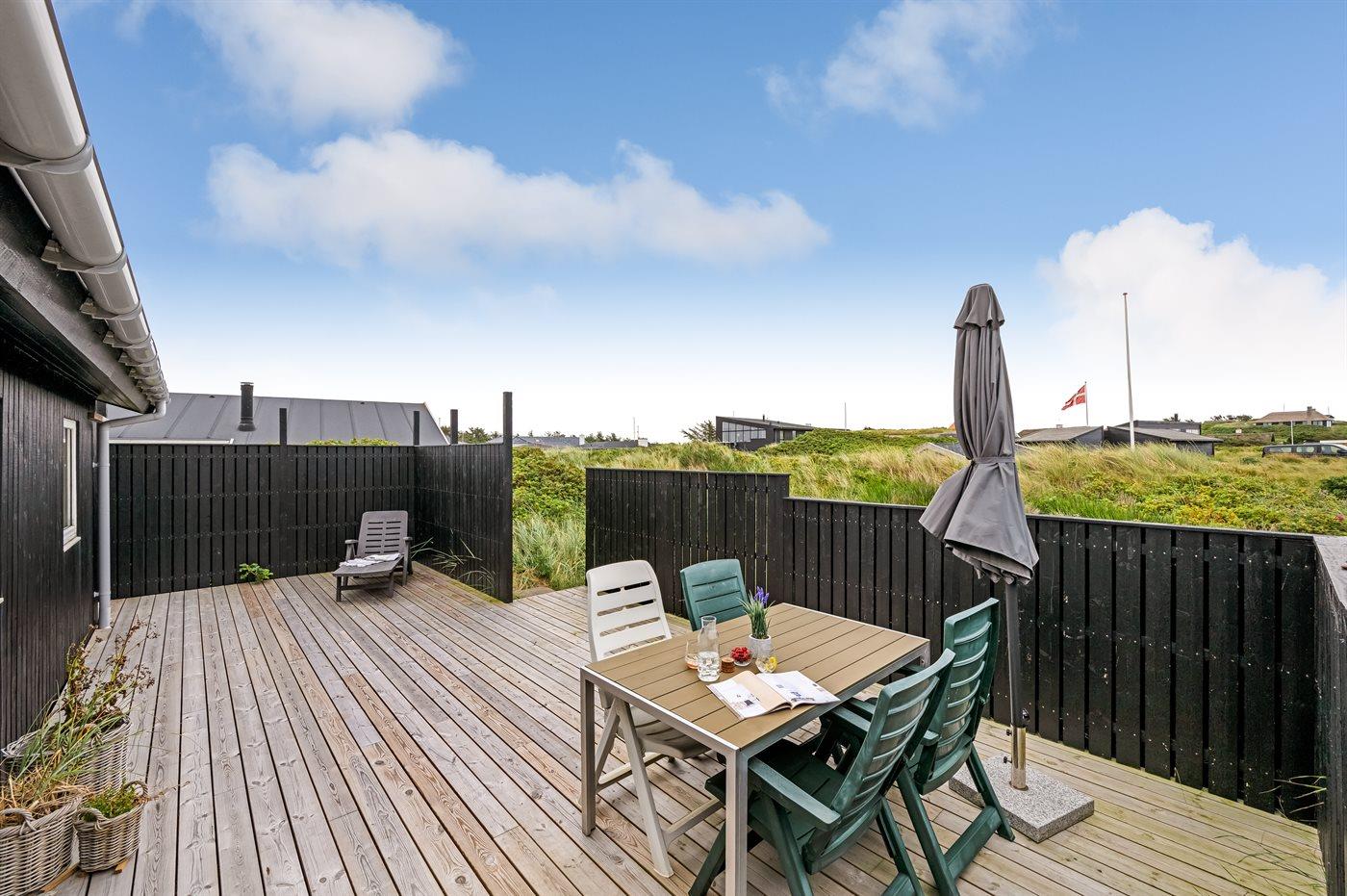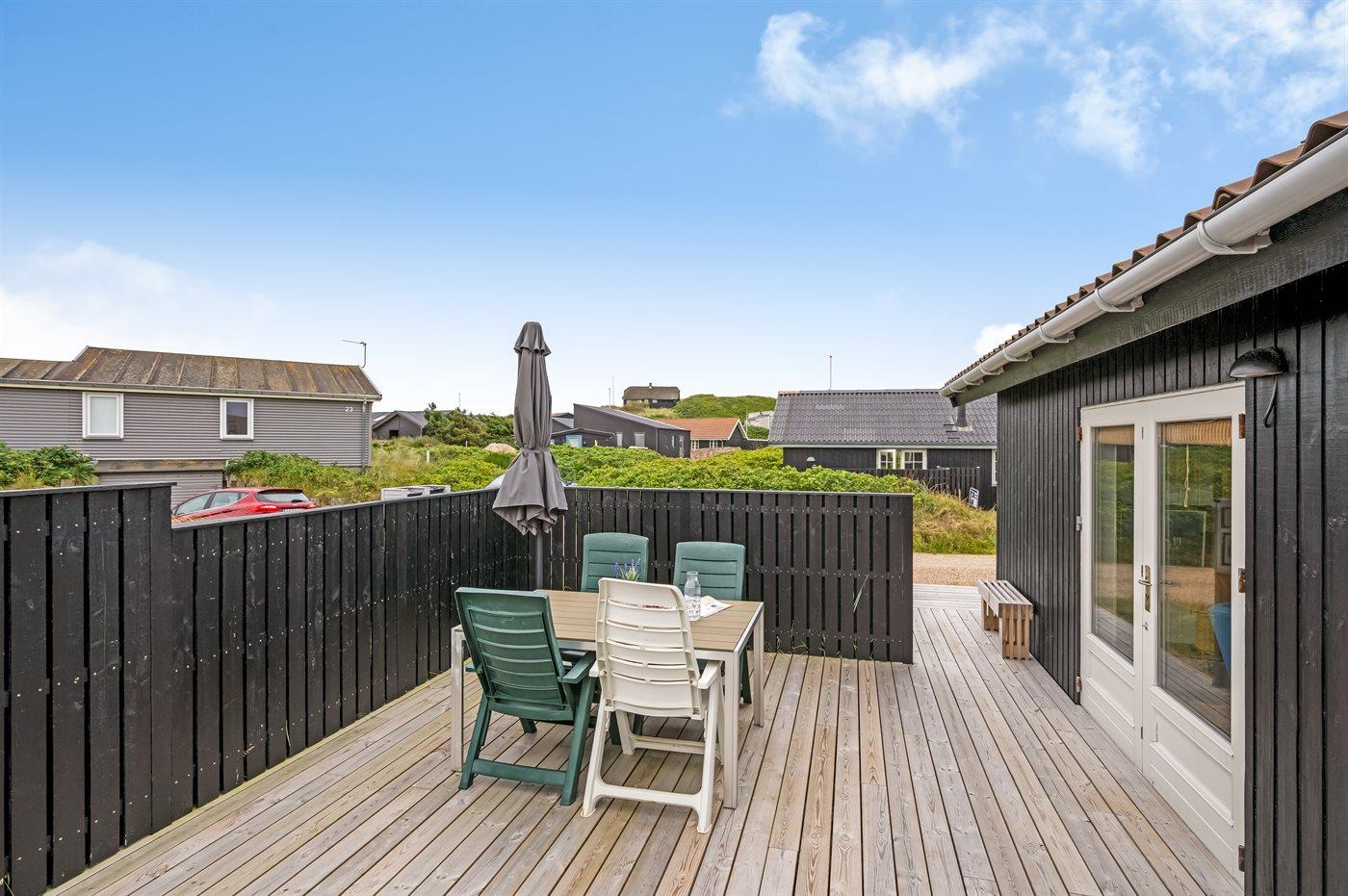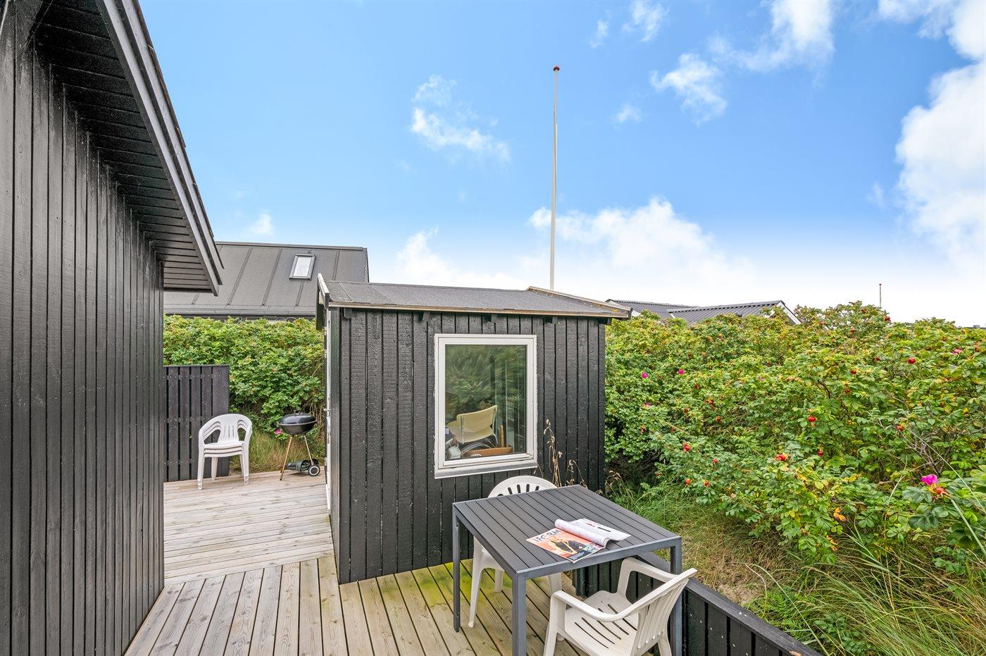 Et hyggeligt sommerhus med lukket terrasse beliggende på Sletten i feriebyen Søndervig – tæt på havet og centrum.
