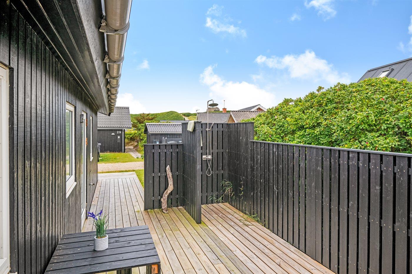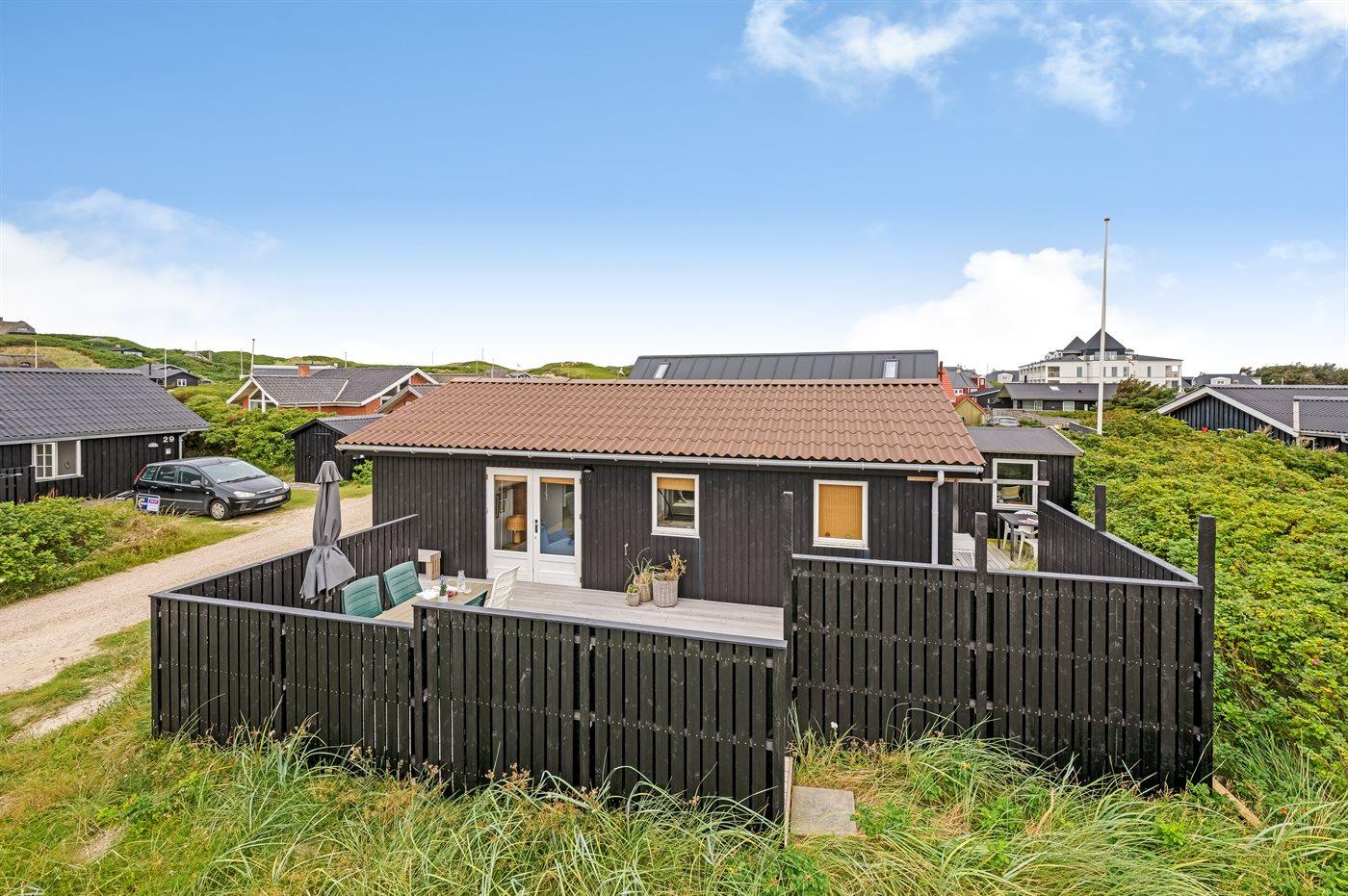 Hyggeligt sommerhus i Søndervig med lukket terrasse tæt på hav og centrum, perfekt til familier og husdyr.