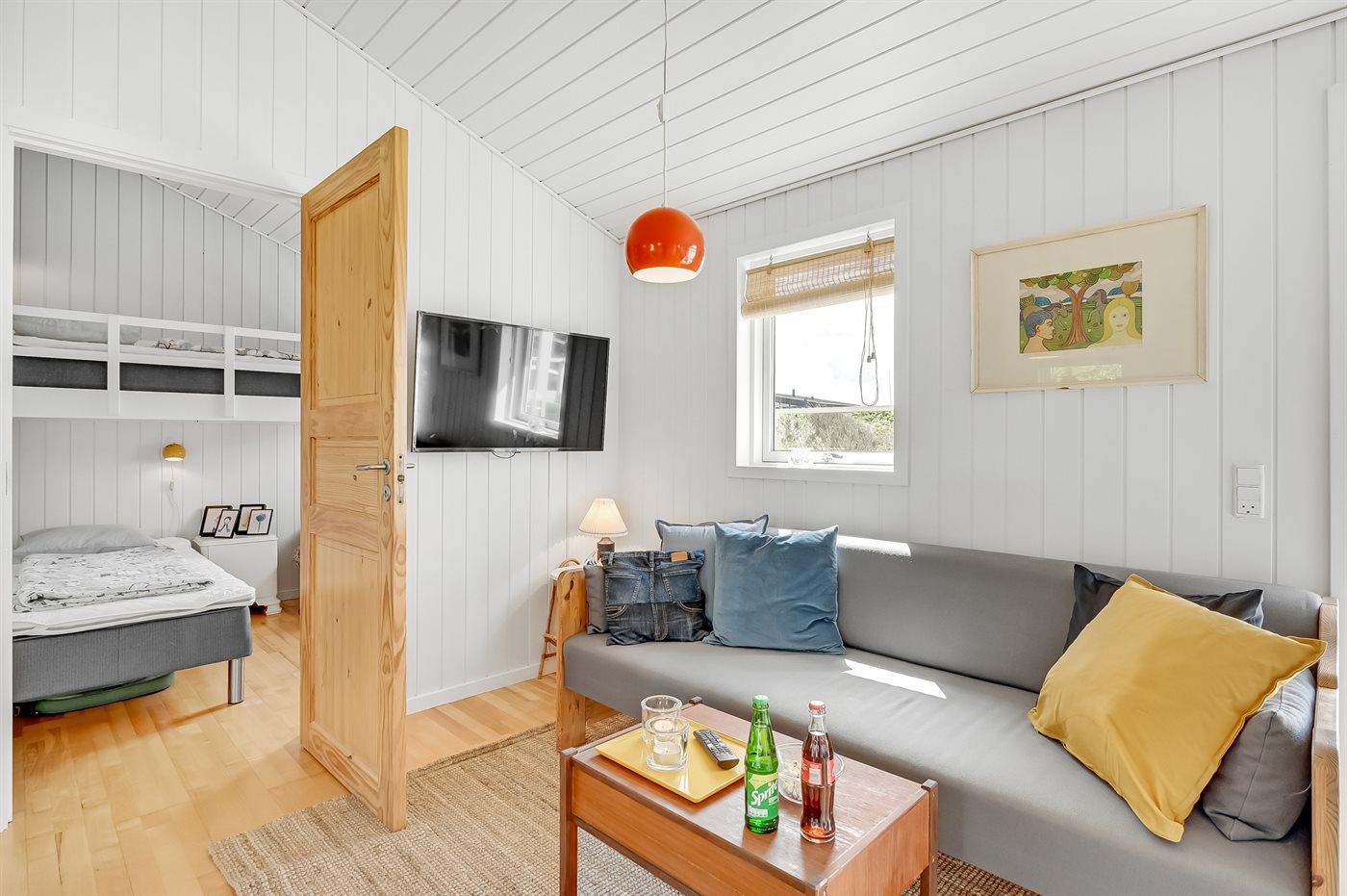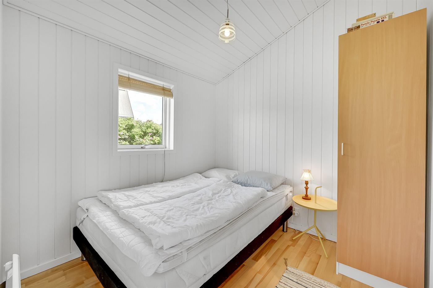 Der er i alt 2 soveværelser. Sovepladserne fordeler sig på: 2 sovepladser i dobbeltseng. 2 sovepladser i køjeseng. Derudover er der 1 stk. barneseng.