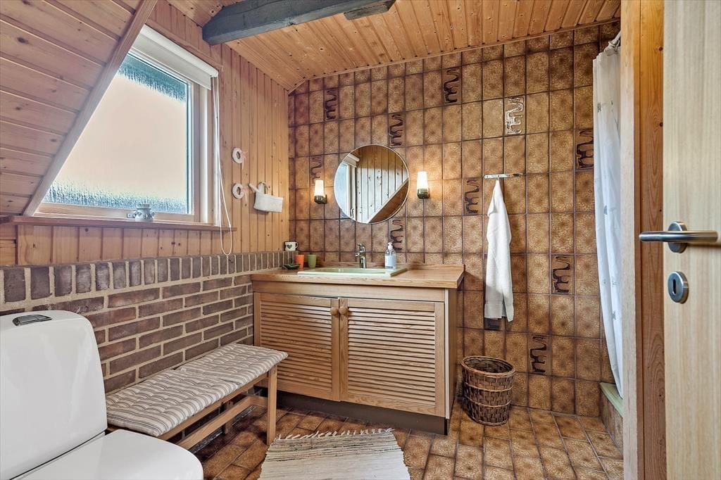 Når I træder ind i sommerhuset, mødes I af en lys og indbydende atmosfære. Huset har netop fået en lækker opdatering med nye gulve i 2025, og det giver boligen et frisk og moderne udtryk, samtidig med at den oprindelige sommerhusstemning bevares. Trævæggene og loftets synlige bjælker sætter en hyggelig ramme om ferien, og indretningen er enkel og hjemlig, så I hurtigt føler jer tilpas. Køkken og stue er forenet i ét fælles opholdsrum, hvor både madlavning, måltider og hyggestunder kan nydes sammen. Sæt jer godt til rette i sofaen med en kop kaffe, find yndlingsfilmen frem på fladskærmen eller nyd en stille stund med en god bog – måske med døren åben ud til terrassen, så I kan høre mågerne skrige og mærke den friske luft strømme ind. De tre soveværelser fordeler sig praktisk rundt i huset, og især det ene værelse, som er lidt adskilt, kan være et hit hos den teenager, der gerne vil have lidt privatliv.