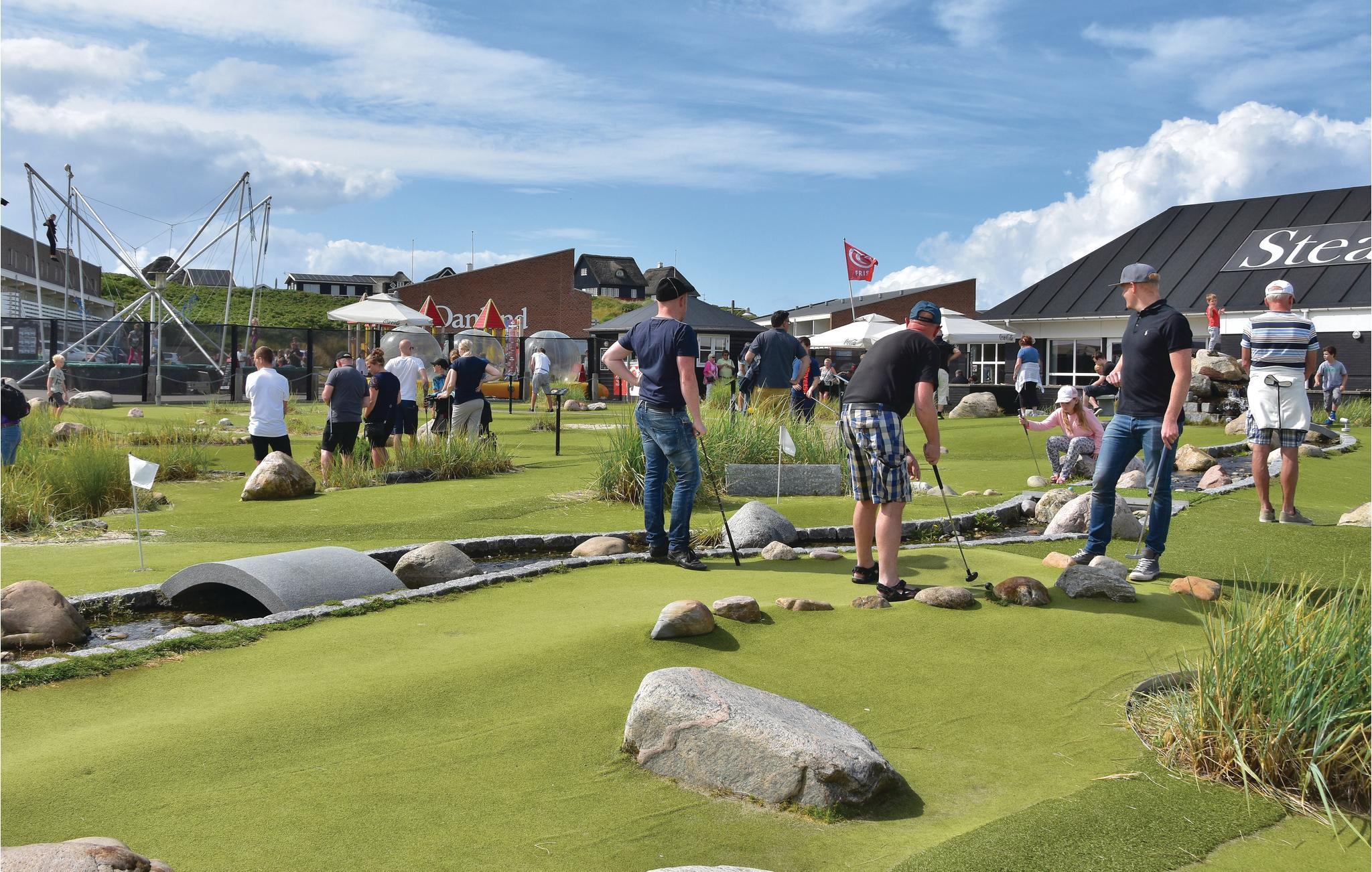 Hold en dejlig ferie i et skønt feriehus bygget i træ, med mange lysindfald fra loftsvinduer, karnapper og mere. I stuen er der et stort vinduesfag ud mod terrassen og haven, ligesom her er en hyggelig overdækket terrasse hvor I kan nyde de lange sommeraftener uden at blive generet af vind og vejr. Husets køkken er i åben forbindelse med stuen, hvor den hyggelige brændeovn står, tænd op i den og hyg jer selvom det bliver køligt. Huset er meget centralt beliggende, og ligger i gåafstand til alle Søndervigs specialbutikker, caféer, restauranter, cykeludlejning, dagligvarebutik mm. Ved Vesterhavet er der ikke blot gode bademuligheder, men også fine chancer for at afprøve sine talenter som lystfisker fra stranden, og uanset vejret bør Vesterhavet opleves. Her er der højt til himlen, frisk luft og en enestående natur, som blot ligger ganske få minutters gang fra huset. Til Ringkøbing er der ca. 10 km, en hyggelig by med mange brostensbelagte gader, gågade med butikker, en hyggelig havn hvor I bl.a. kan bestille de mest fantastiske fiskeretter og nyde maden i det autentiske fiskermiljø. Indenfor ca. en times kørsel ligger Legoland, og I kan også tage en tur i Givskud Zoo og opleve de store, omponerende dyr på nærmeste hold.