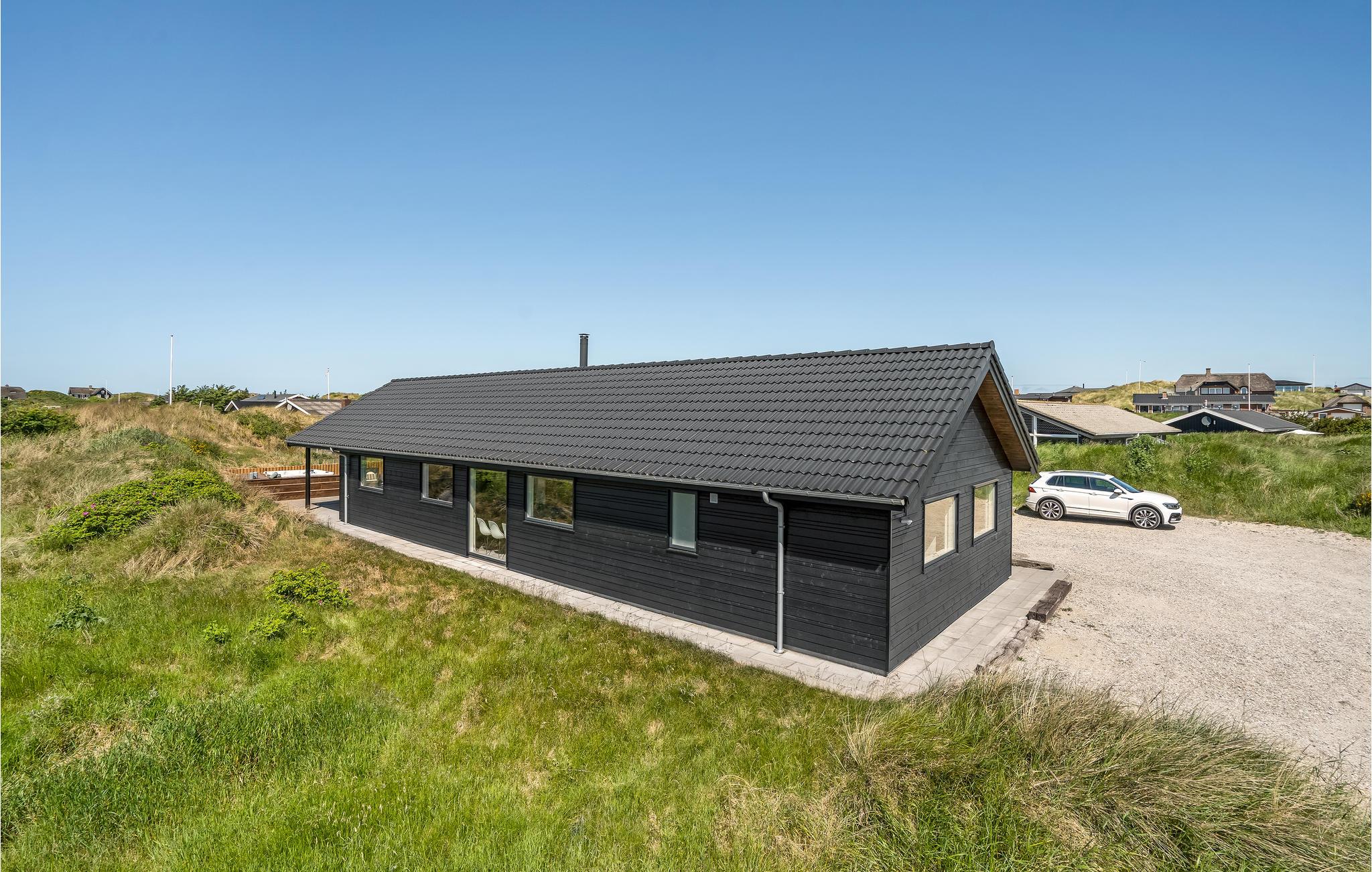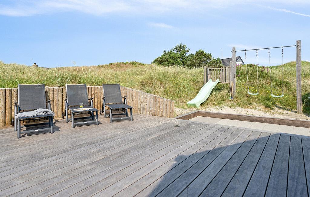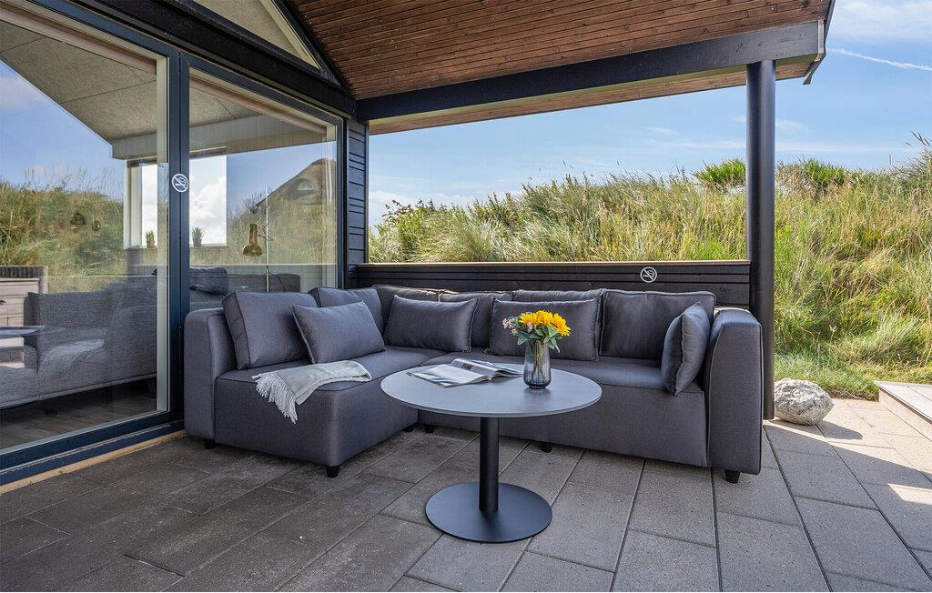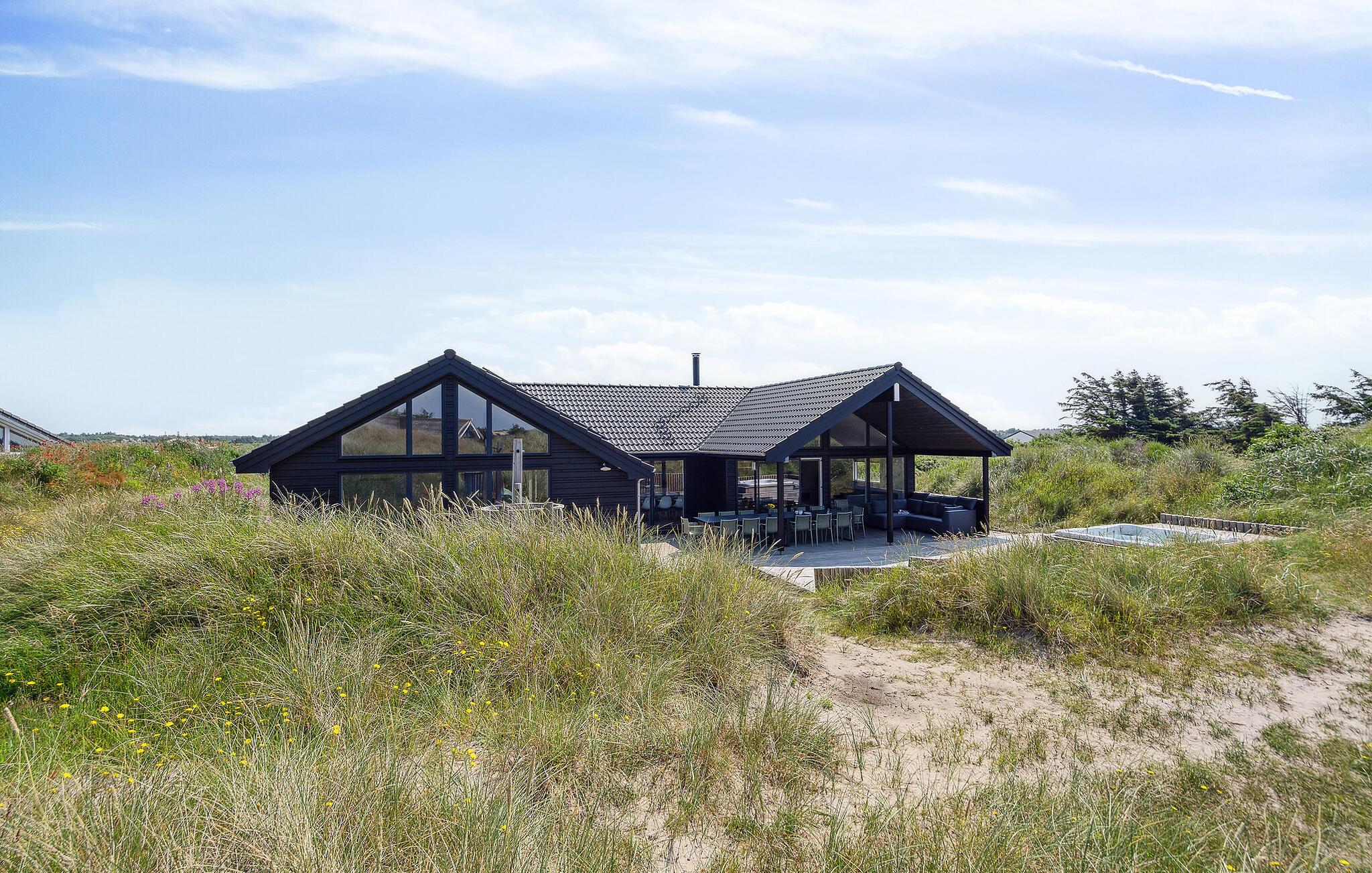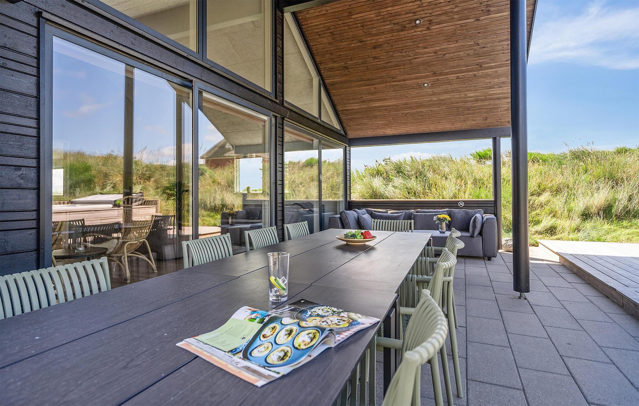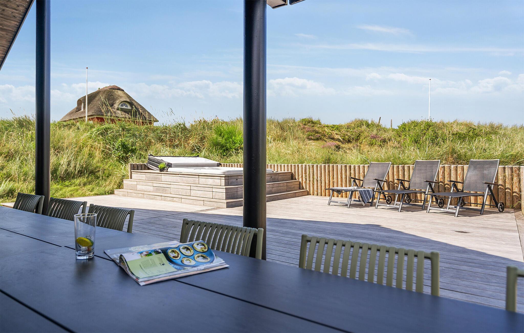 Den danske sommer kan nydes på den delvist overdækkede terrasse, mens børnene gynger og leger i sandkassen. Den udendørs standvandsspa har udsigt til klitterne, så her foregår afslapningen ud til en fantastisk kulisse.