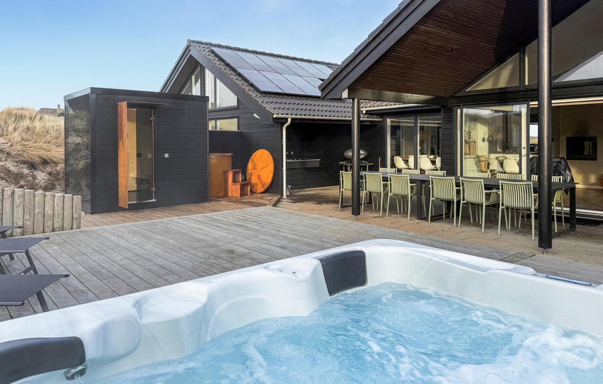 Luksuriøst poolhus nær Søndervig med mange aktiviteter, sauna og udendørs spa for en uforglemmelig ferie.