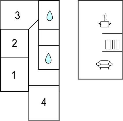 Badeværelse (nr. 1) - WC. Varmt og koldt vand. Bruser