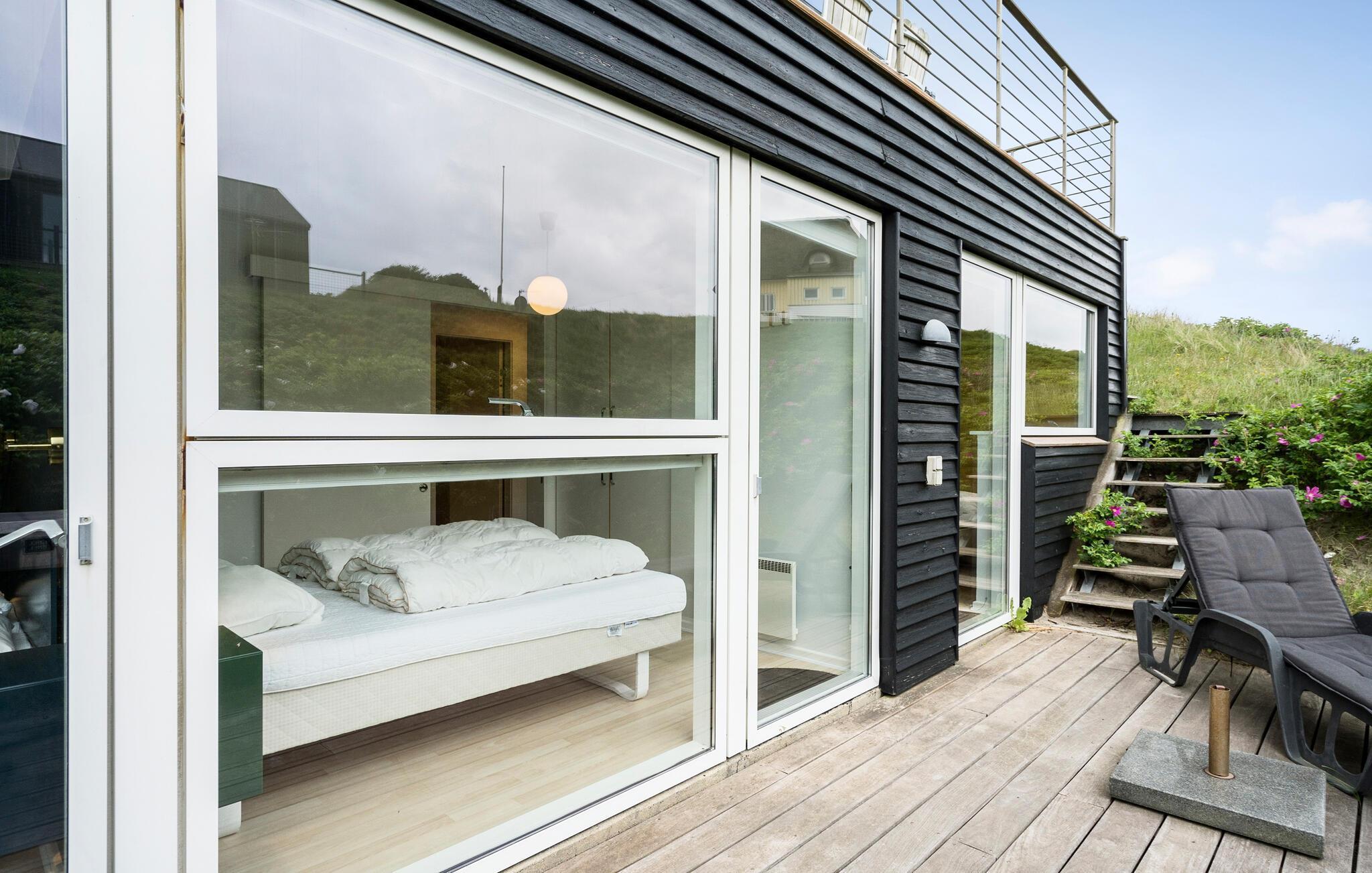 Velkommen til dette arkitekttegnede hus, der ligger få minutters gang fra Vesterhavet, og hvor I får godt med plads og komfort over to etager til en ferie med den udvidede familie. I bor i fredelige omgivelser på en ugeneret grund i klitterne, og indretningen fremtræder virkelig stilsikkert og elegant over hele linjen. Dagslyset strømmer ind gennem den sydvestvendte glasfacade, der samtidig giver en vidunderlig udsigt til det grønne. Med gode rumløsninger, komfortable møbler og et fuldt udstyret køkken får I her alt, I behøver for at kunne slappe af og bruge god tid med hinanden. Hvis vejret bider lidt fra sig, kan I fyre op i brændeovnen, der giver varme og et knitrende lydtapet til en hyggelig filmaften. Og hvis I skal gøre det ekstra godt for jer selv, kan I forkæle jer selv med en aftentur i saunaen, mens I lægger planer for de kommende dage.