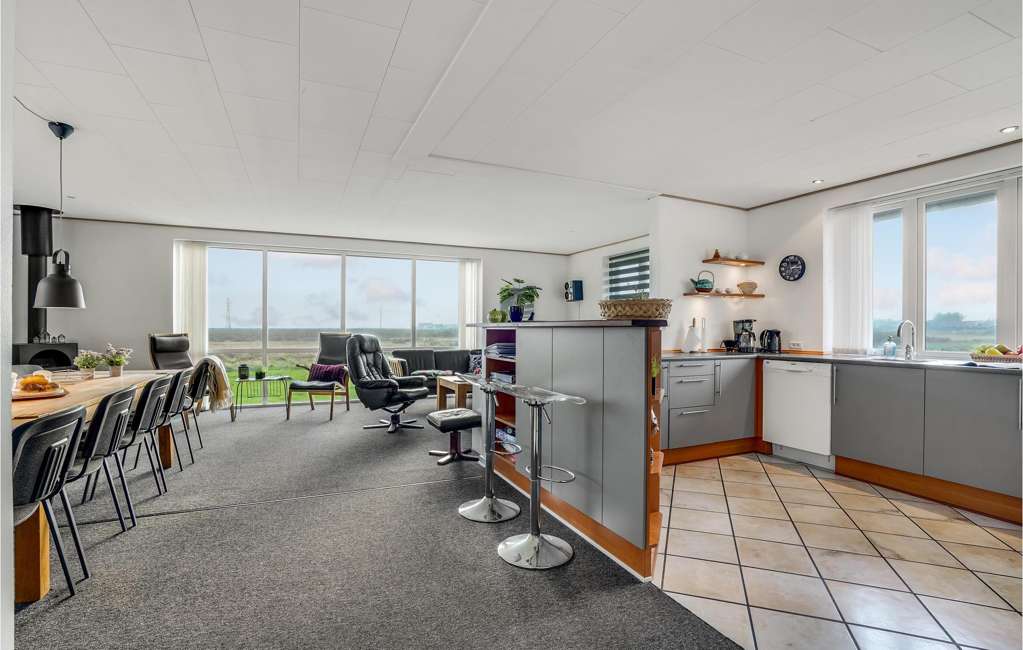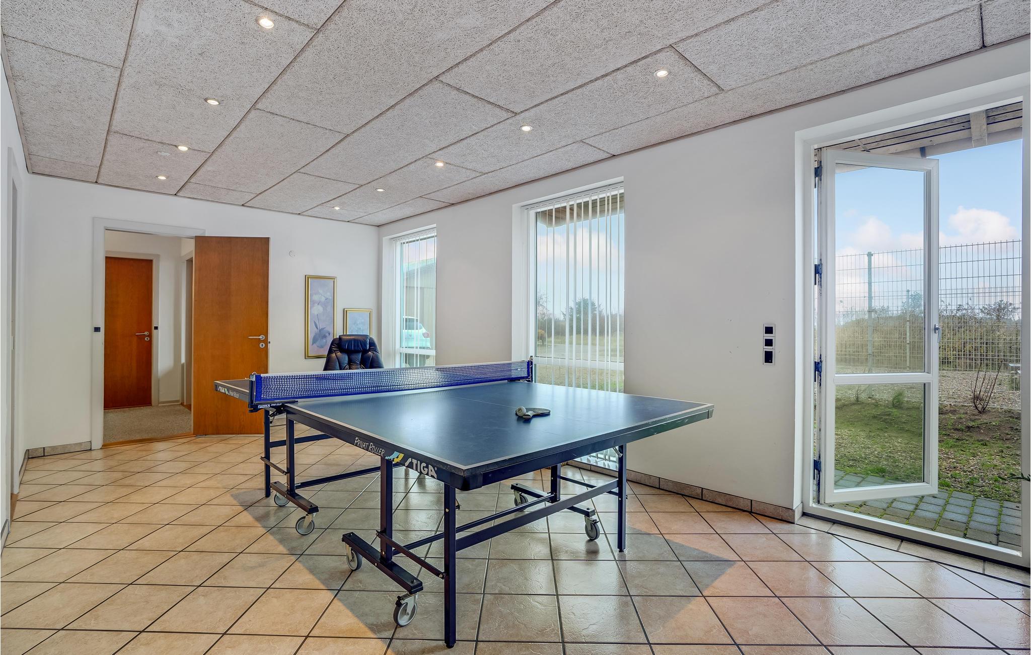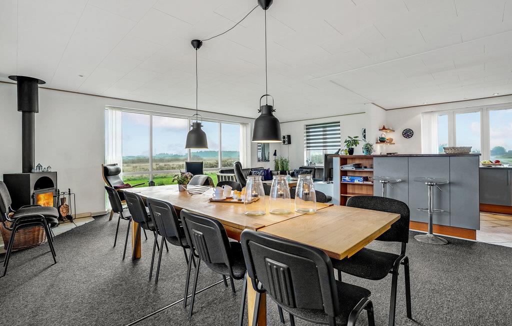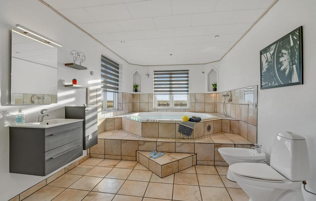 I rolige omgivelser nær Ringkøbing Fjord ligger dette store og utroligt dejlige feriehus på en meget stor naturgrund. Kvalitet og rummelighed kendetegner huset, der byder på en rigtig god indretning. Det store badeværelse er udstyret med et syv personers spabad og en stor sauna. Derudover kan nævnes det store aktivitetsrum med bordtennisbord og en lille hyggekrog. I hele huset er der lagt stor vægt på den funktionelle del kombineret med mange spændende detaljer. Som supplerende varmekilde kan I benytte brændeovnen, der er med til at skabe en hyggelig atmosfære indendørs - ikke mindst når dagene er korte og kolde. På de varme sommerdage med lange lyse aftener vil I uden tvivl foretrække den store terrasse som samlingssted.