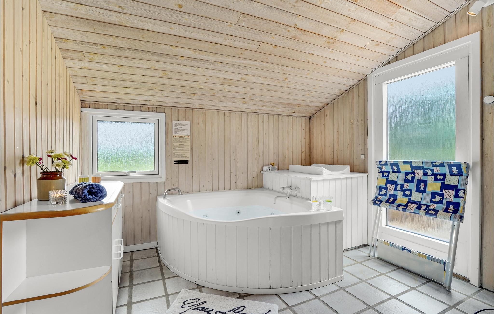 Træd ind i det lyse og åbne indendørsområde, og lad jer begejstre af den varme træstil og de høje lofter. Slap af i sofaerne, og tilbring hyggelige aftener ved brændeovnen. Benyt den åbne spiseafdeling til lange måltider. Her er der også plads til en større gruppe. Det veludstyrede køkken byder på god arbejdsplads og har direkte adgang til en af terrasserne. Glæd jer til aktivitetsområdet med billardbord, en hyggelig siddeplads og tv, og forkæl jer selv med wellness i saunaen og spabadet.