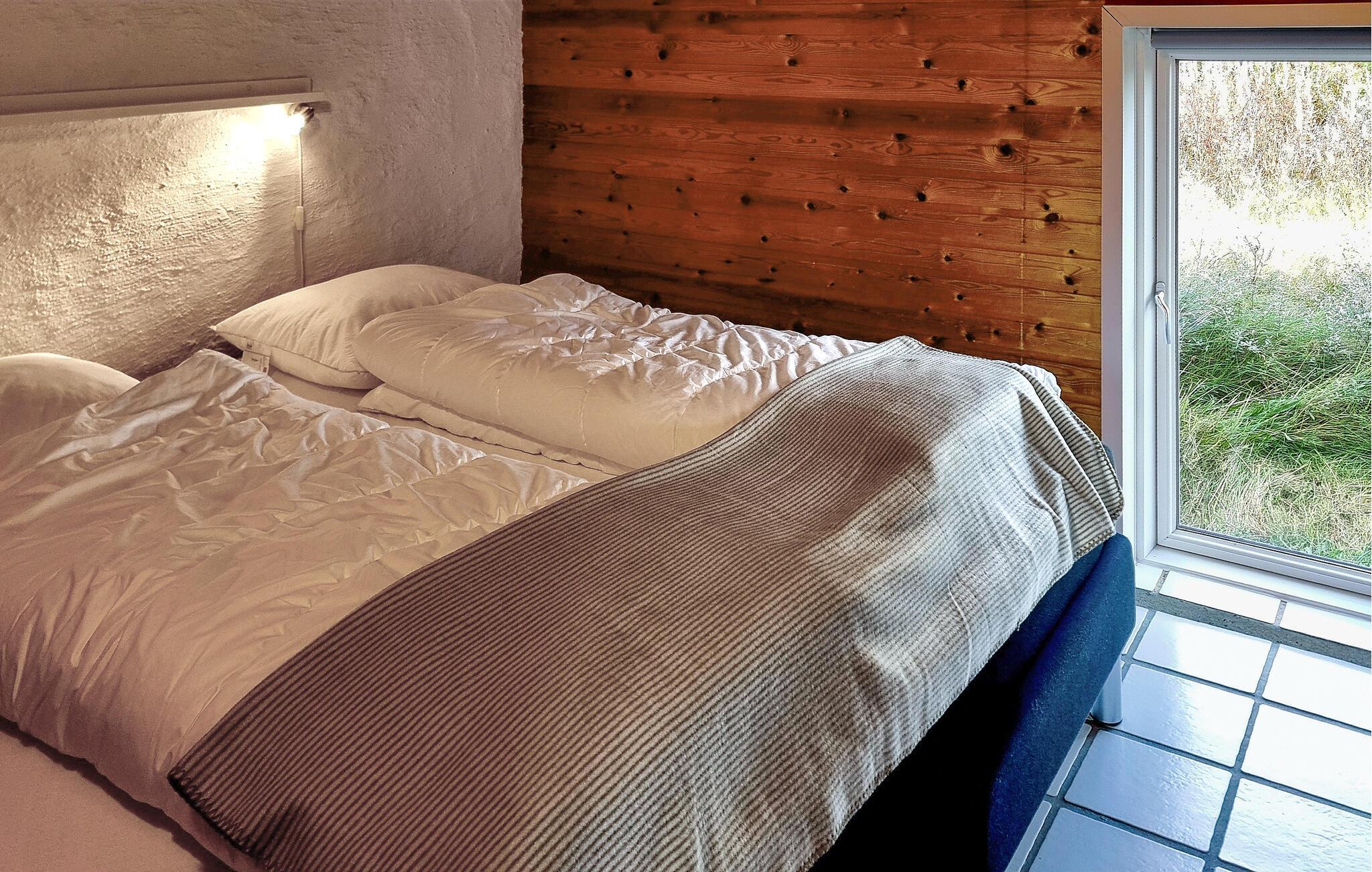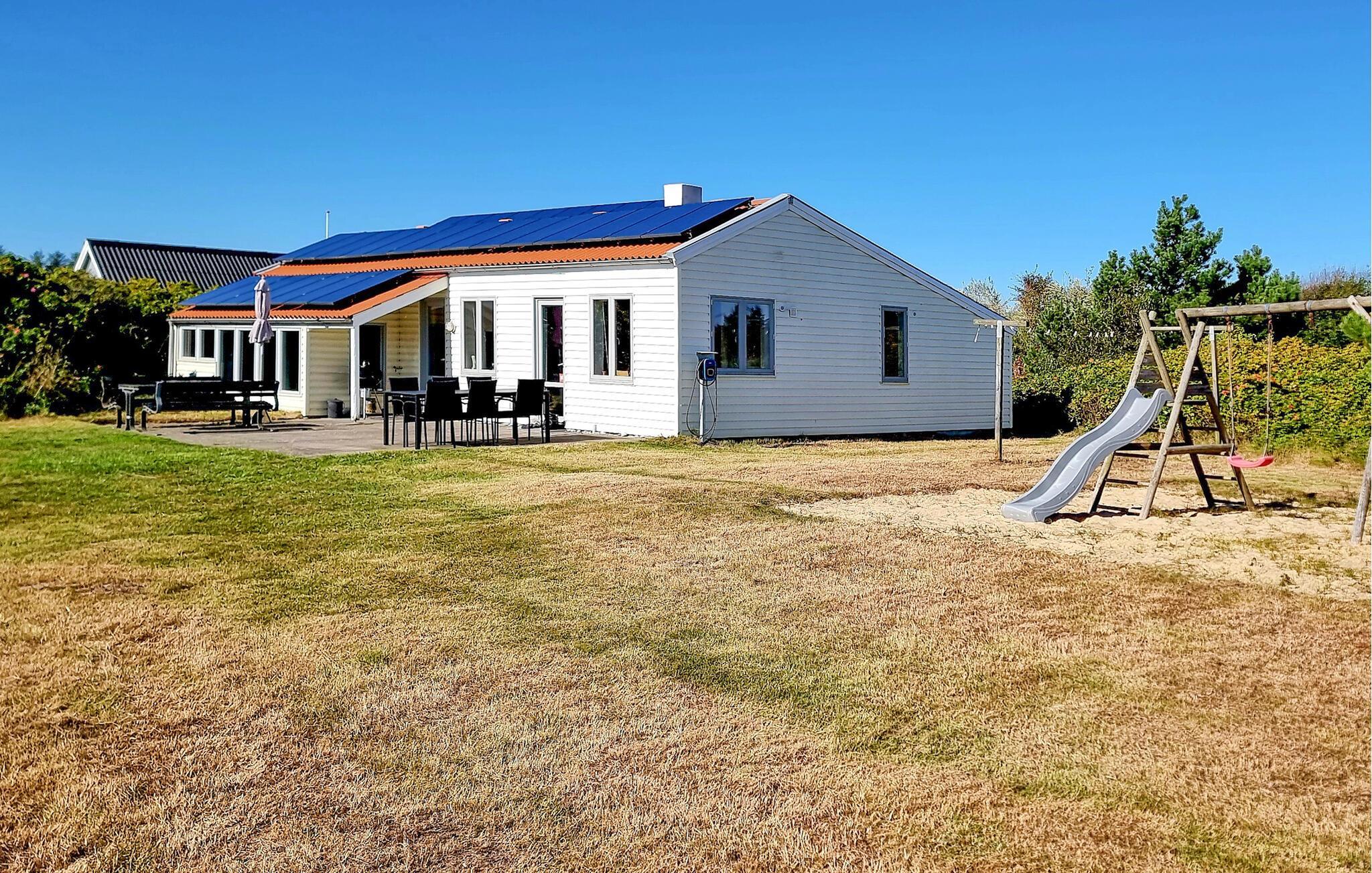 I åben natur, på en dejlig naturgrund ikke langt fra Vesterhavet ligger dette feriehus af træ med en stor sydvendt terrasse. Køkkenet med blandt andet opvaskemaskine, ligger i åben forbindelse med stuen, der har opvarmede klinkegulve. I begge de to flise-badeværelser er der ligeledes gulvvarme, og i det ene er der endda et badekar. Husets mest attraktive facilitet er uden tvivl poolrummet med den 15 m2 store swimmingpool, det fire pers. spabad og saunaen, hvor I kan slappe af efter en forfriskende vandretur langs Vesterhavet. De hyggelige aftener kan I tilbringe foran brændeovnen i opholdsstuen med god musik eller en film. Et attraktivt hus, der egner sig til ferieophold året rundt.