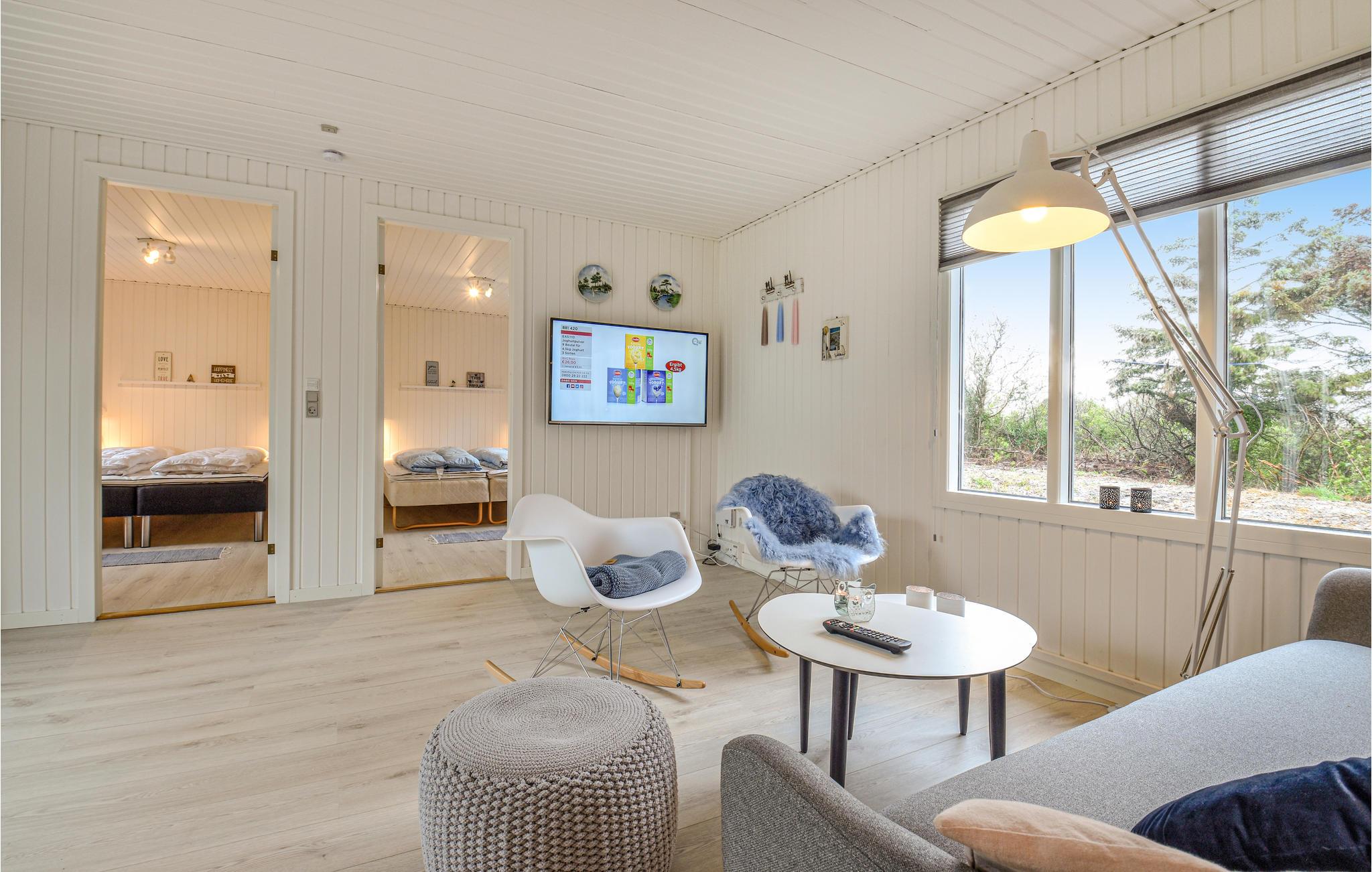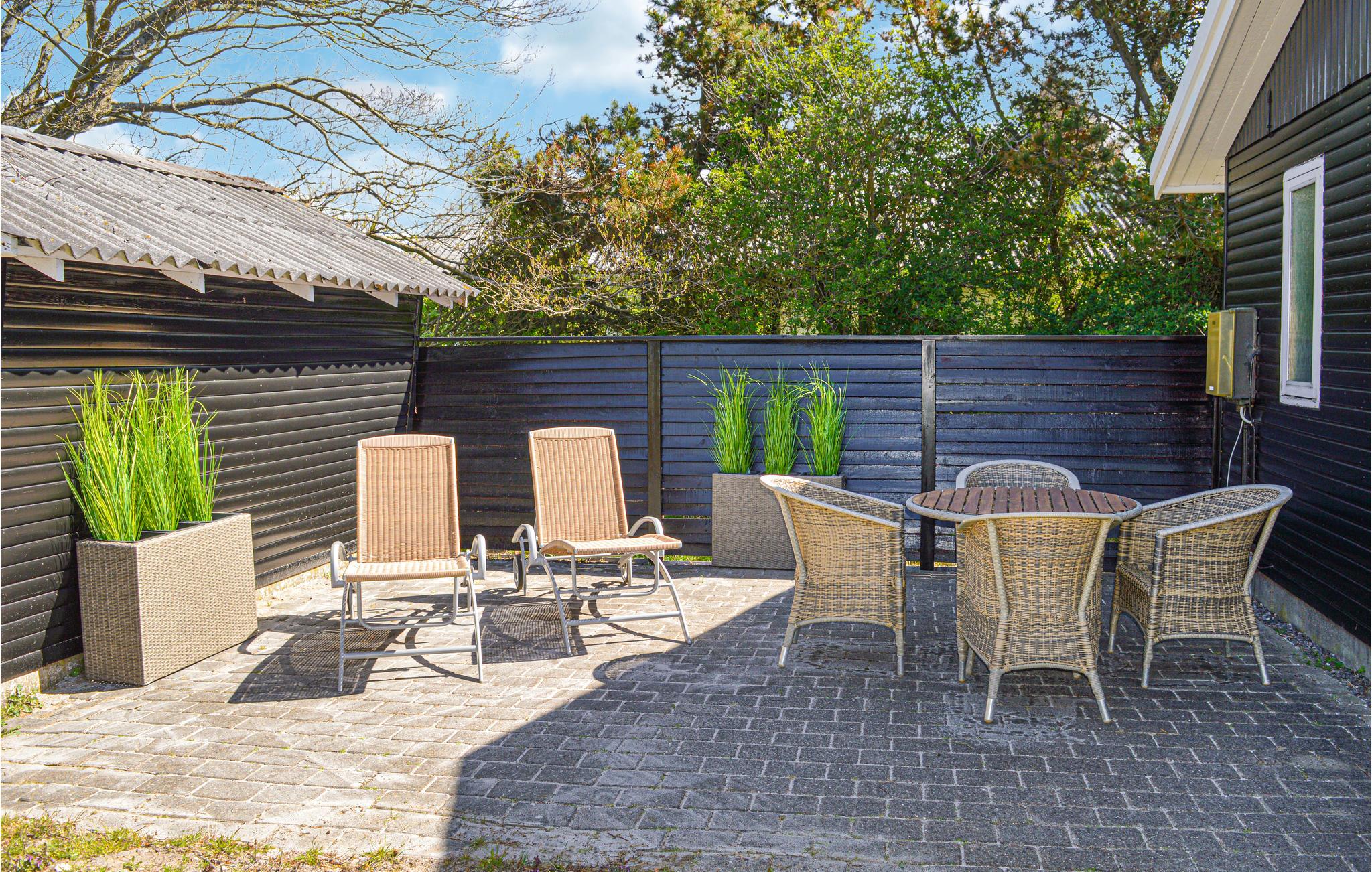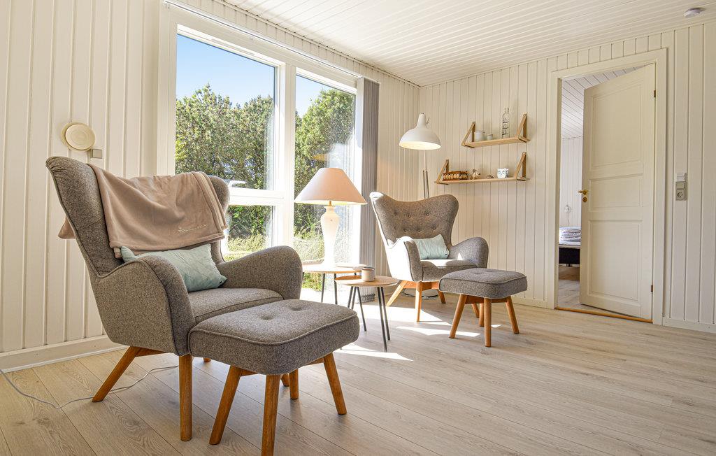 I det meget populære ferieområde ved Søndervig ligger dette fine og meget moderne indrettede sommerhus. Huset er gennemrenoveret i 2019 og fremstår lyst og venligt med store vinduespartier, der giver et fantastisk lysindfald i hele huset. Det store køkken ligger i åben forbindelse med stuen, og fra stuen er der adgang til husets to soveværelser, hver med en dobbeltseng. Badeværelset er indrettet med bruser samt vaskemaskine og tørretumbler. Der forefindes varmepumpe som supplerende varmekilde samt gulvvarme i køkken/alrummet og badeværelset. Ved huset ligger en dejlig, læfuld og overdækket, lille terrasse, samt en større åben terrasse, der liigger helt ugenert bagved huset.
