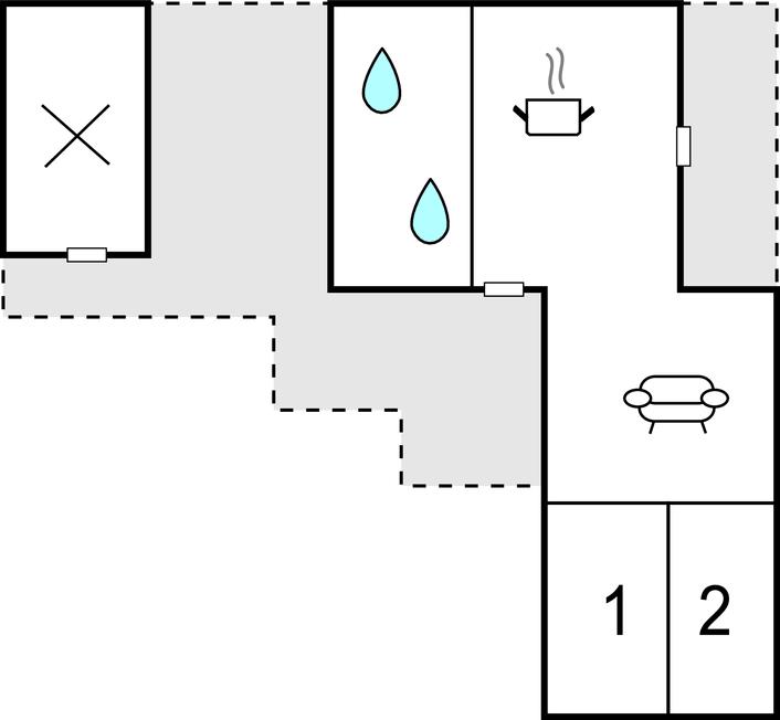Badeværelse 4m2 (nr. 1) - WC. Varmt og koldt vand. Bruser