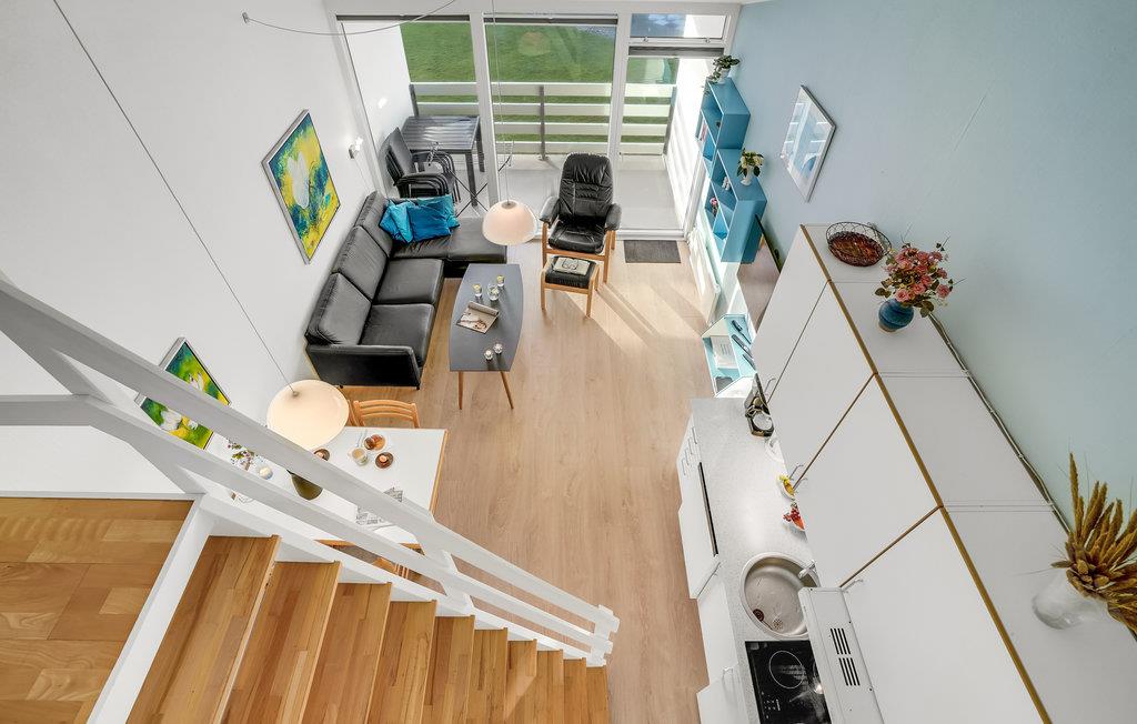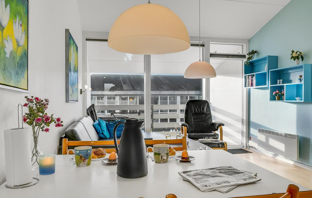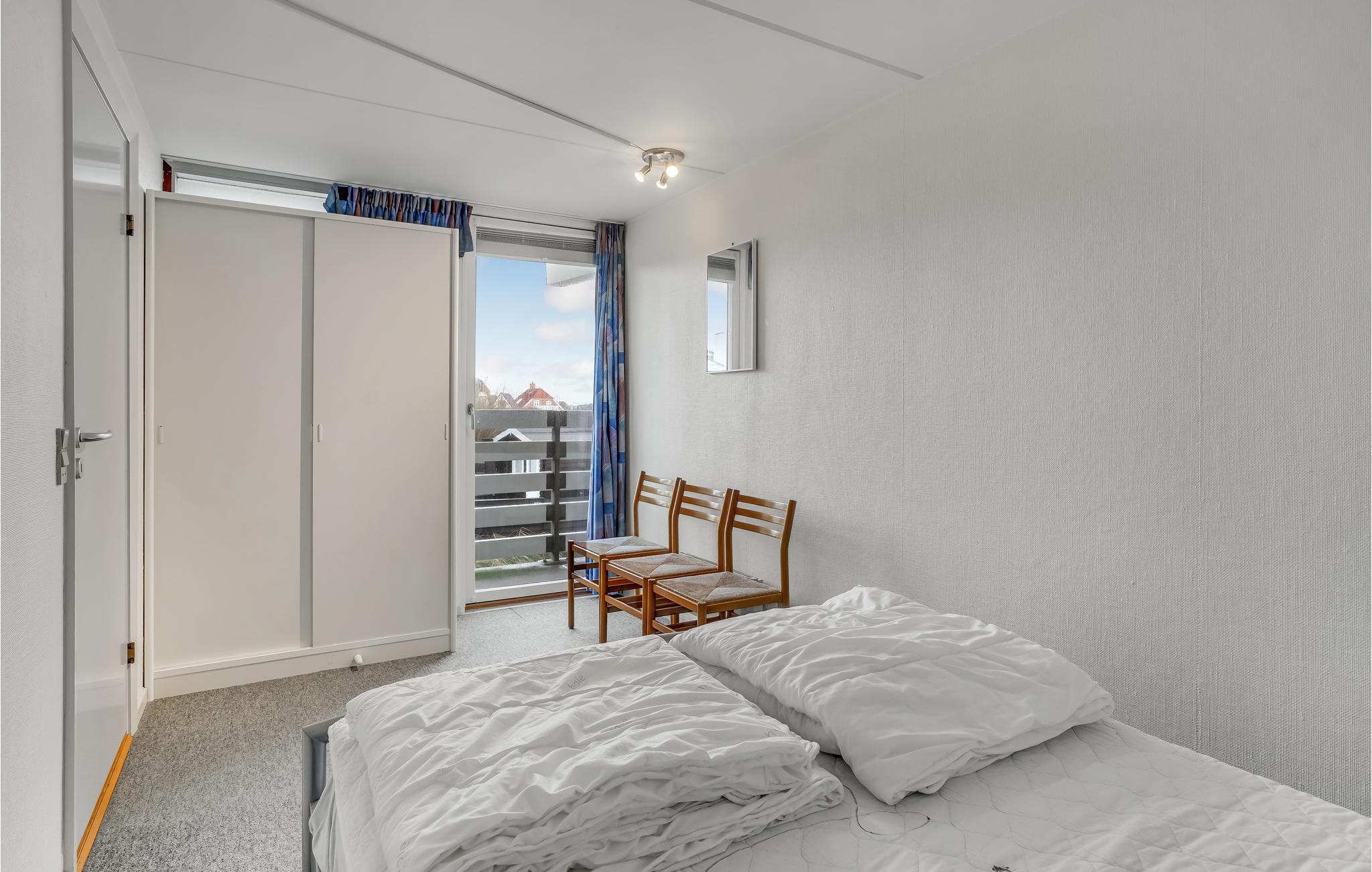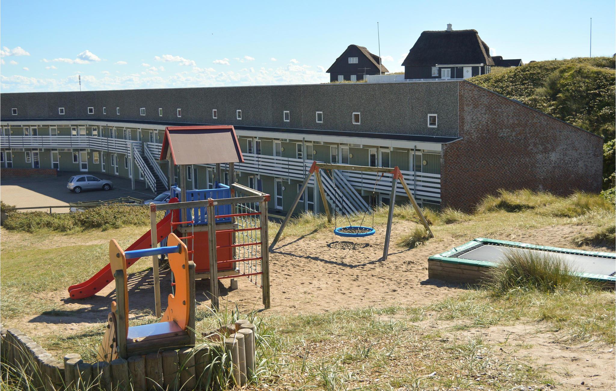 Når I lejer denne lejlighed, kan I bare lade bilen stå under hele ferien, da I kan nå alt til fods. Både det skønne Vesterhav, I kan gå over og købe rundstykker samt shoppe i de mange forskellige butikker. Lejligheden er rigtig godt indrettet med to soveværelser, badeværelse med brus, et funktionelt køkken der ligger i åben forbindelse med stuen, en dejlig overdækket altan og et stort åbent rum/hems på førstesalen. Venligst vær opmærksom på at der er trapper op til lejligheden. Der er en stor legeplads, fælles grill og bålplads tilknyttet lejligheden.