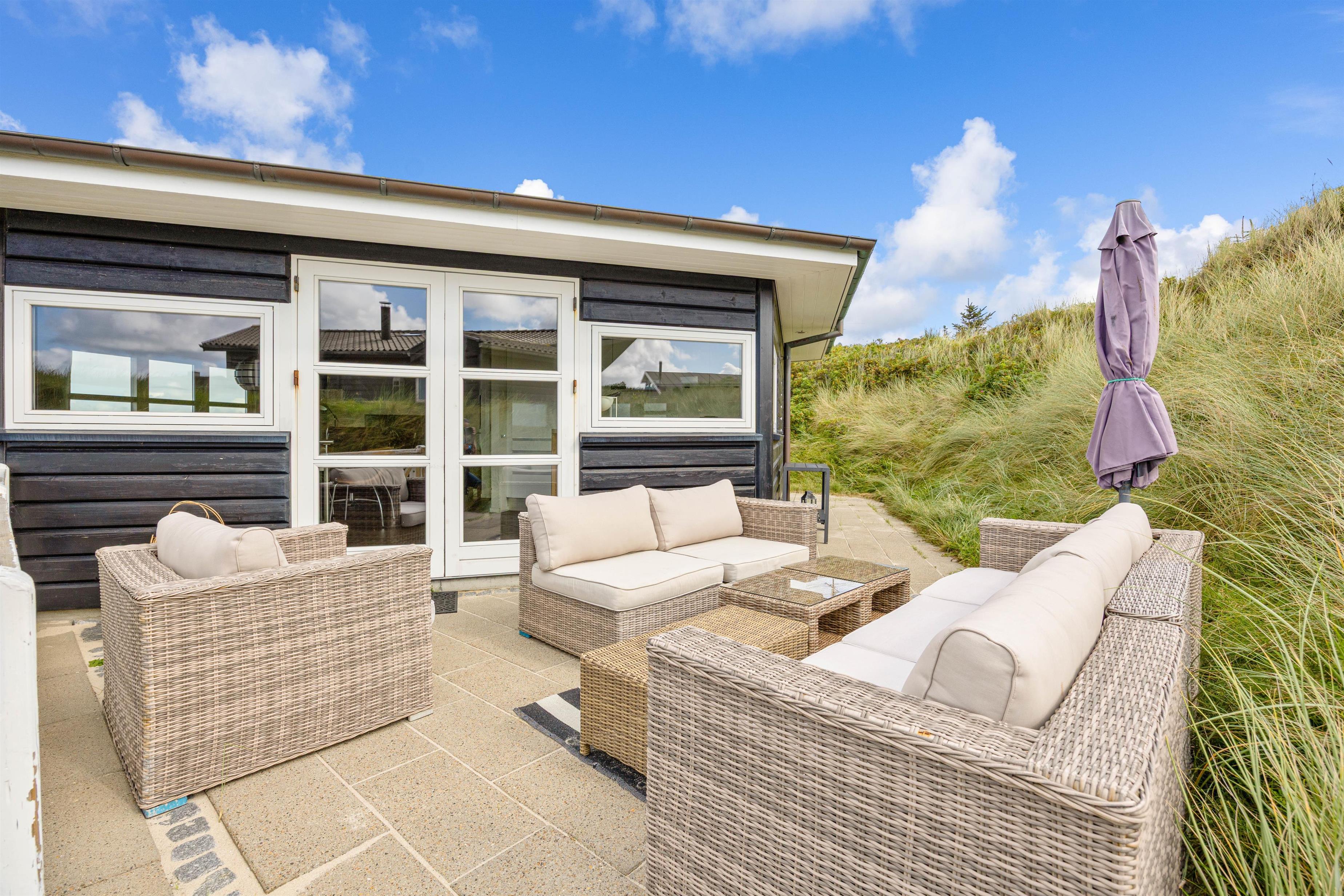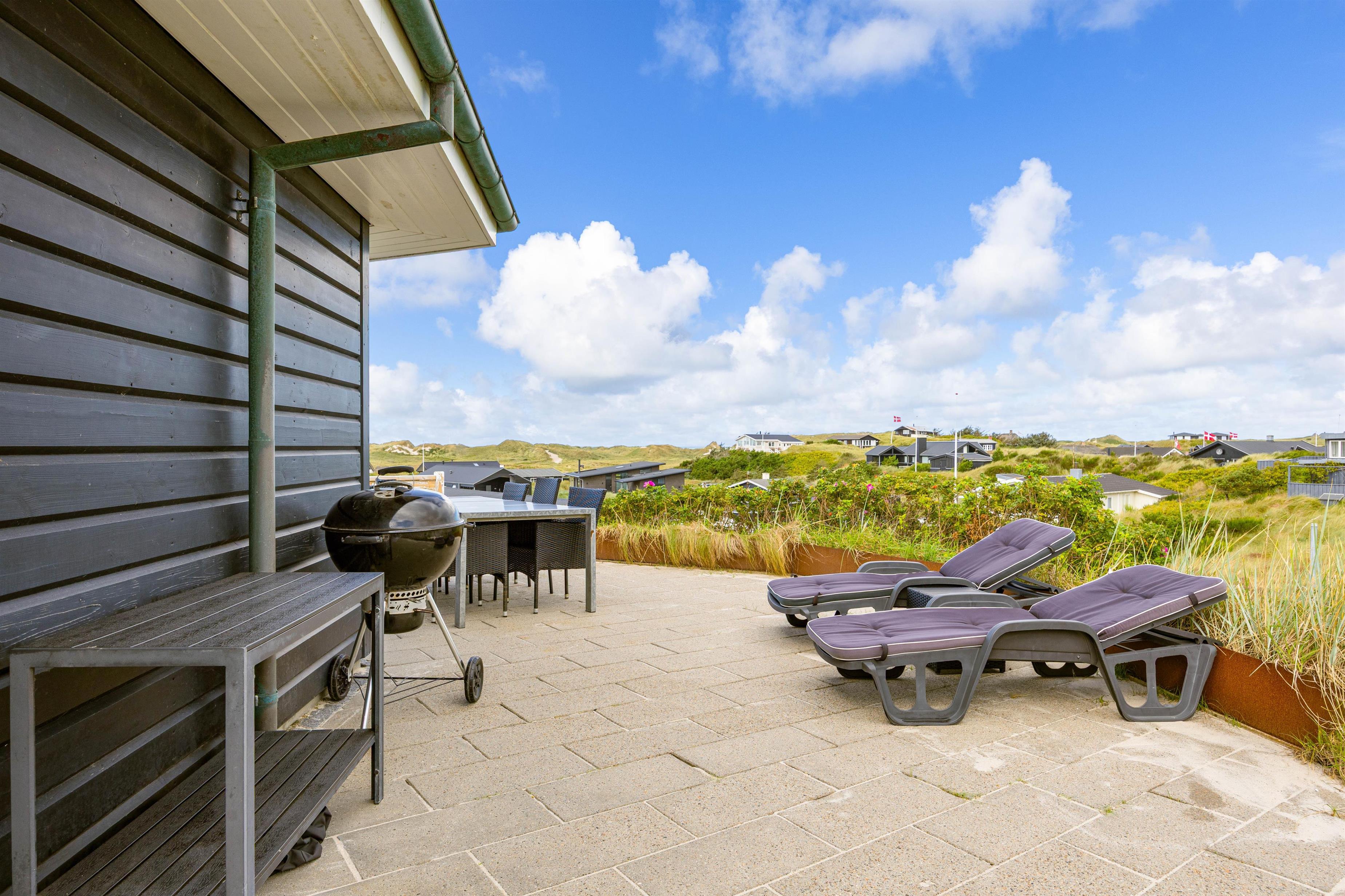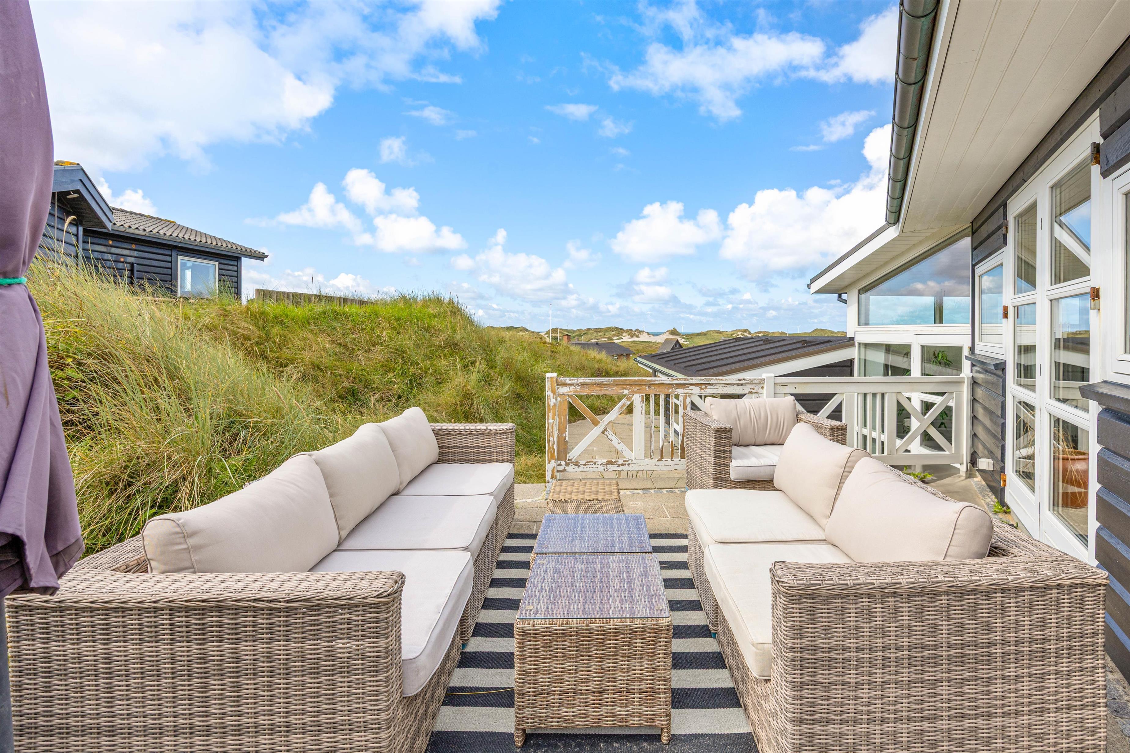 Fra sommerhusets terrasser er der en helt unik udsigt over det bølgende klitlandskab. Her kan I nyde solens gang fra morgen til aften. De mange skønne udeoaser rundt om huset fungerer som ekstra rum til huset på varme sommerdage. Her kan I nyde lyset, solnedgangen over Vesterhavet og den skønne natur. I kan også benytte jer af husets grill til at forberede aftensmaden, som også kan nydes på terrassen. I sommerhuset er der bare generelt kælet for alle de små detaljer og ikke mindst også enkeltheden.