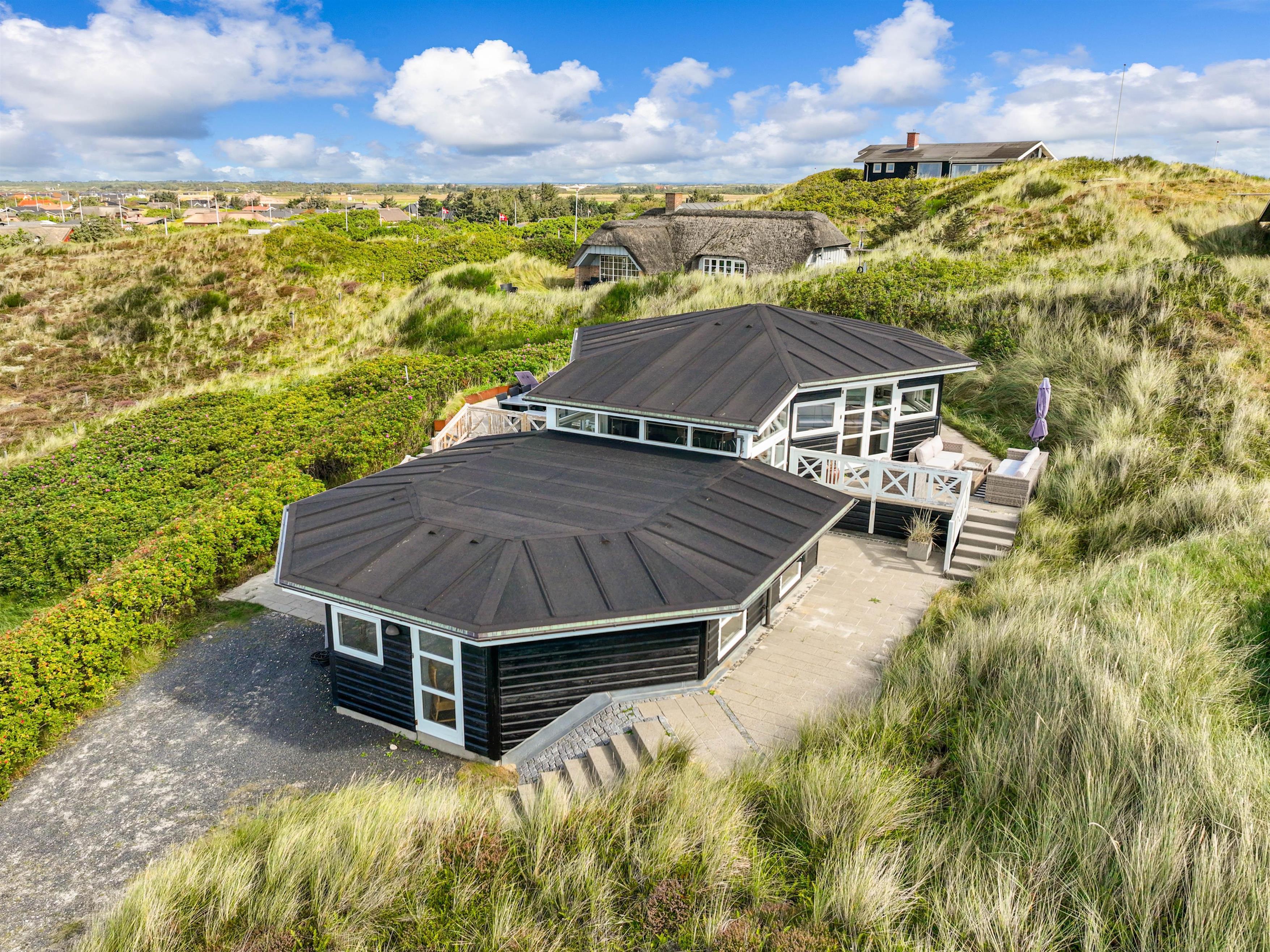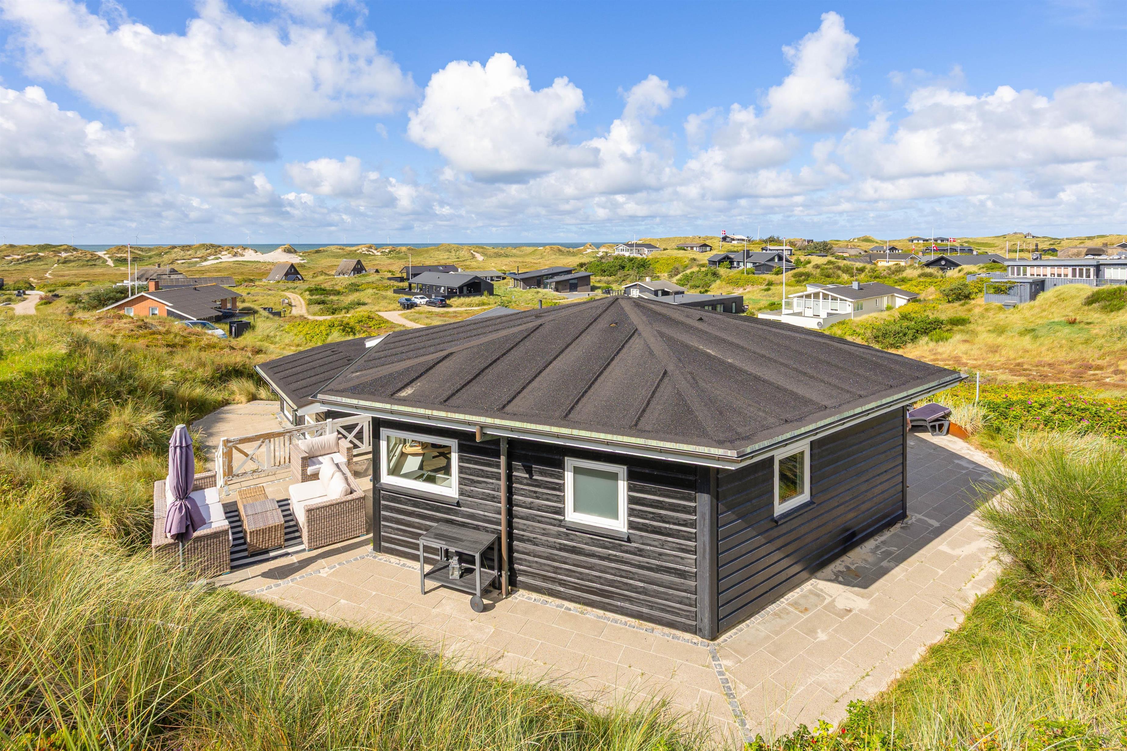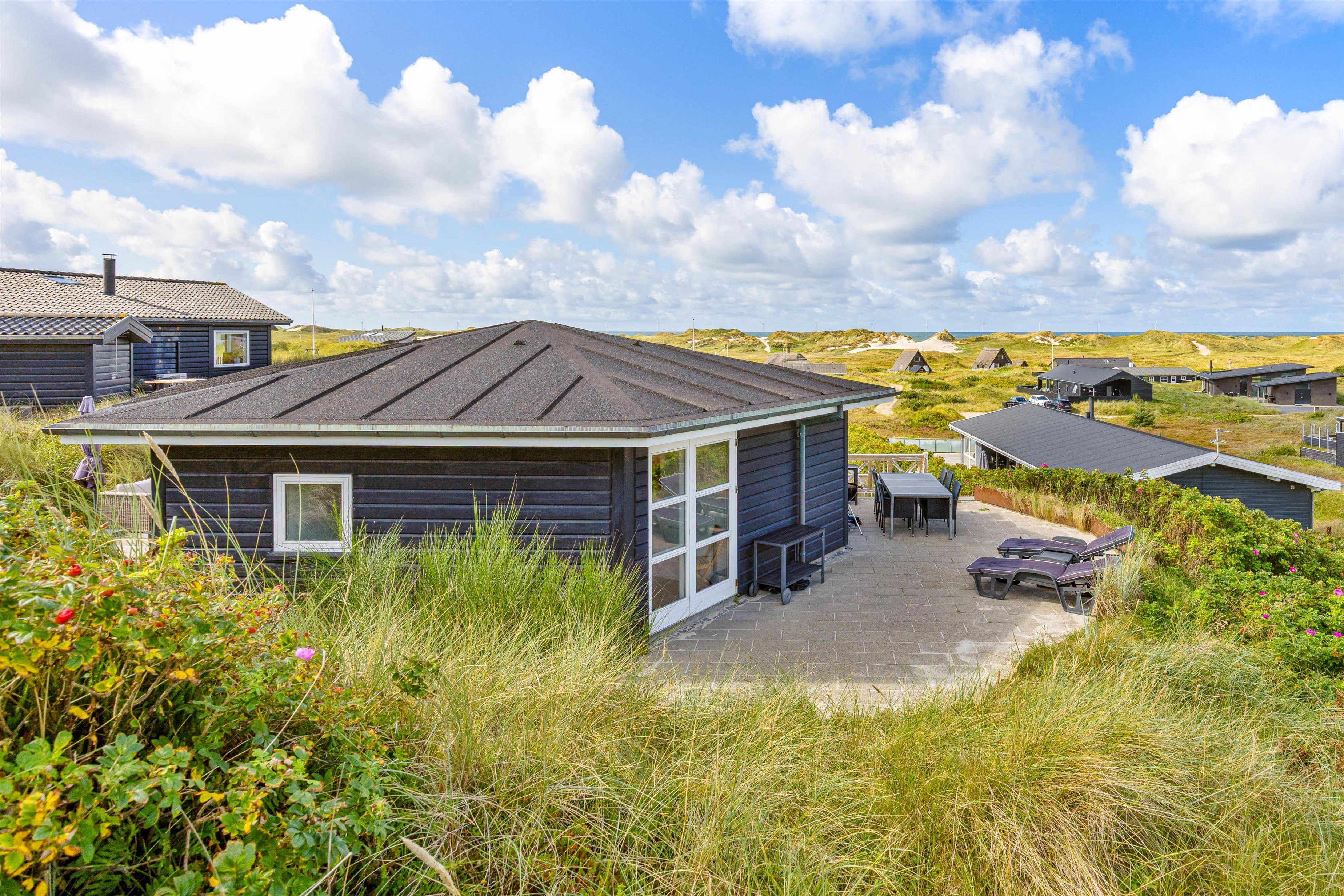 Fra sommerhusets terrasser er der en helt unik udsigt over det bølgende klitlandskab. Her kan I nyde solens gang fra morgen til aften. De mange skønne udeoaser rundt om huset fungerer som ekstra rum til huset på varme sommerdage. Her kan I nyde lyset, solnedgangen over Vesterhavet og den skønne natur. I kan også benytte jer af husets grill til at forberede aftensmaden, som også kan nydes på terrassen. I sommerhuset er der bare generelt kælet for alle de små detaljer og ikke mindst også enkeltheden.