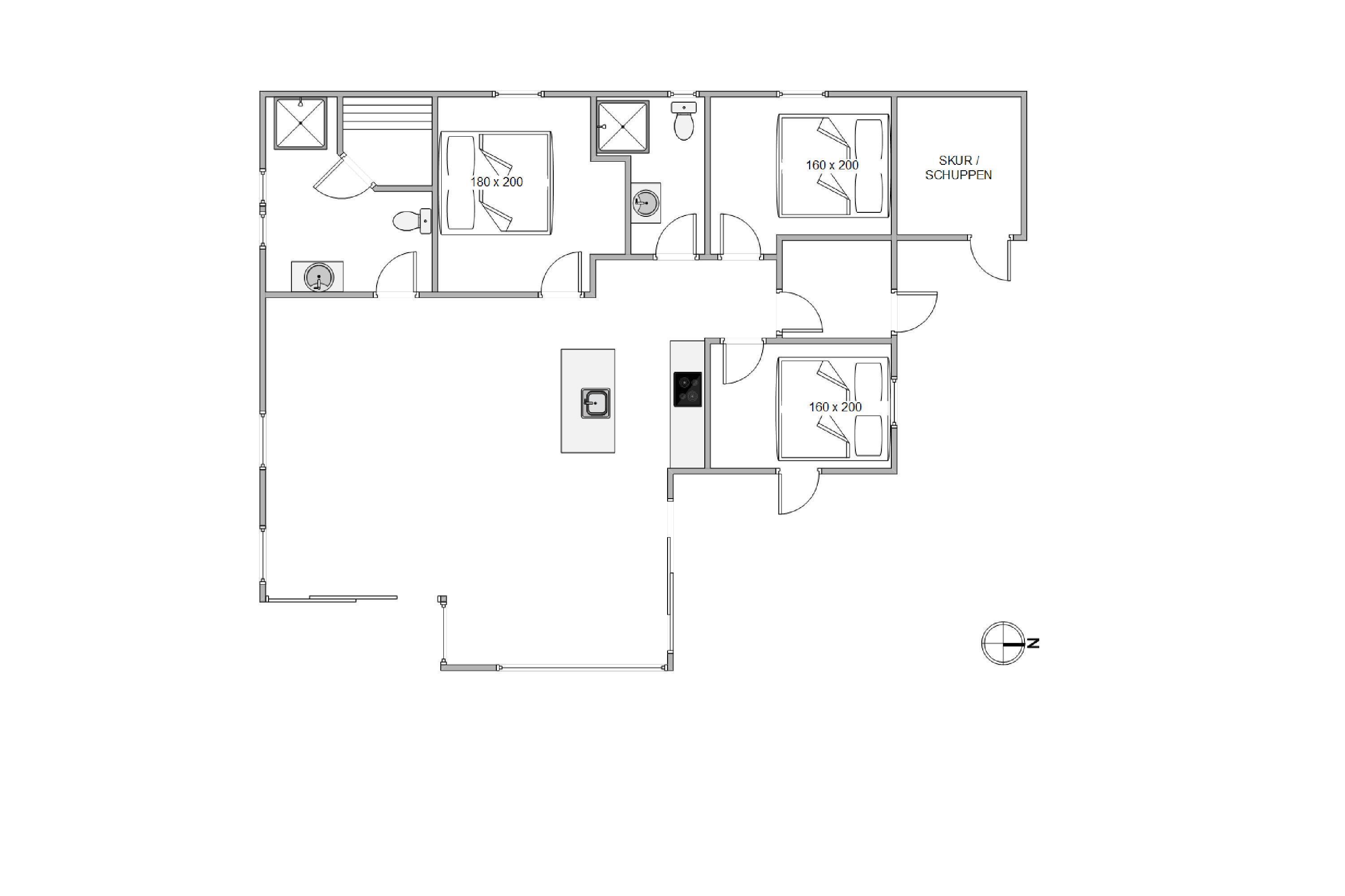 I det velindrettede ferierum er stue, køkken og spiseafdeling slået sammen til ét stort fællesrum, hvor rammerne er sat for en masse nye ferieminder med hele familien. Huset er rummeligt hele vejen igennem, den smagfulde indretning skaber en god ferieatmosfære og de store vinduer lukker solens lys indenfor. Det skønne troldtekts loft der går helt til kip, er også en fantastisk detalje ved dette hus, da det også skaber en god rummelig rumfornemmelse, hvor I virkelig kan slappe af.