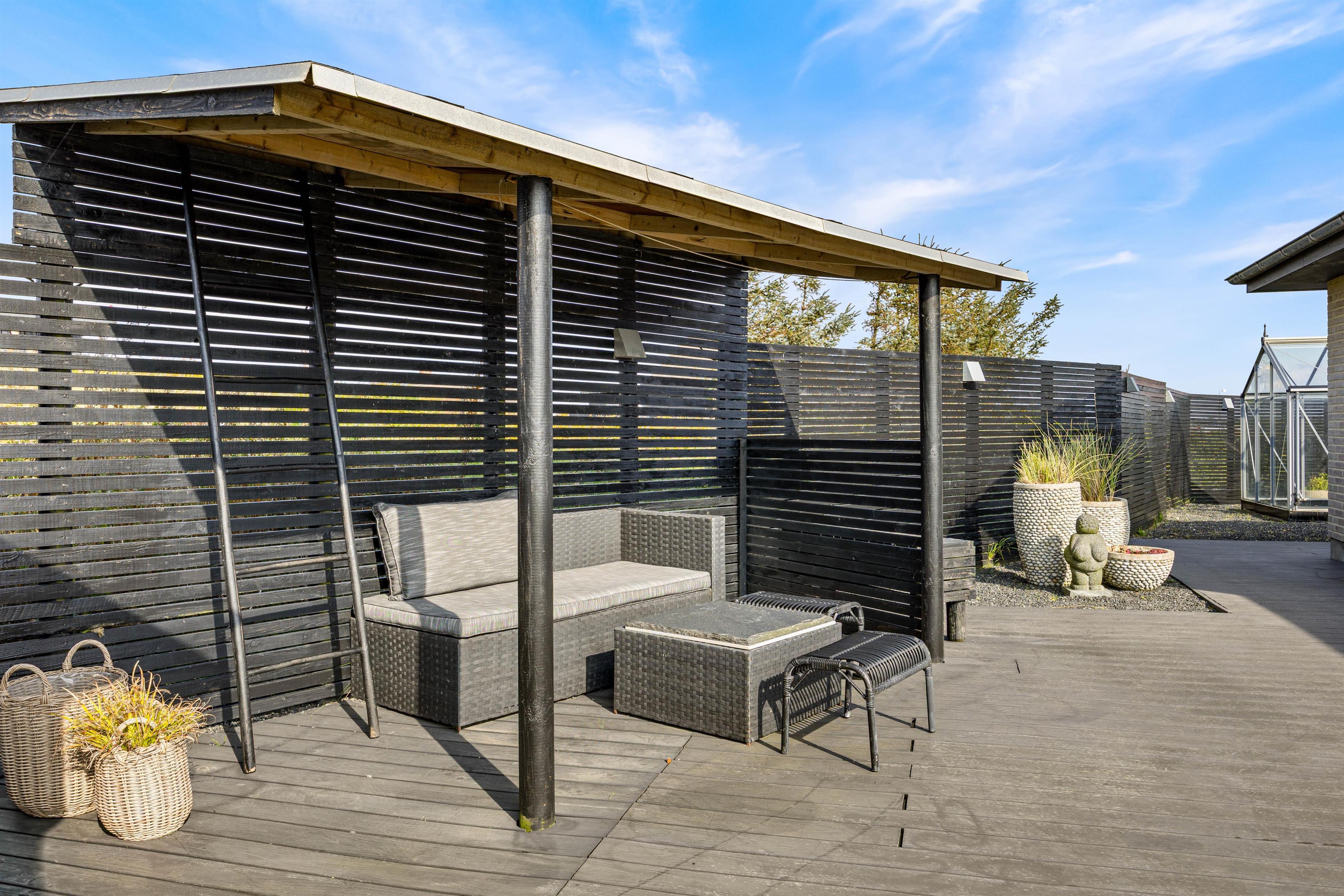 Udendørs kan I nyde den afskærmede og overdækkede terrasse, som er perfekt på de lune sommerdage. Med en plænegrund på 1373m2 er der rigeligt med plads til både afslapning og aktivitet. Havemøbler og grill står klar til jeres rådighed, så I kan tilberede og nyde jeres måltider i det fri og nyde den friske luft.