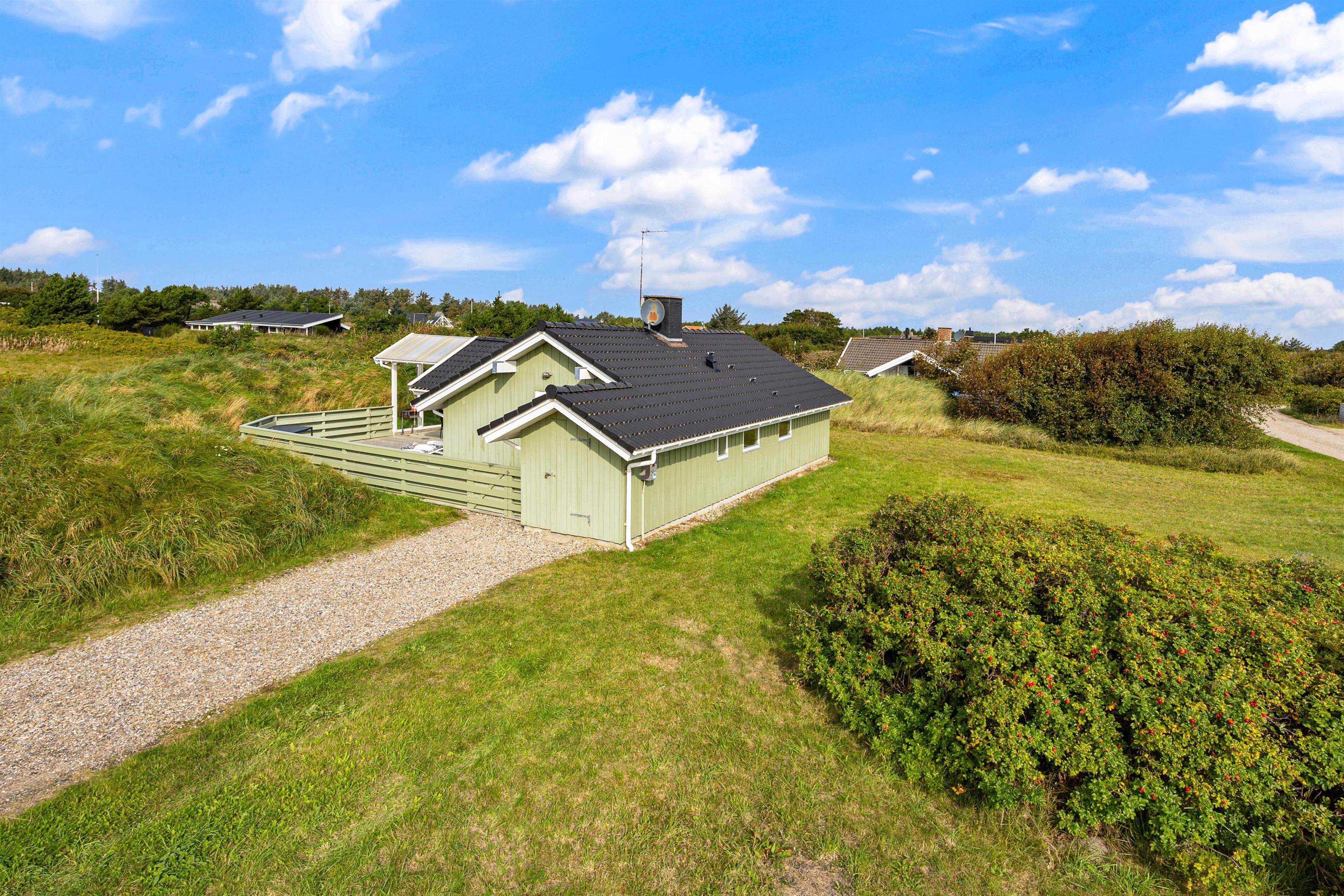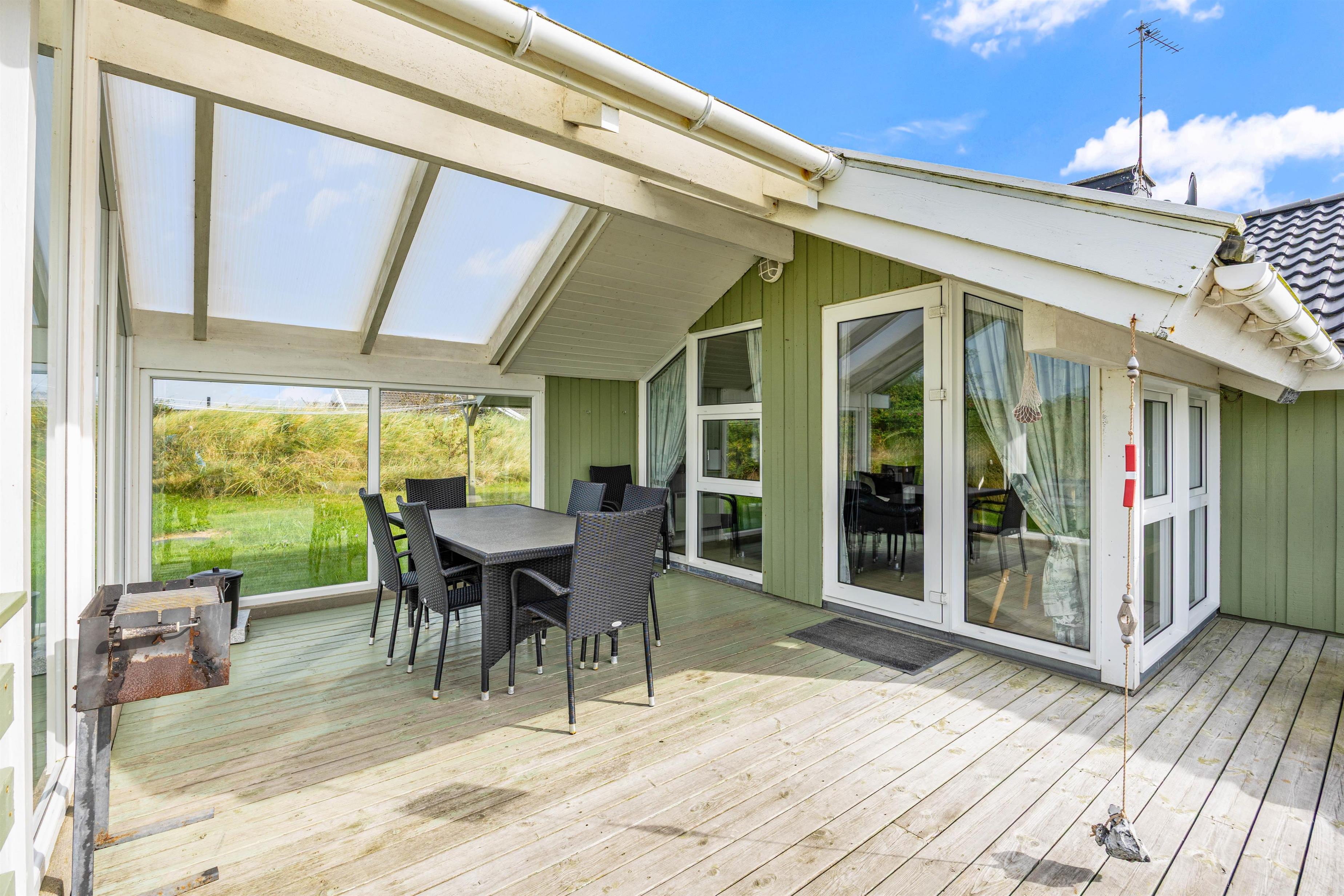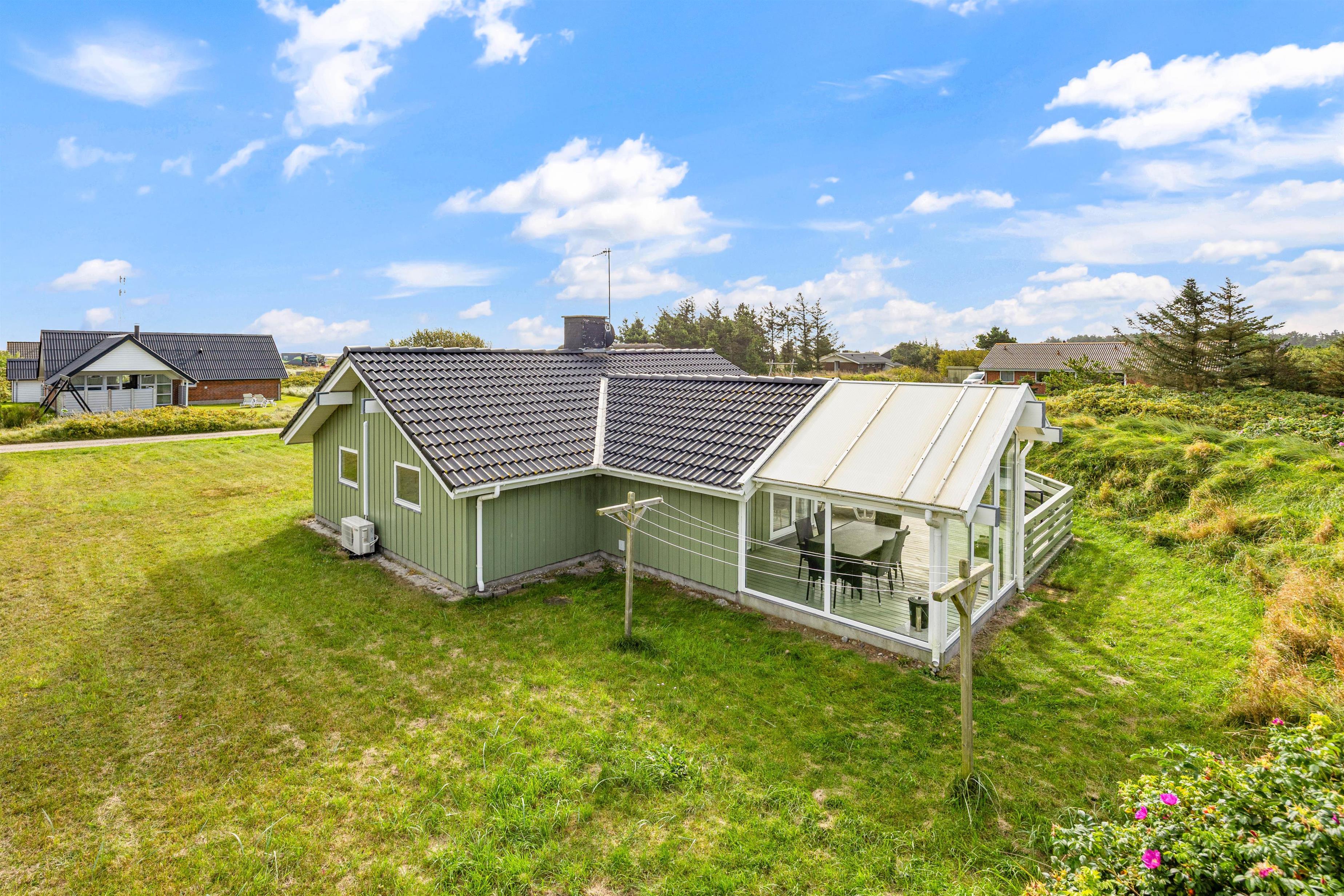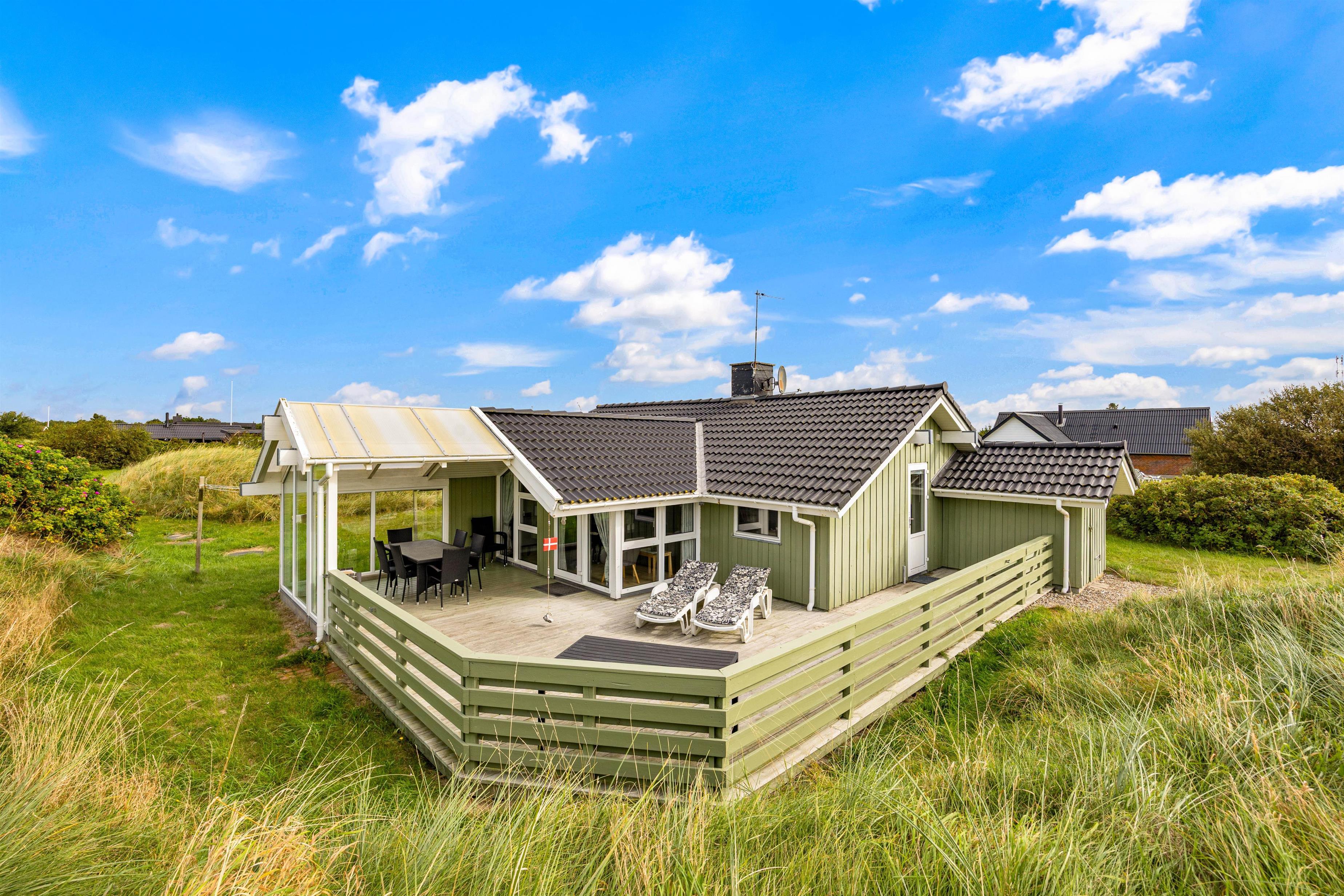 Sommerhuset byder på en lukket terrasse, hvor I kan nyde jeres måltider i det fri takket være grillen og de tilhørende havemøbler. Den overdækkede terrasse er perfekt til de lidt køligere aftener hvor man bare ikke har lyst til at være indenfor. Her kan man virkelig nyde solen og den friske luft fra Vesterhavet. Beliggende blot 900 meter fra havet, er der rig mulighed for at tage en forfriskende dukkert eller gå en tur langs stranden. På den naturskønne grund kan I også nyde stilheden eller lade børnene lege frit og sikkert.