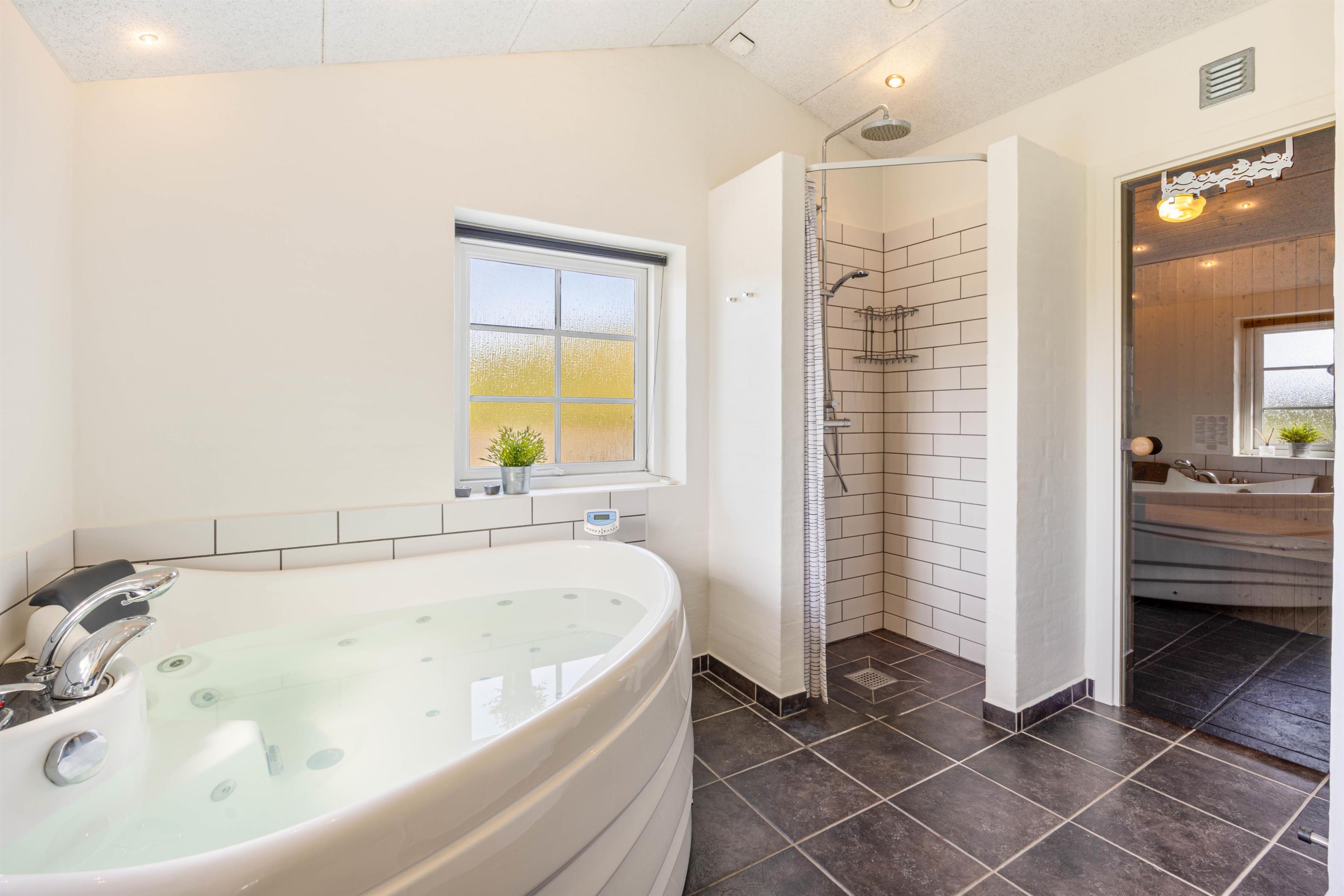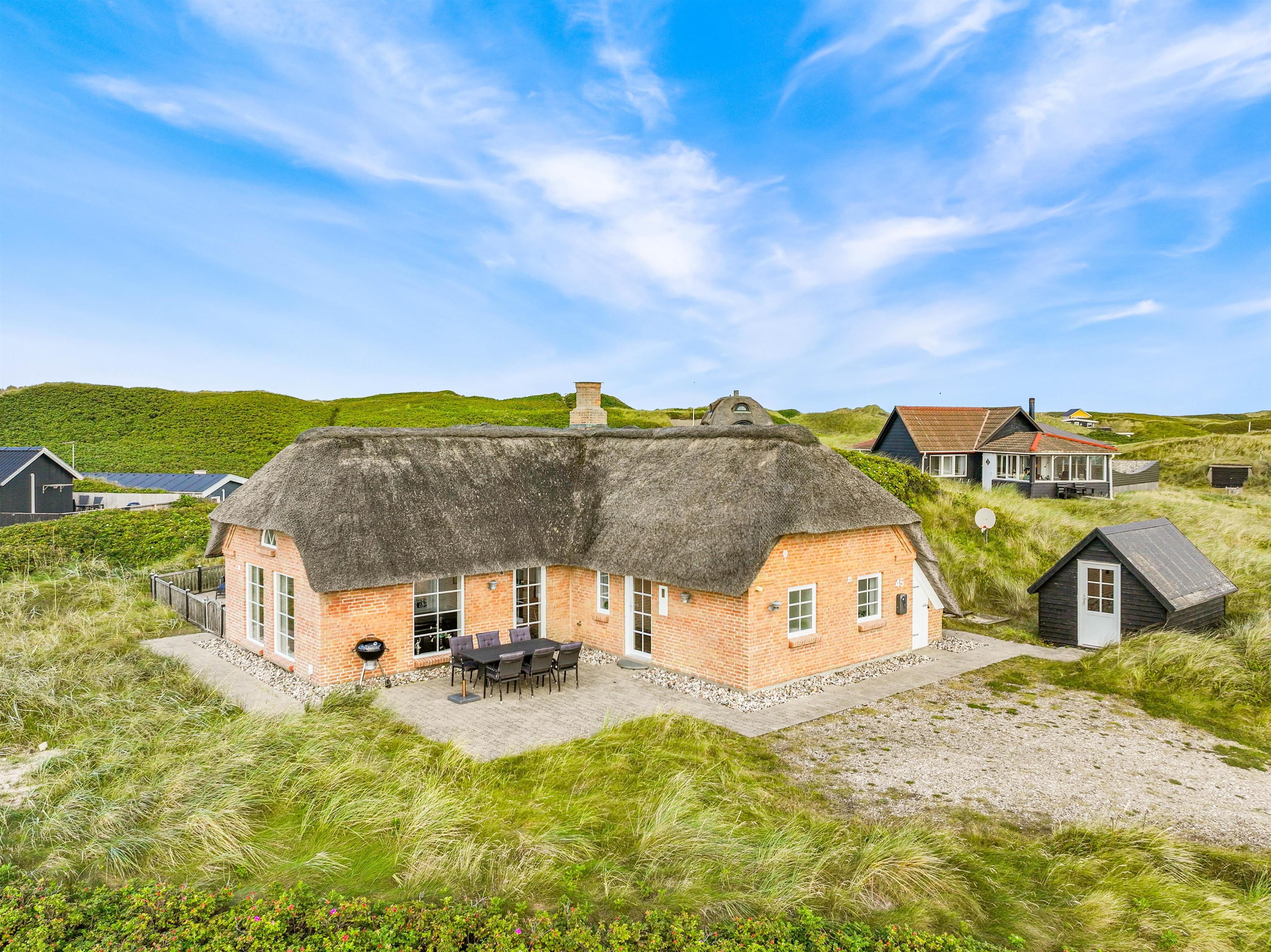 Et fantastisk smukt feriehus, hvor der er kræset for detaljerne, ude såvel som inde. Huset, der er omkranset af dejlige terrasser, har en dejlig beliggenhed kun et stenkast fra stranden og i gåafstand Søndervig Centrum, hvor restauranter og specialforretninger ligger som perler på en snor.
